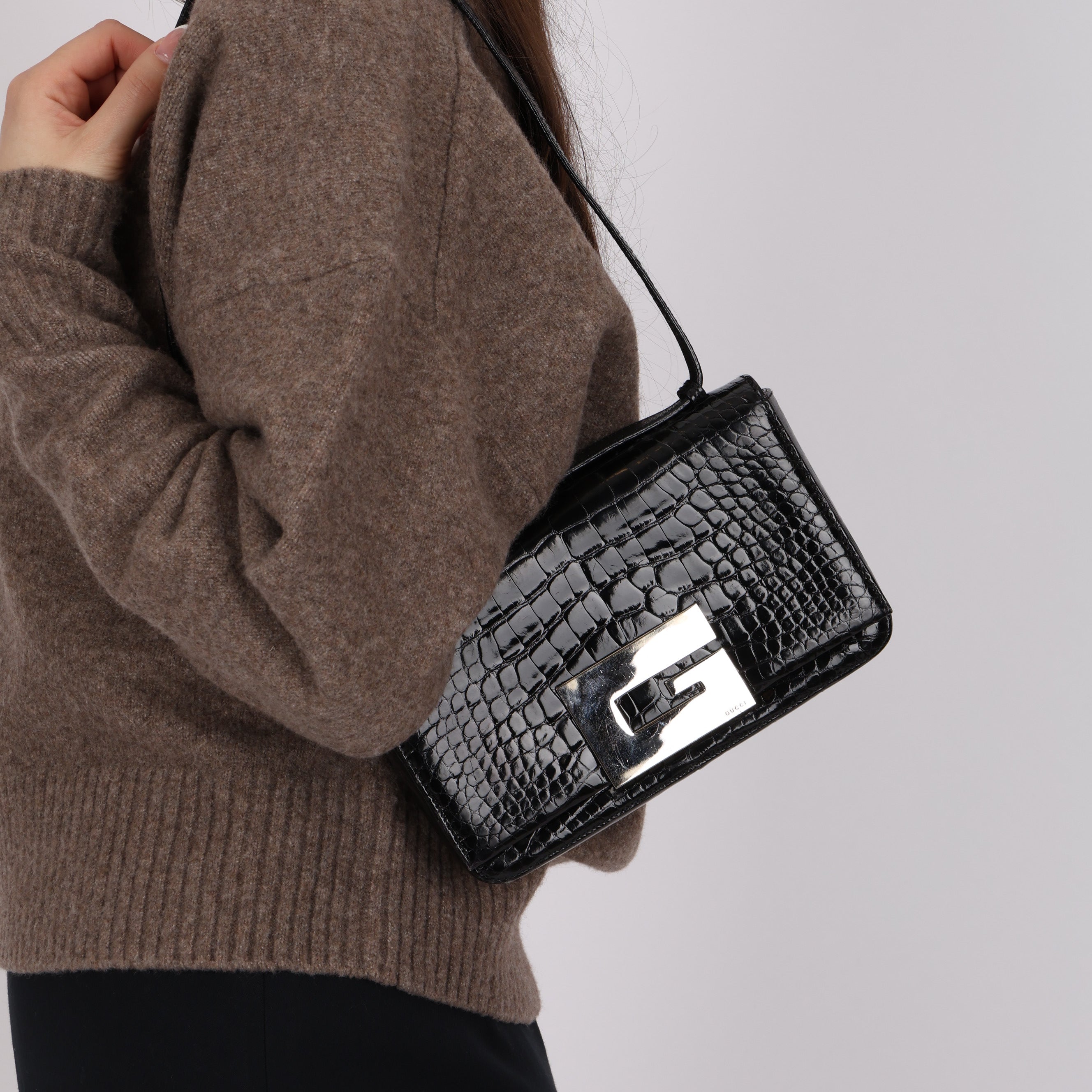 Rare 1998 Runway Gucci x Tom Ford Shiny Crocodile 'Constance' Shoulder Bag