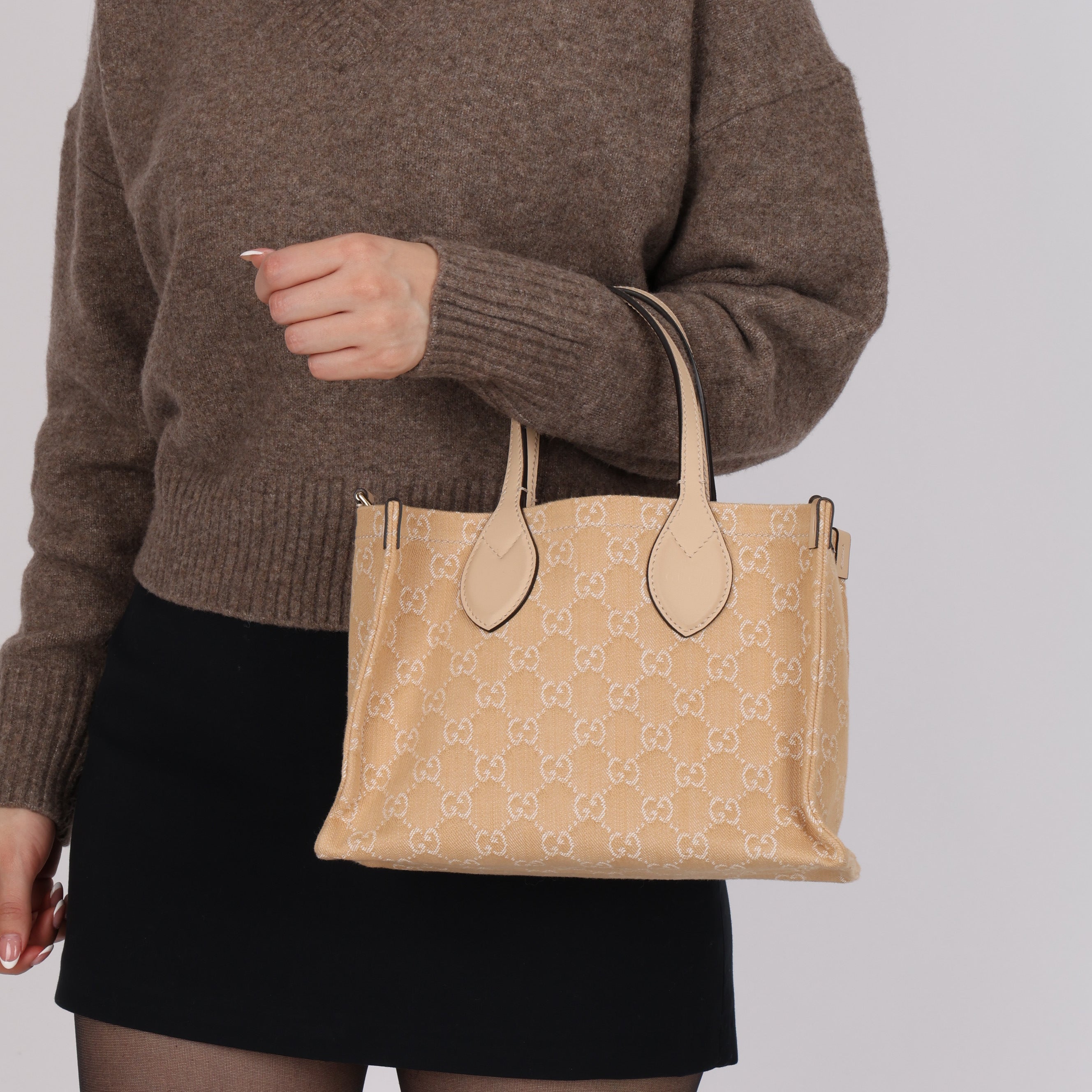 Gucci Canvas GG Denim Ophidia Medium Tote with Pouch