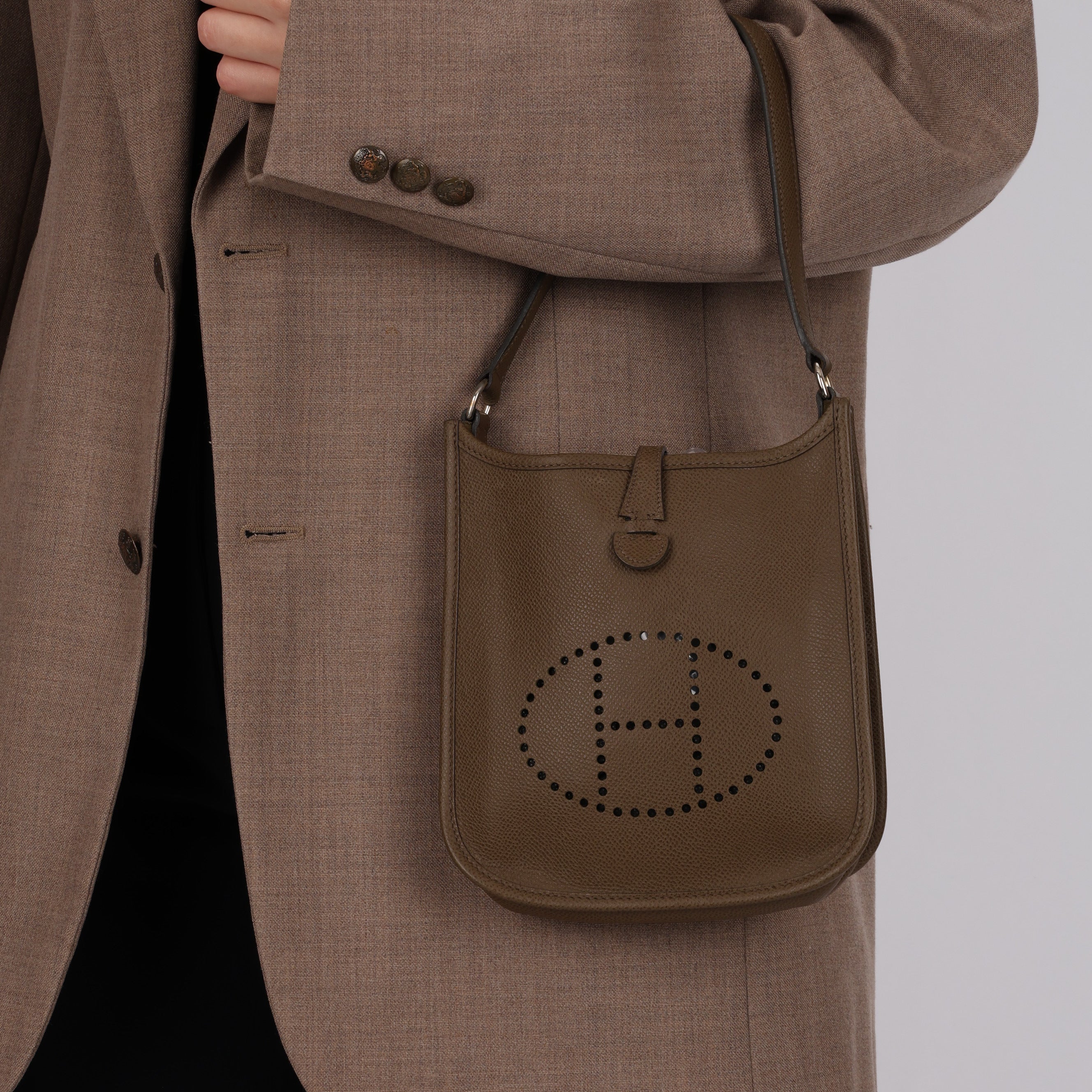 Rare Hermès 2005 Etoupe Epsom Short Strap Evelyne TPM PHW