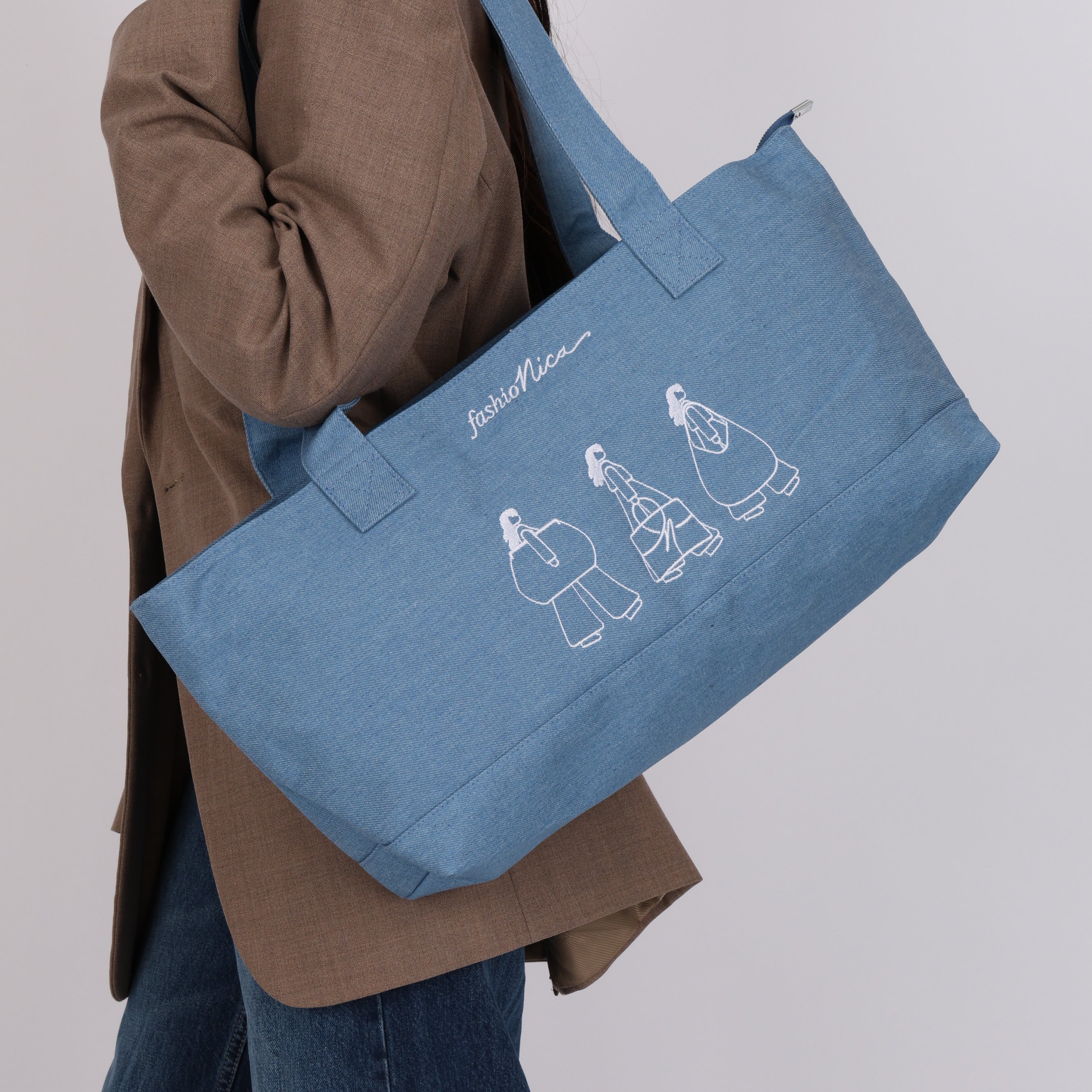 Exclusive FashioNica Fest Denim Zip East West Tote