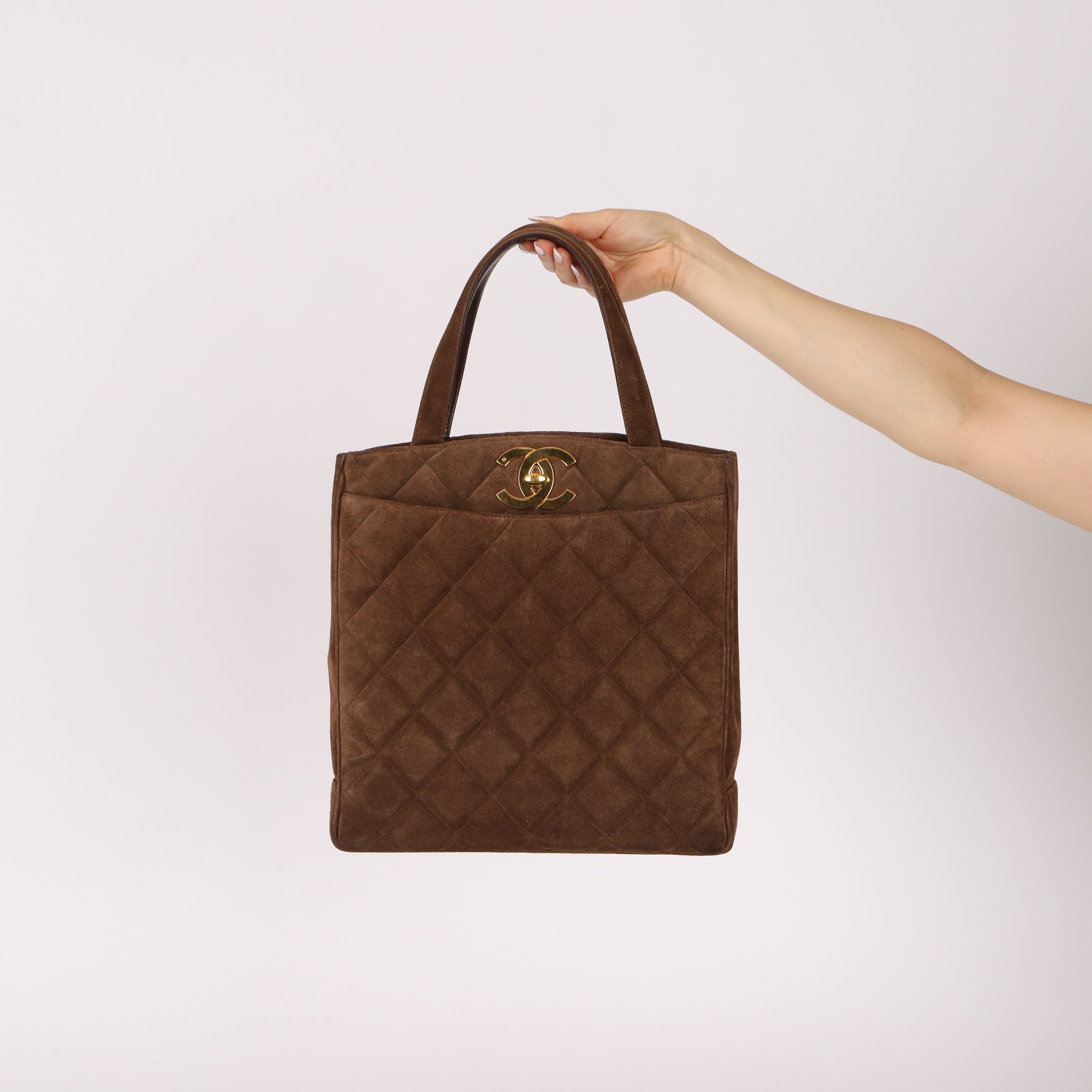 Chanel 1990s Suede Vertical Turnlock Tote 24K GP