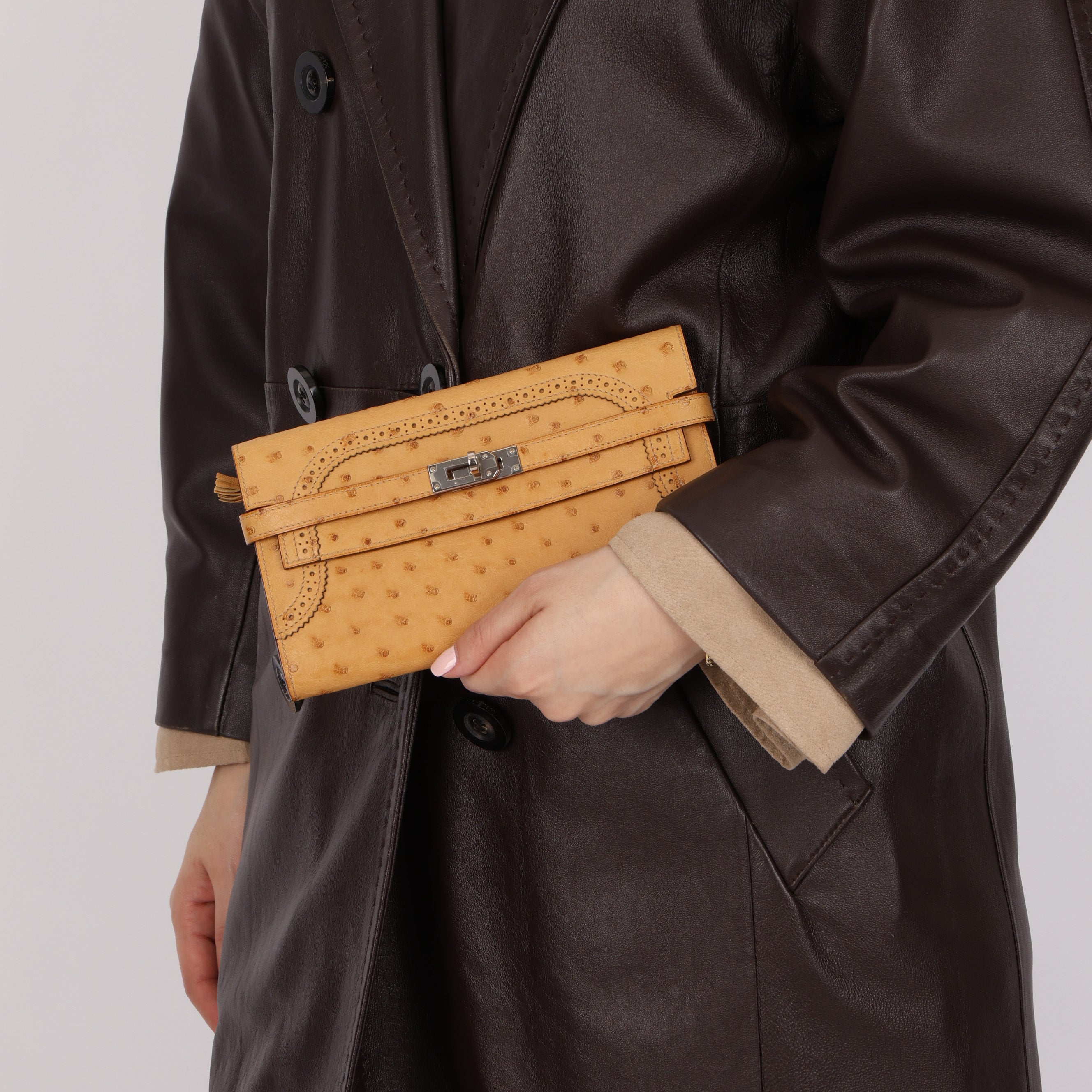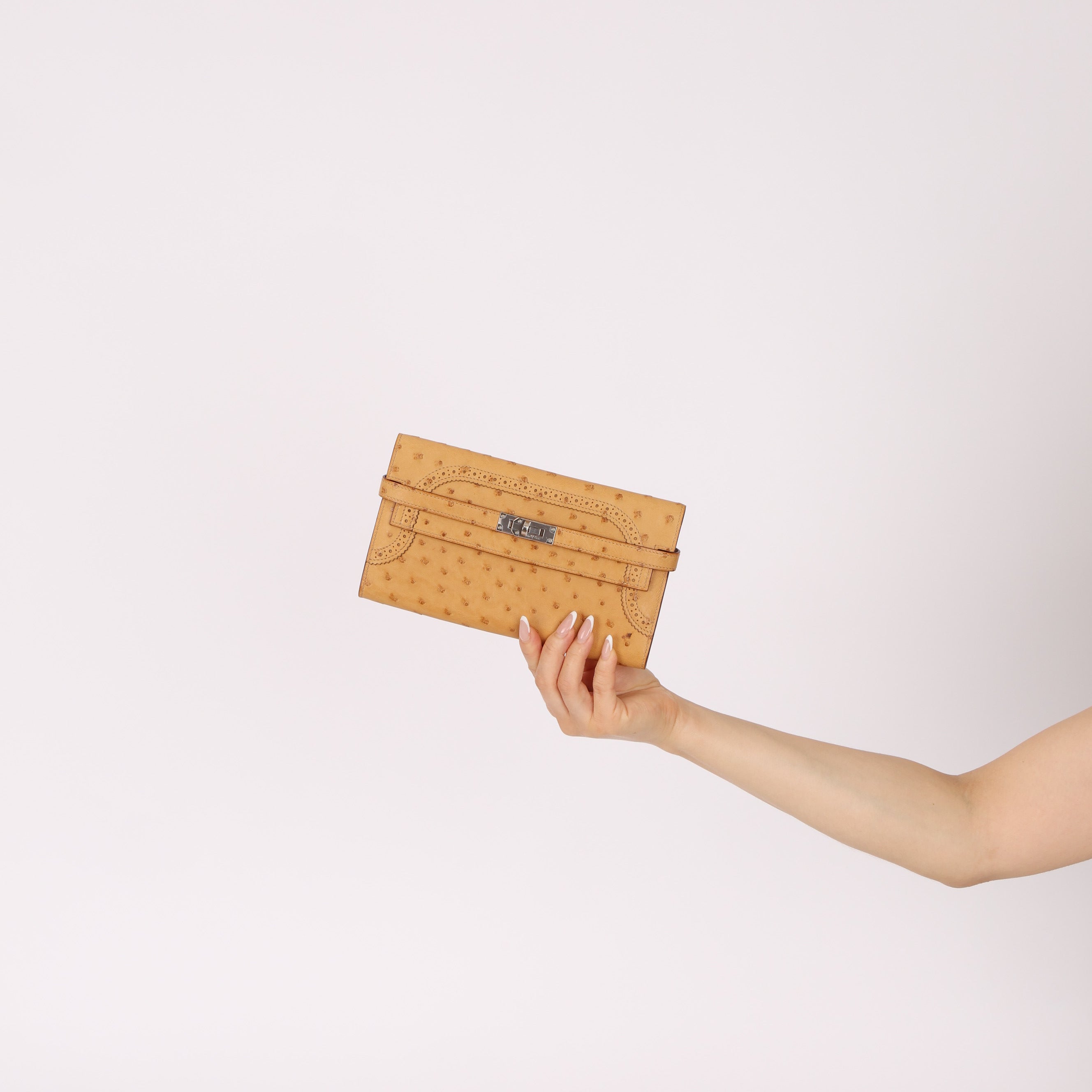 Limited Edition Hermes 2017 Tabac Camel Ostrich Ghillies Kelly Long Wallet PHW