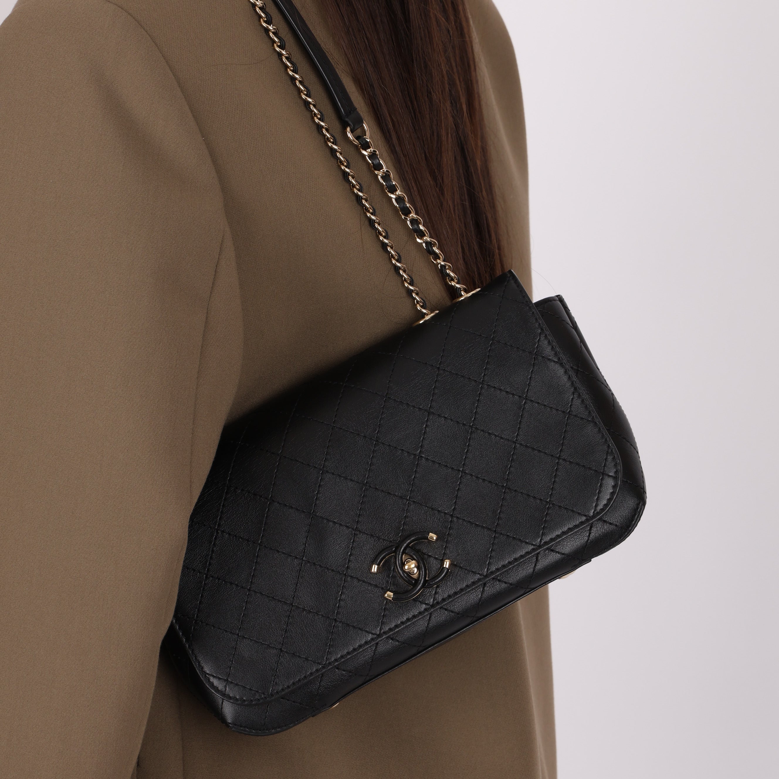 Chanel 2017 Lambskin Quilted Turnlock Chain Around Flap Crossbody