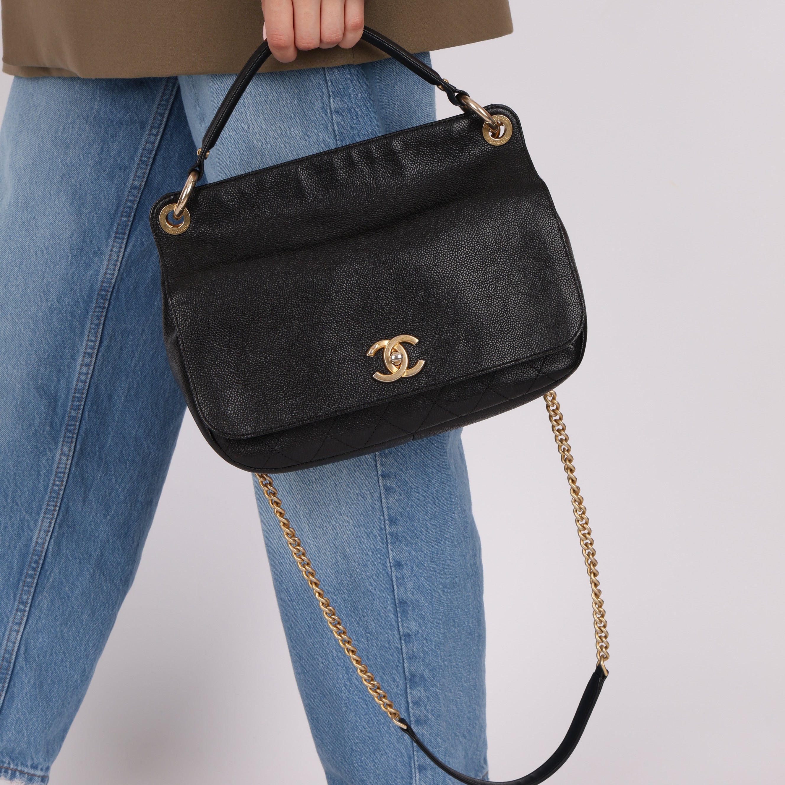 Chanel 2017 Grained Calfskin Top Handle Flap Bag