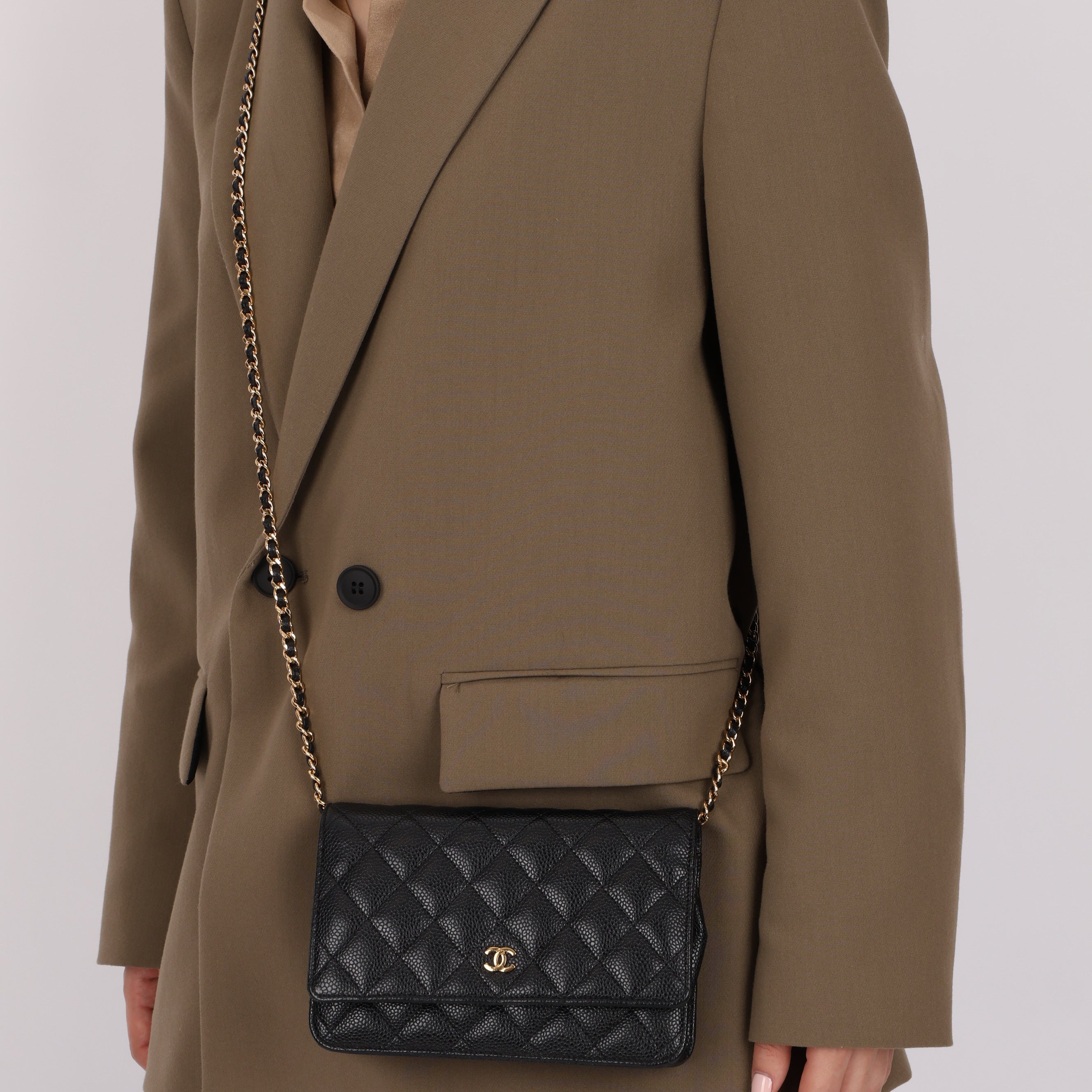 Chanel 2018 Black Caviar Wallet on Chain GHW