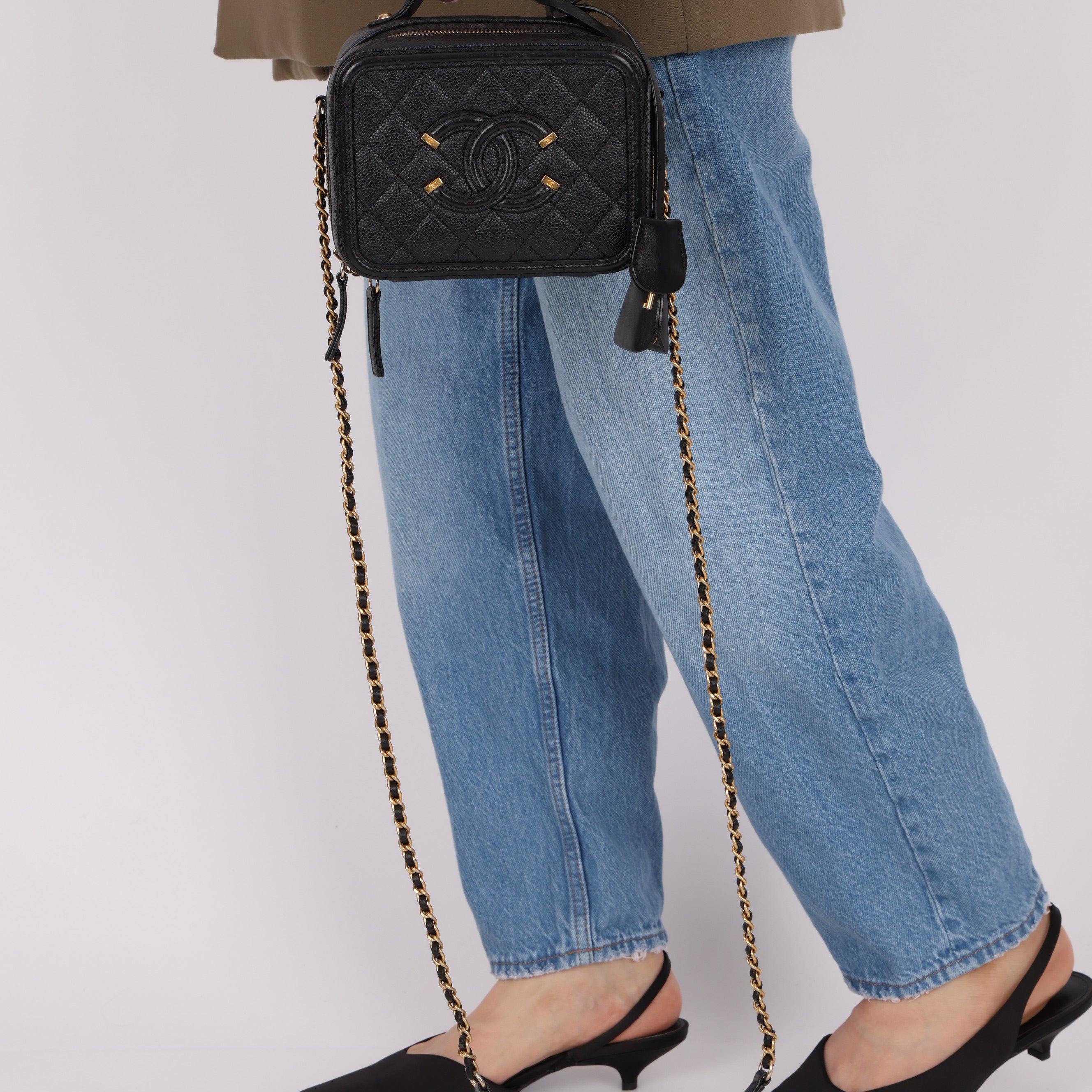 Chanel 2018 Caviar Filigree Small Vanity Case GHW
