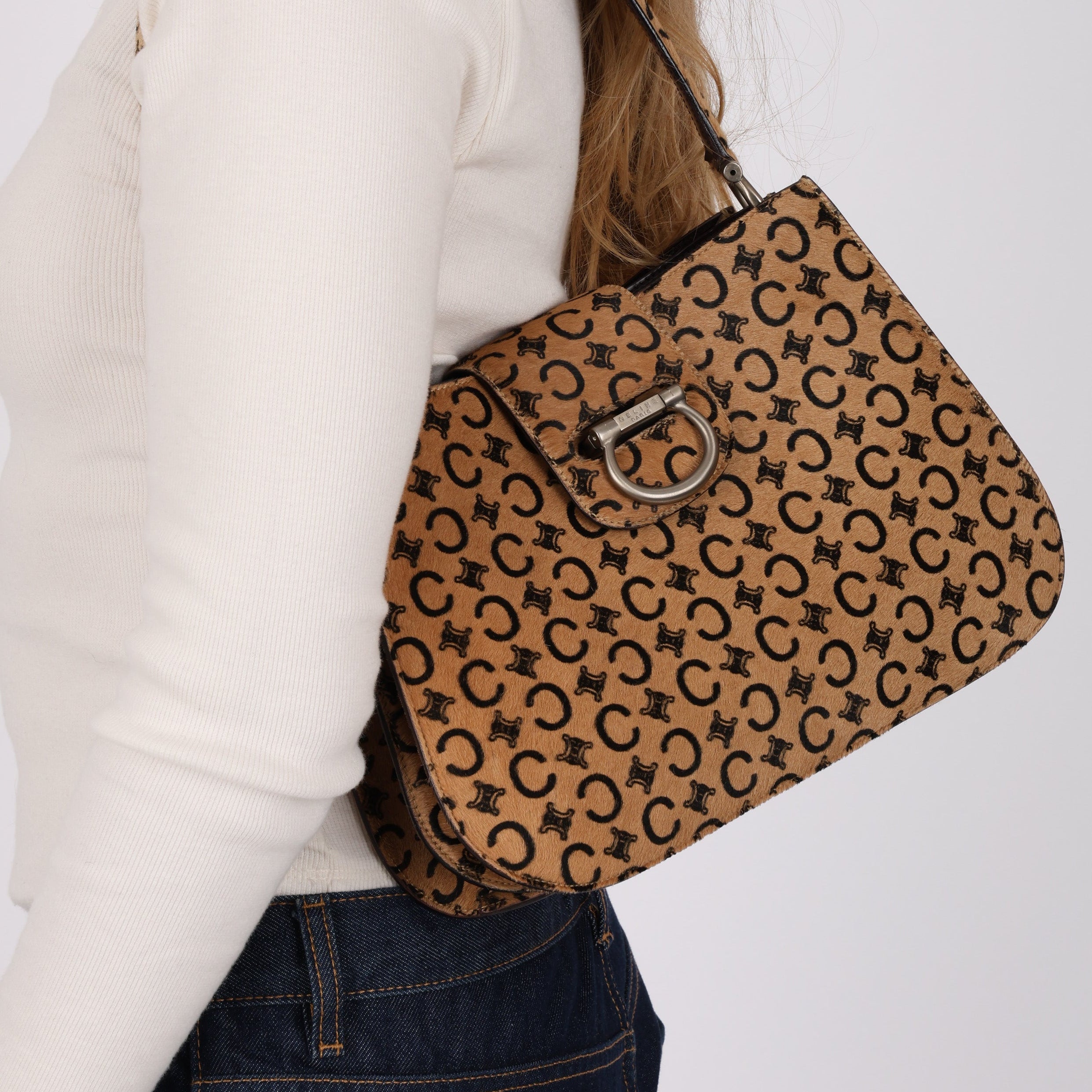 Celine Triomphe C Pony Hair Clasp Shoulder Bag