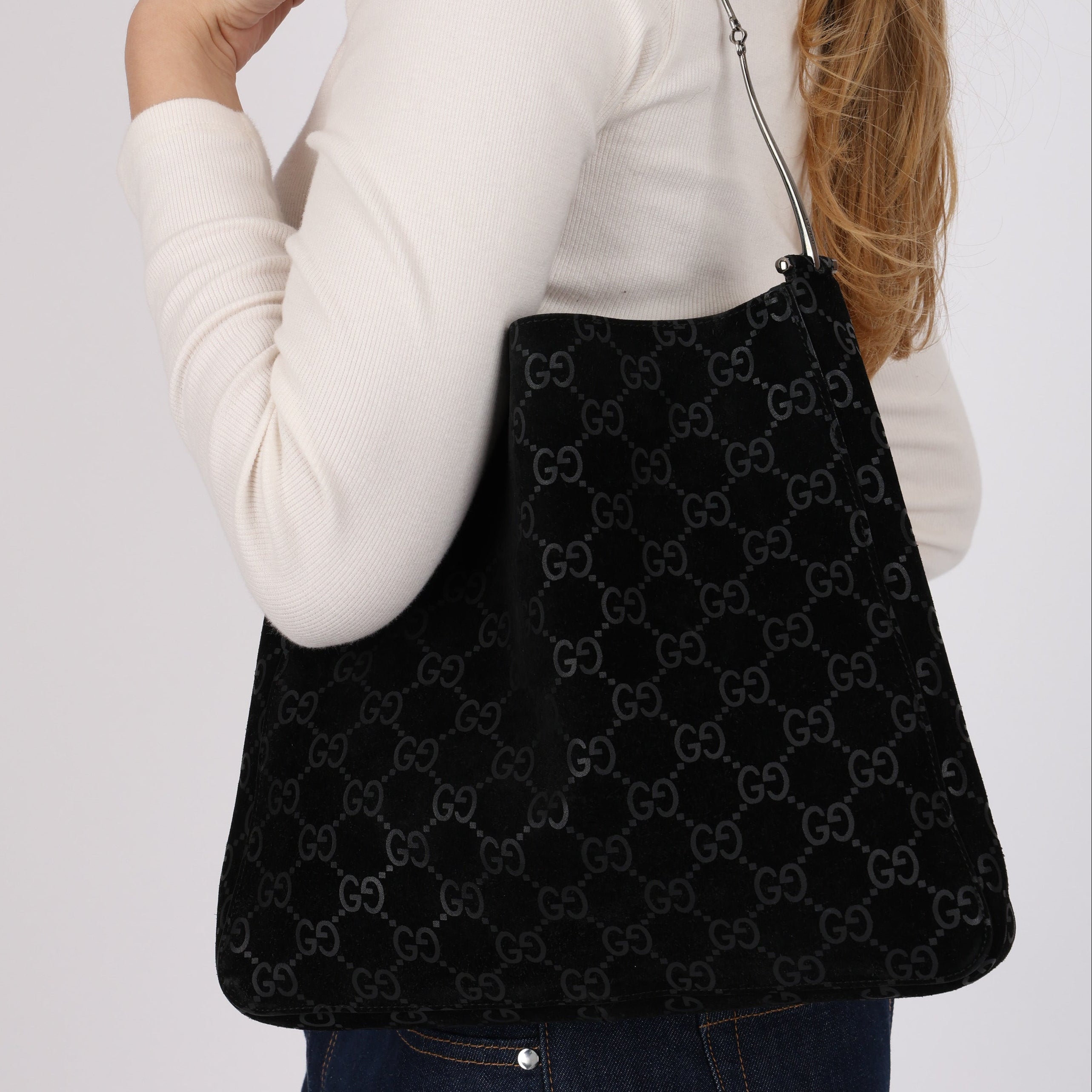 Gucci GG Suede Thin Horsebit Tote with Pouch