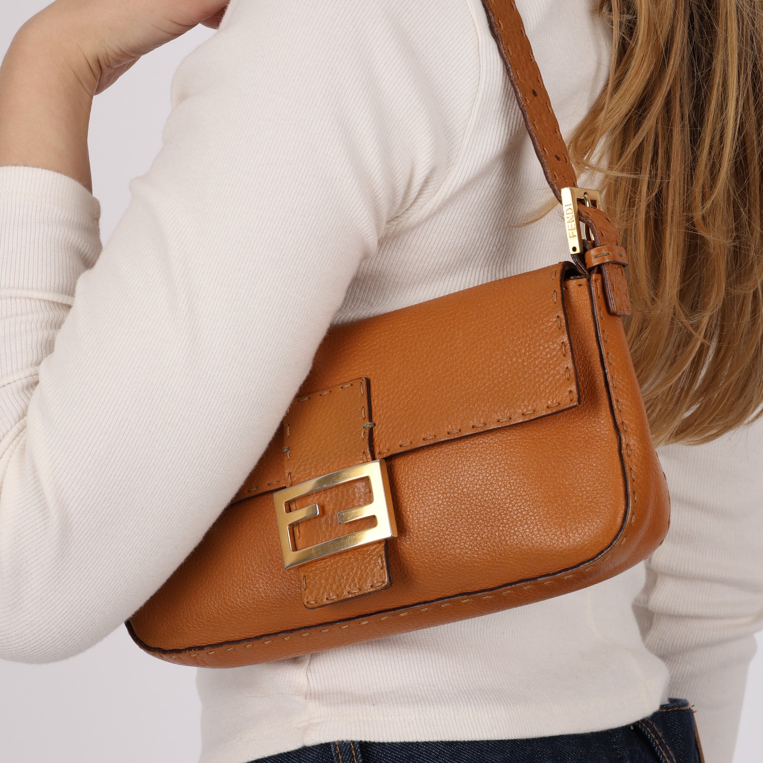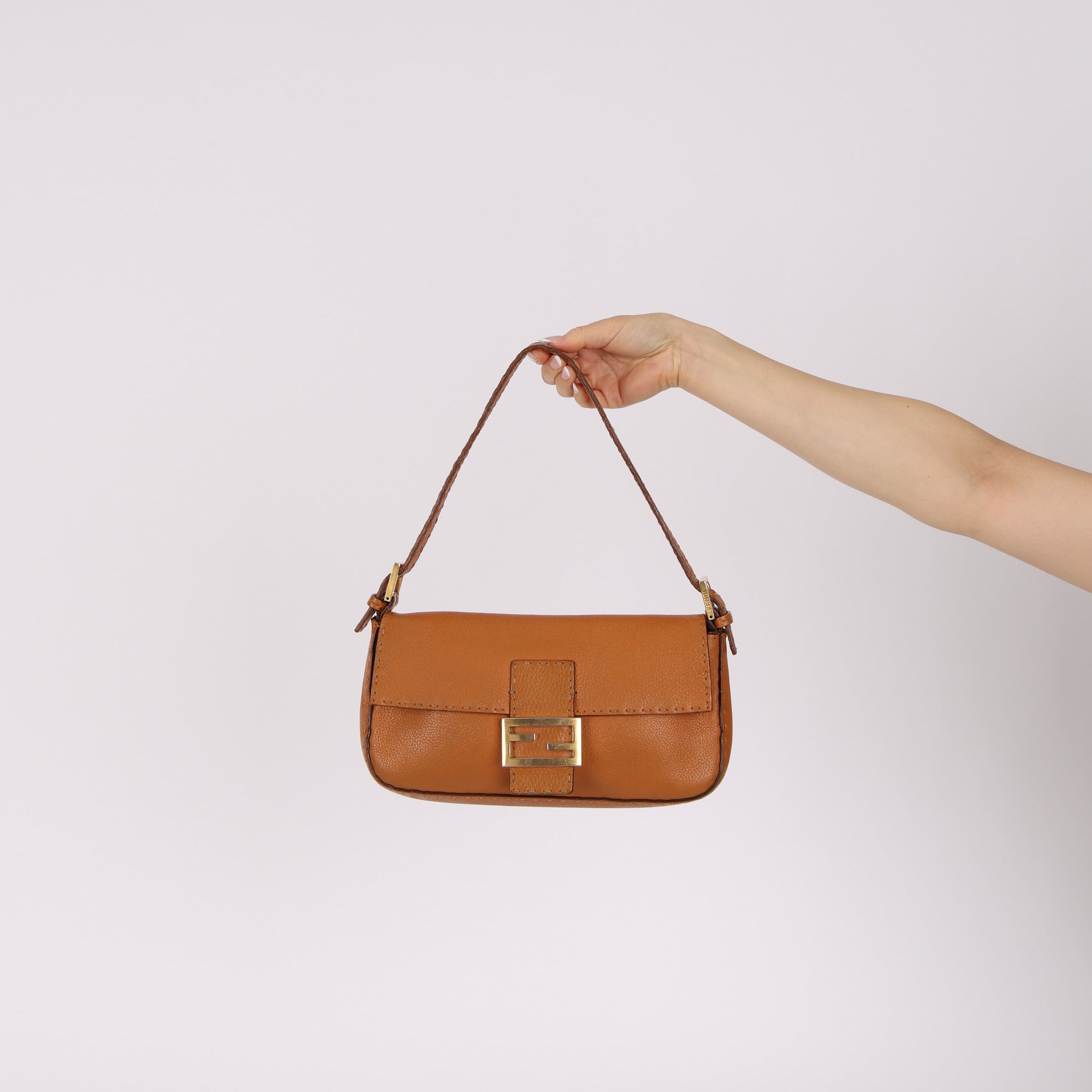 Fendi Cognac Leather Selleria Baguette