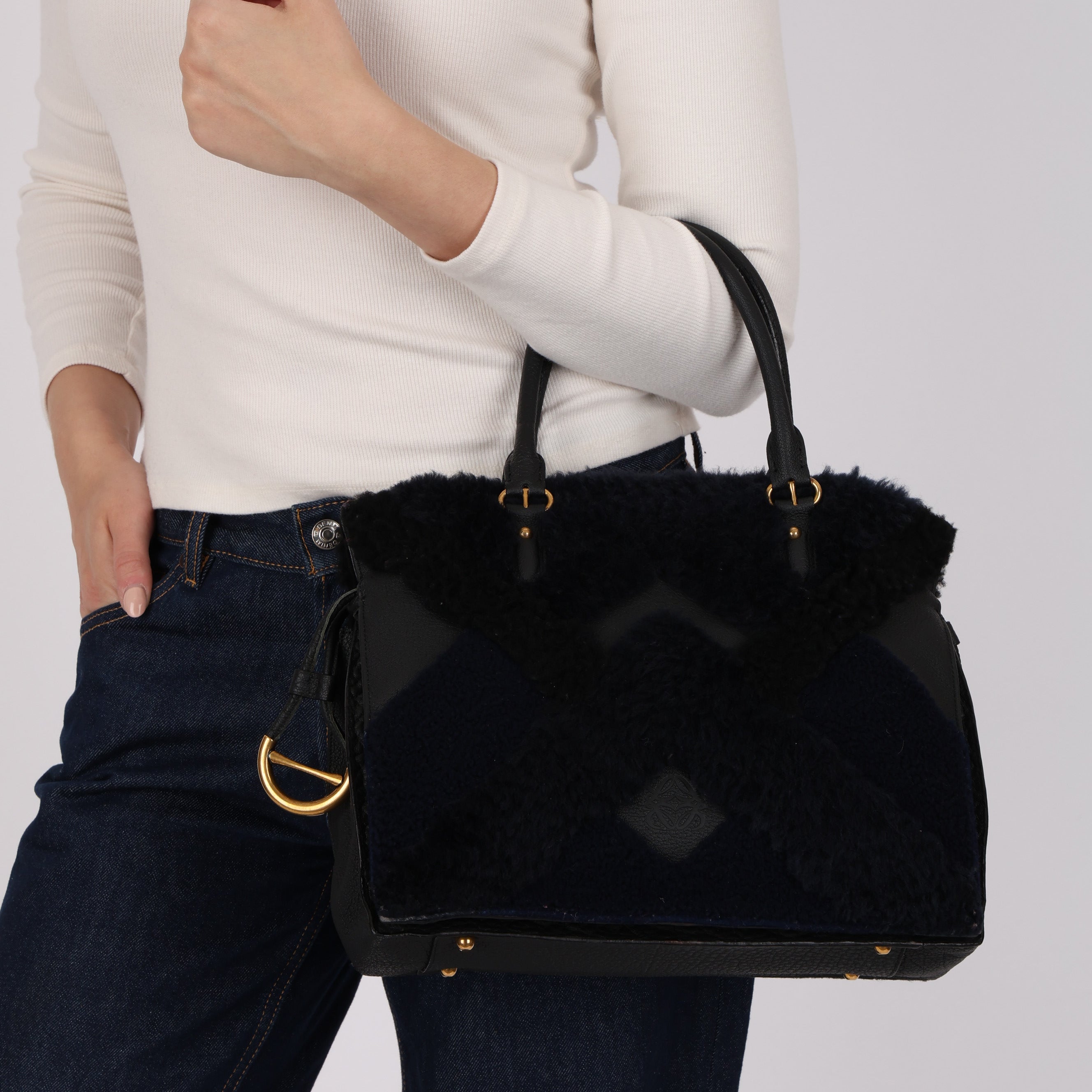 Loewe Grained Leather Shearling Patchwork Amaya Bag
