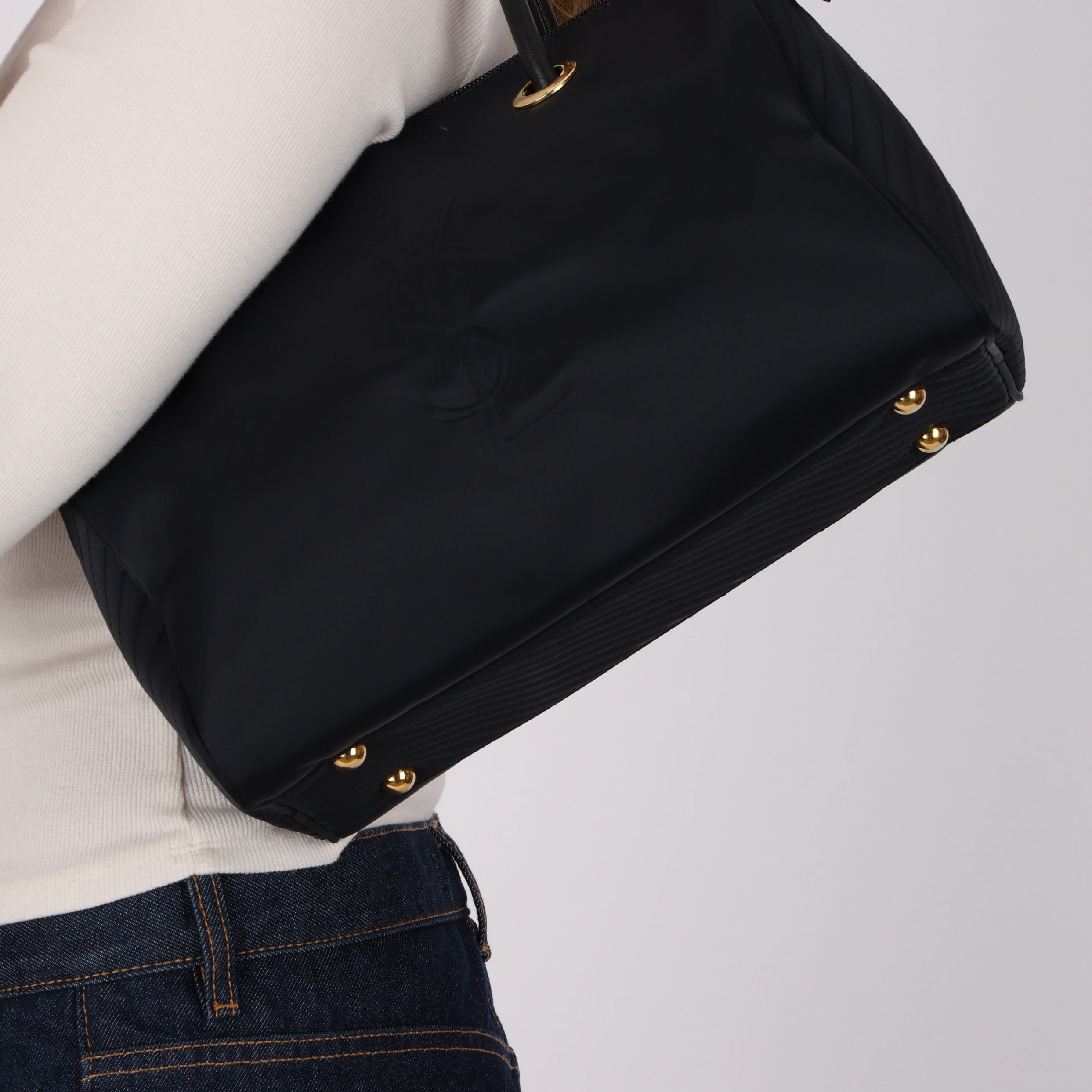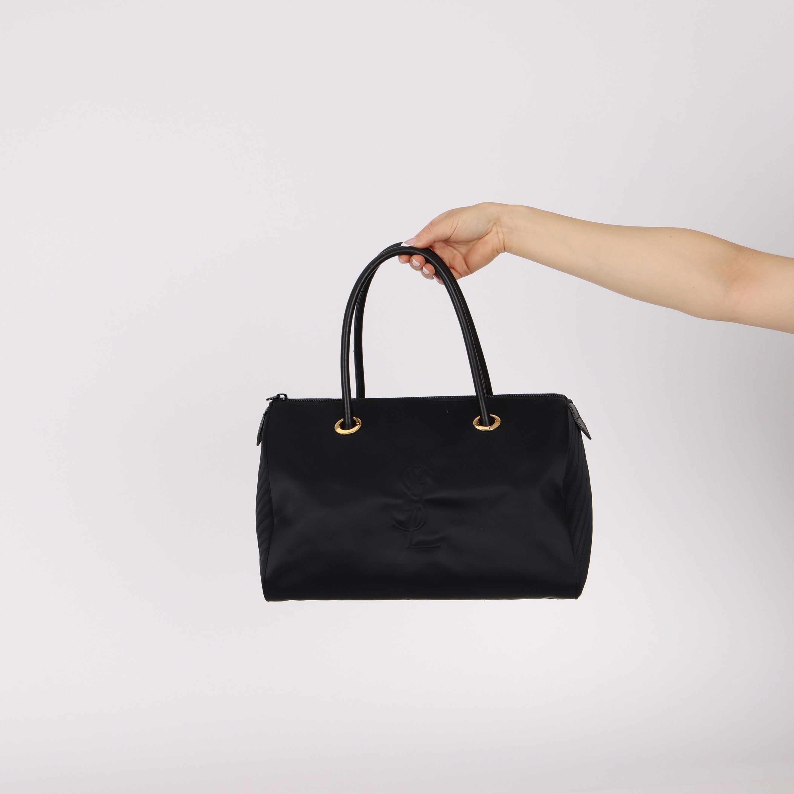 Yves Saint Laurent Navy Nylon Cassandra Logo Boston Bag