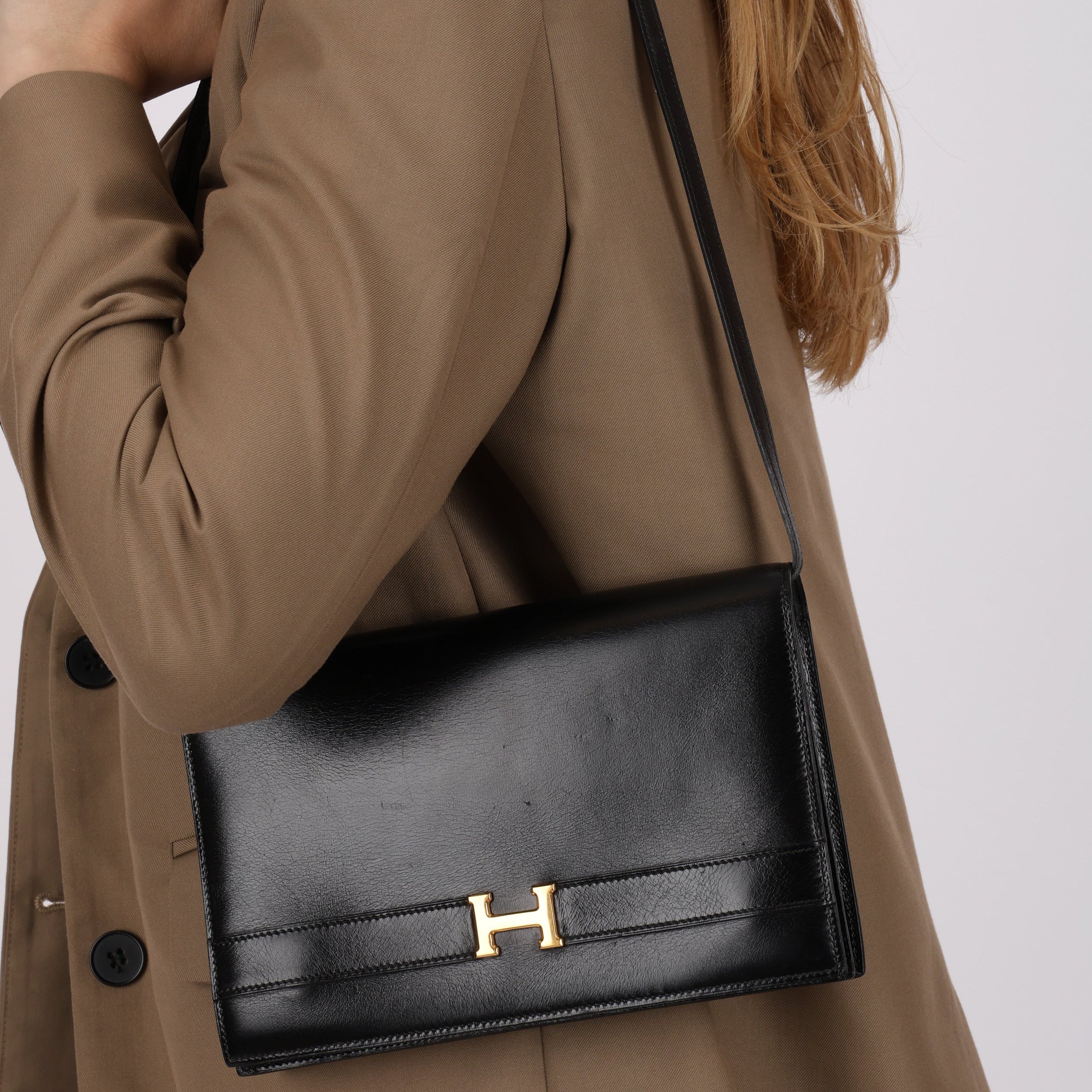 Hermès 1986 Noir Box Annie Shoulder Bag GHW