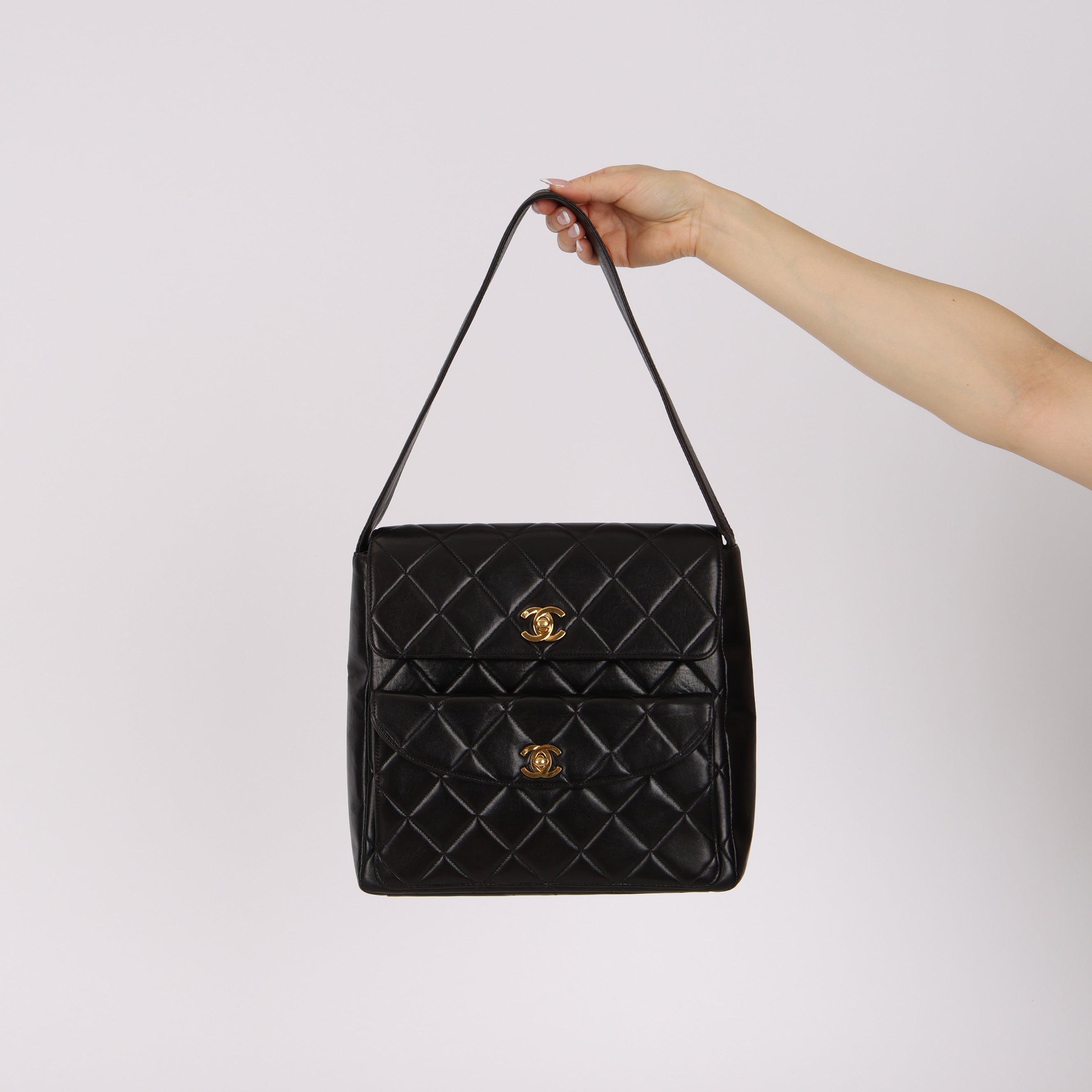 Rare Chanel 1996 Lambskin Double Turnlock Shoulder Bag 24K GP