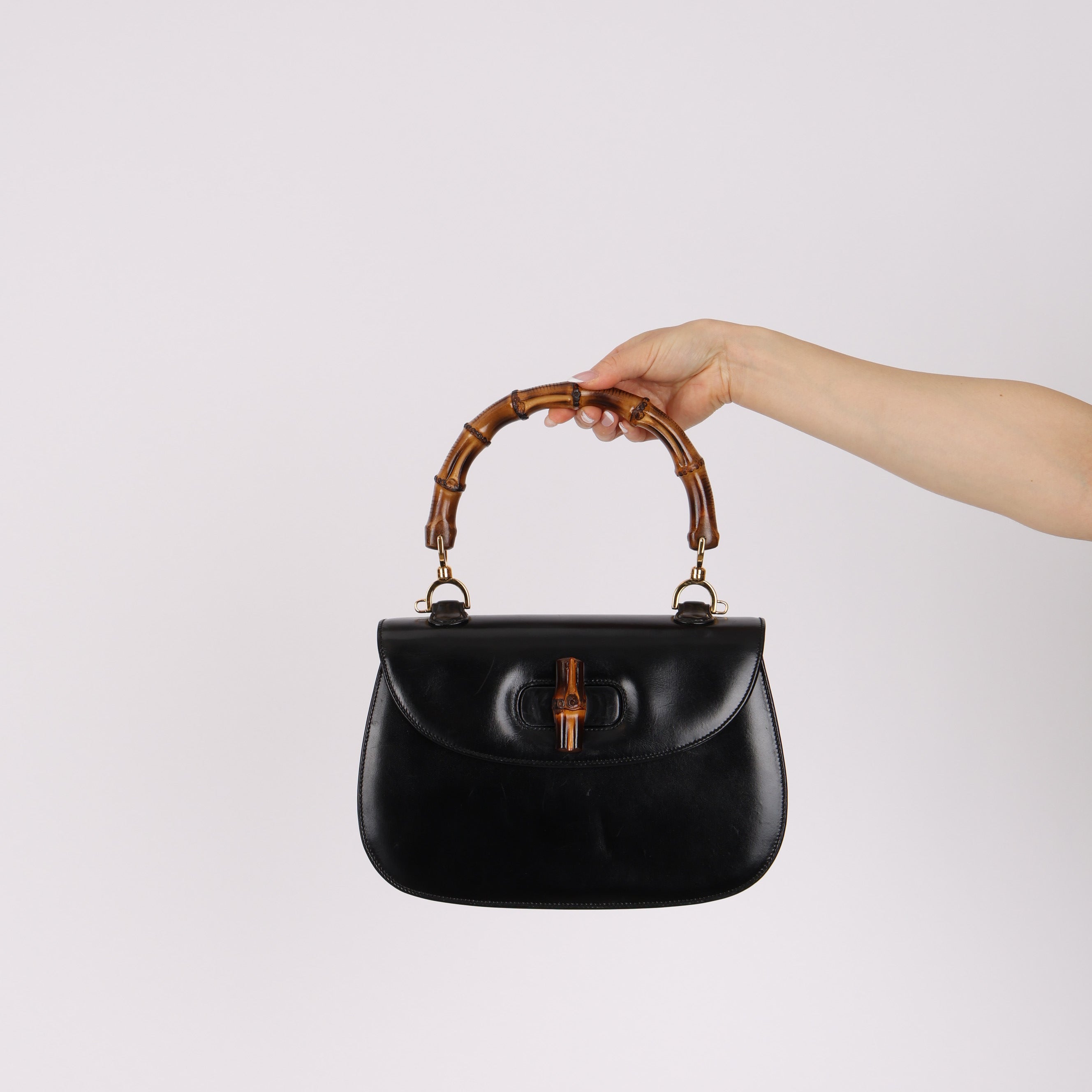 Vintage Gucci Boxcalf Bamboo 1947 Medium Top Handle