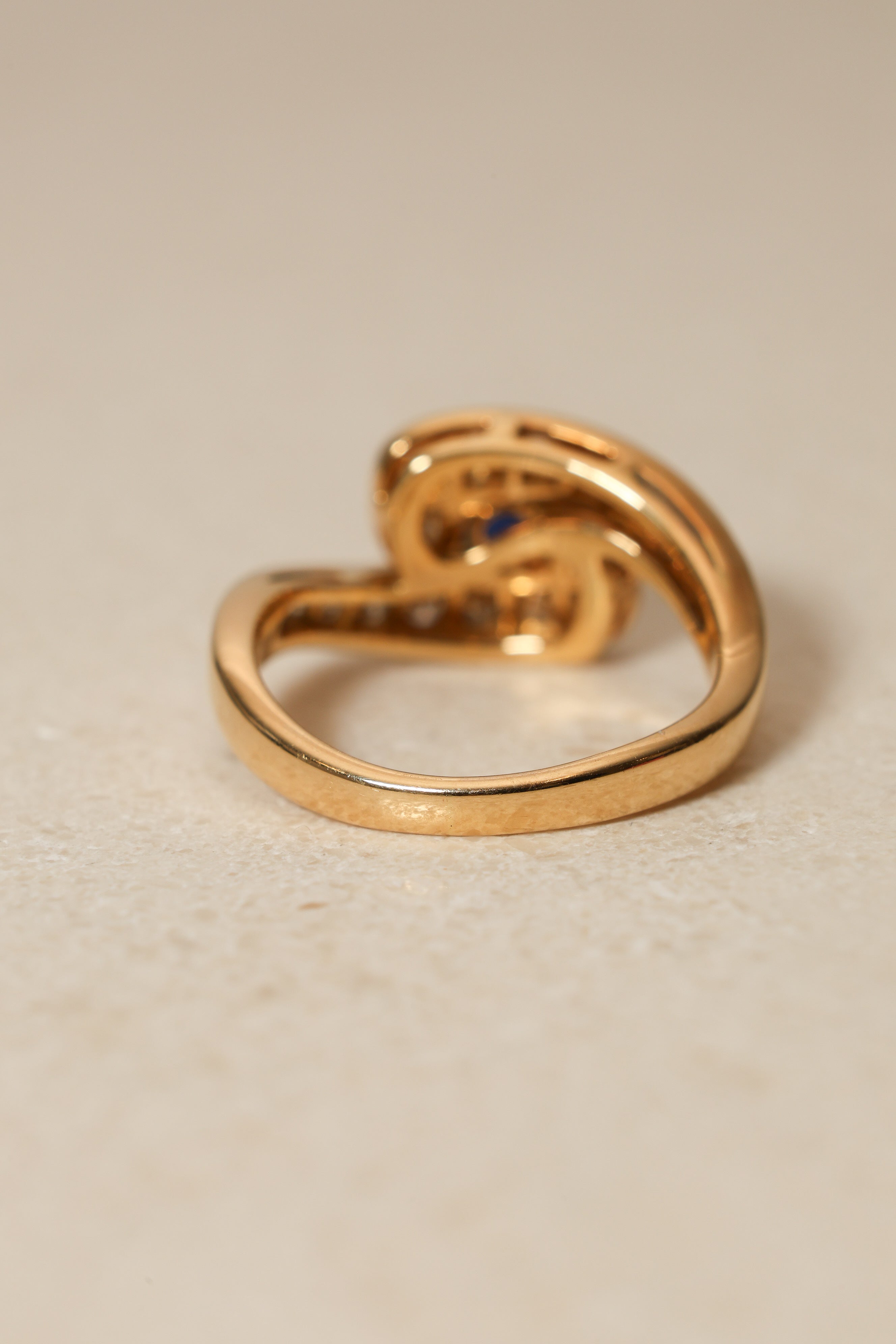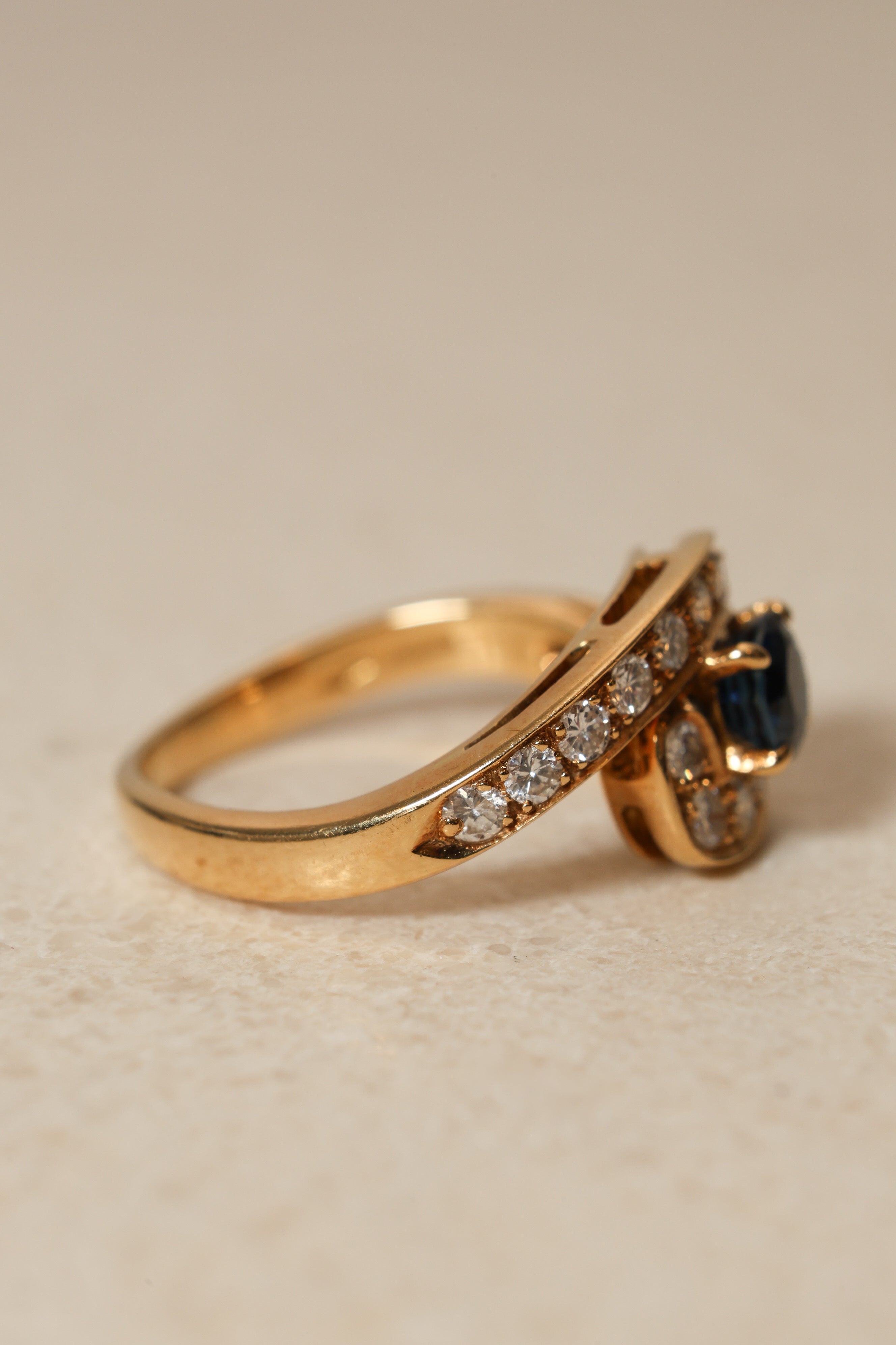 Mouawad 1990's 18K Yellow Gold and Sapphire Diamond Bypass Ring, Size US 6