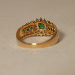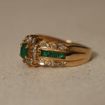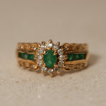 Vintage 18K Yellow Gold Emerald and Diamond Regal Halo Ring, Size US 6