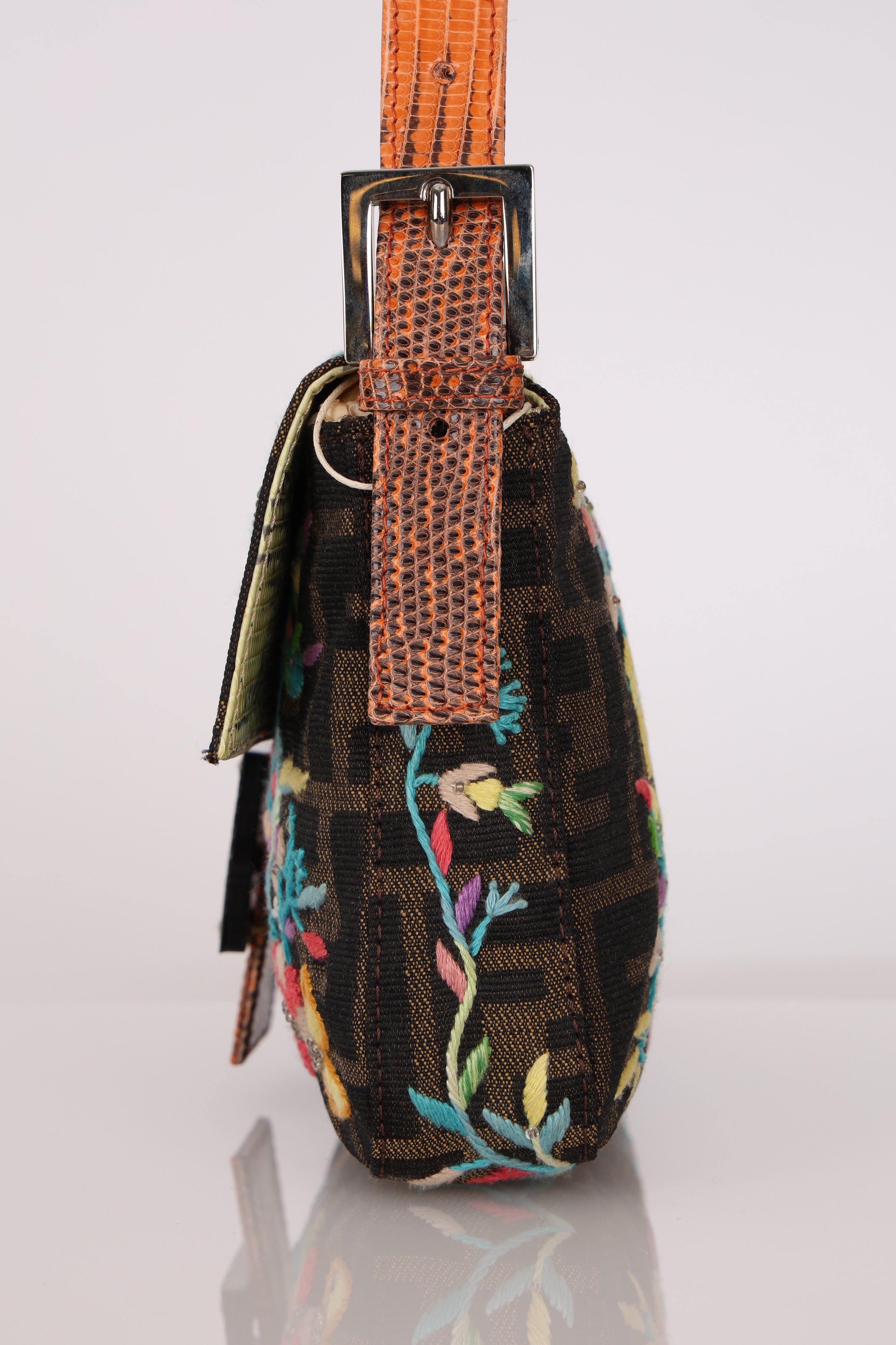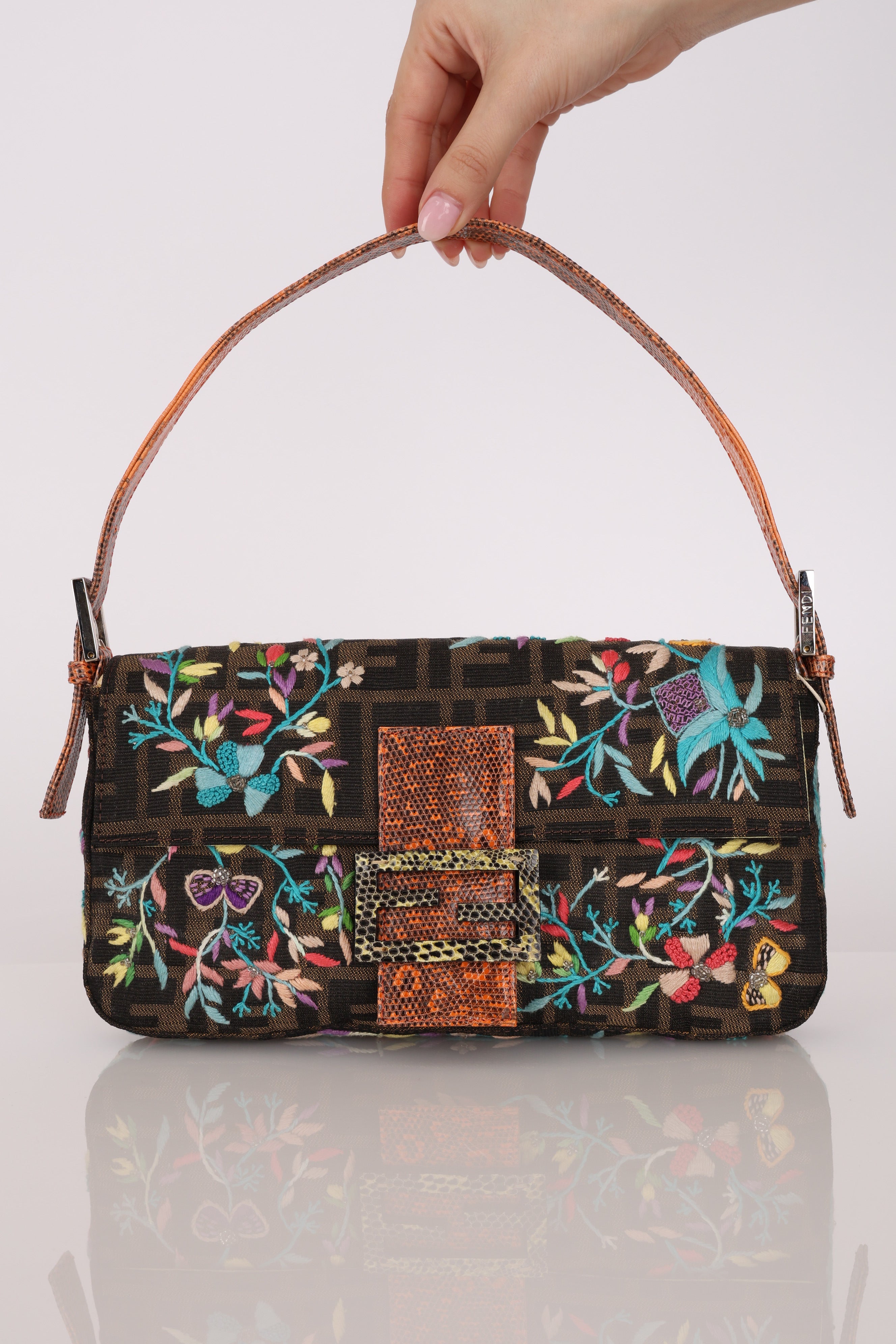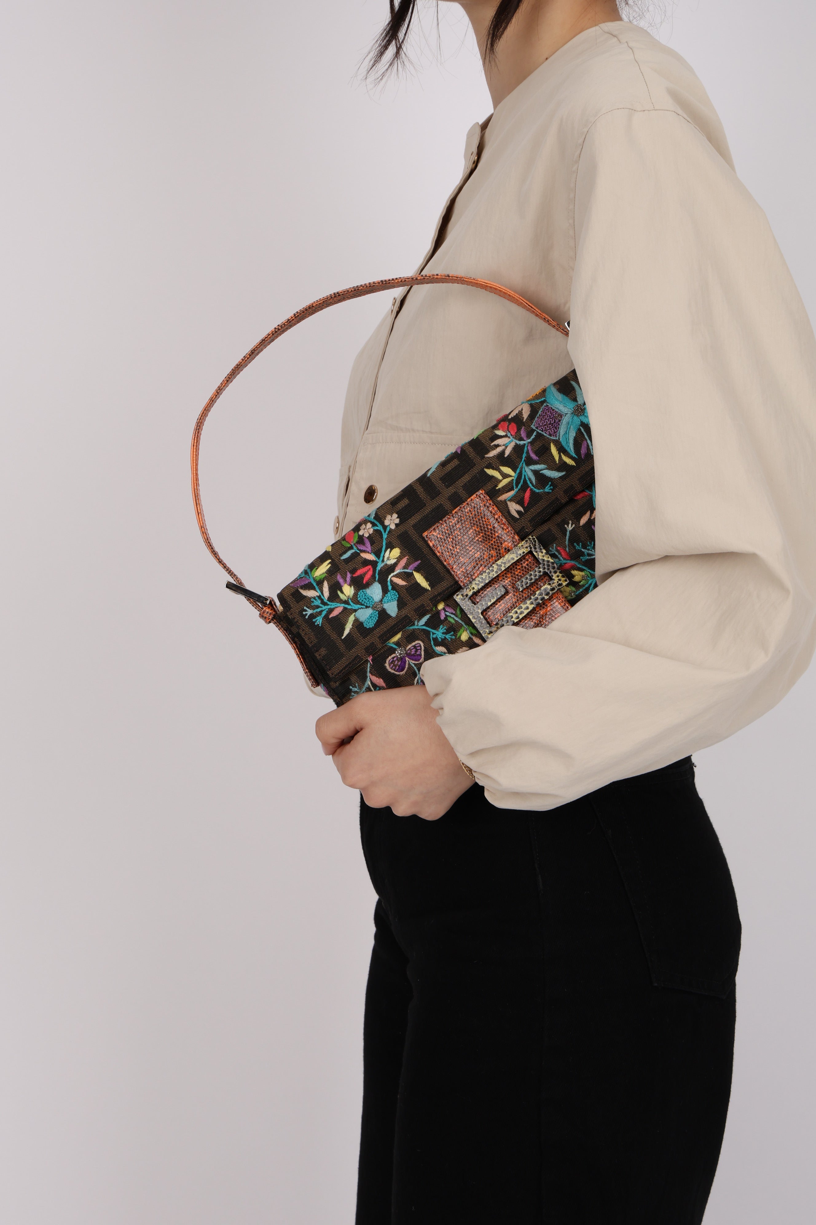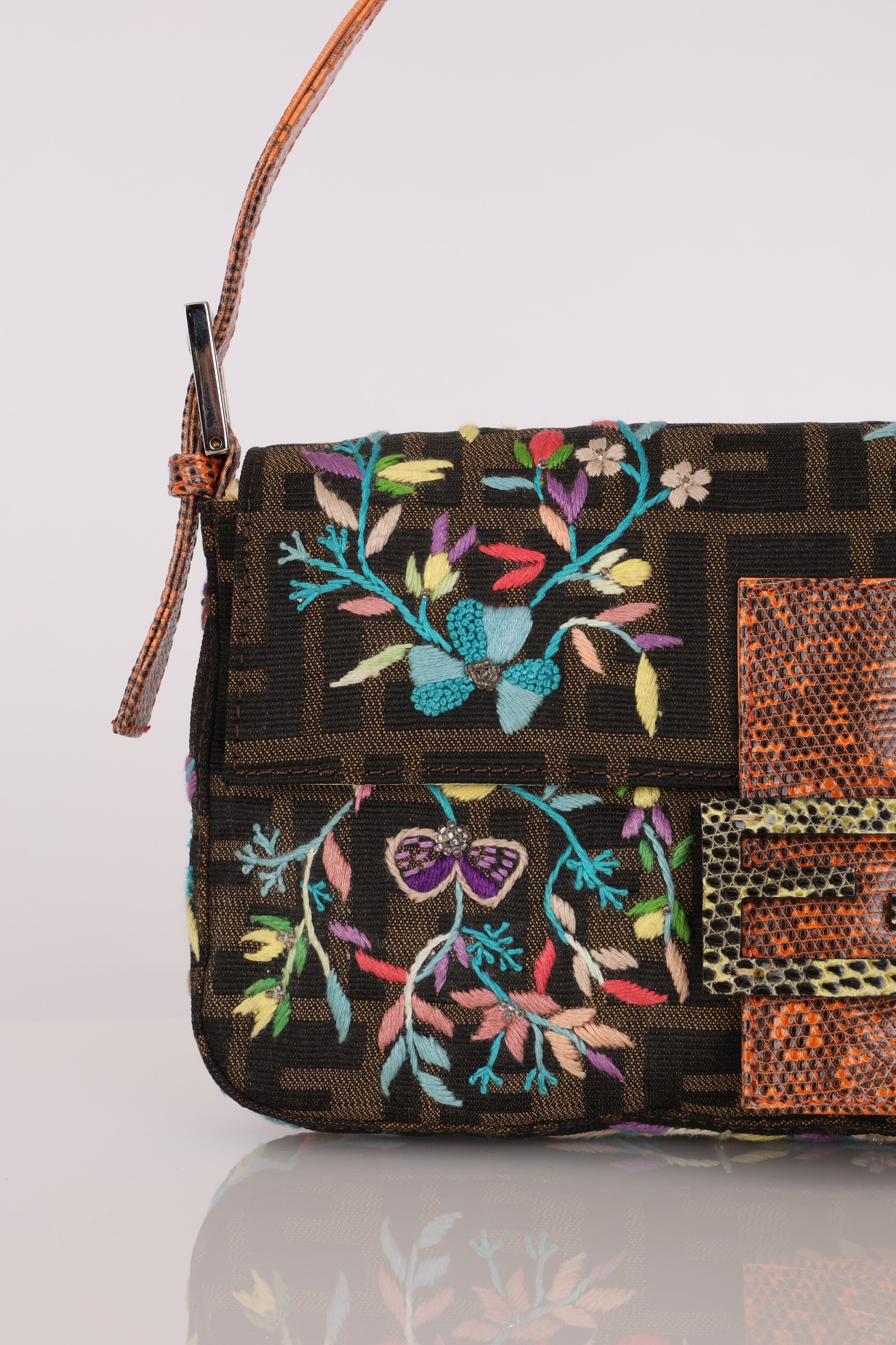 Ultra-Rare Fendi Zucca Lizard Embroidered & Beaded Baguette