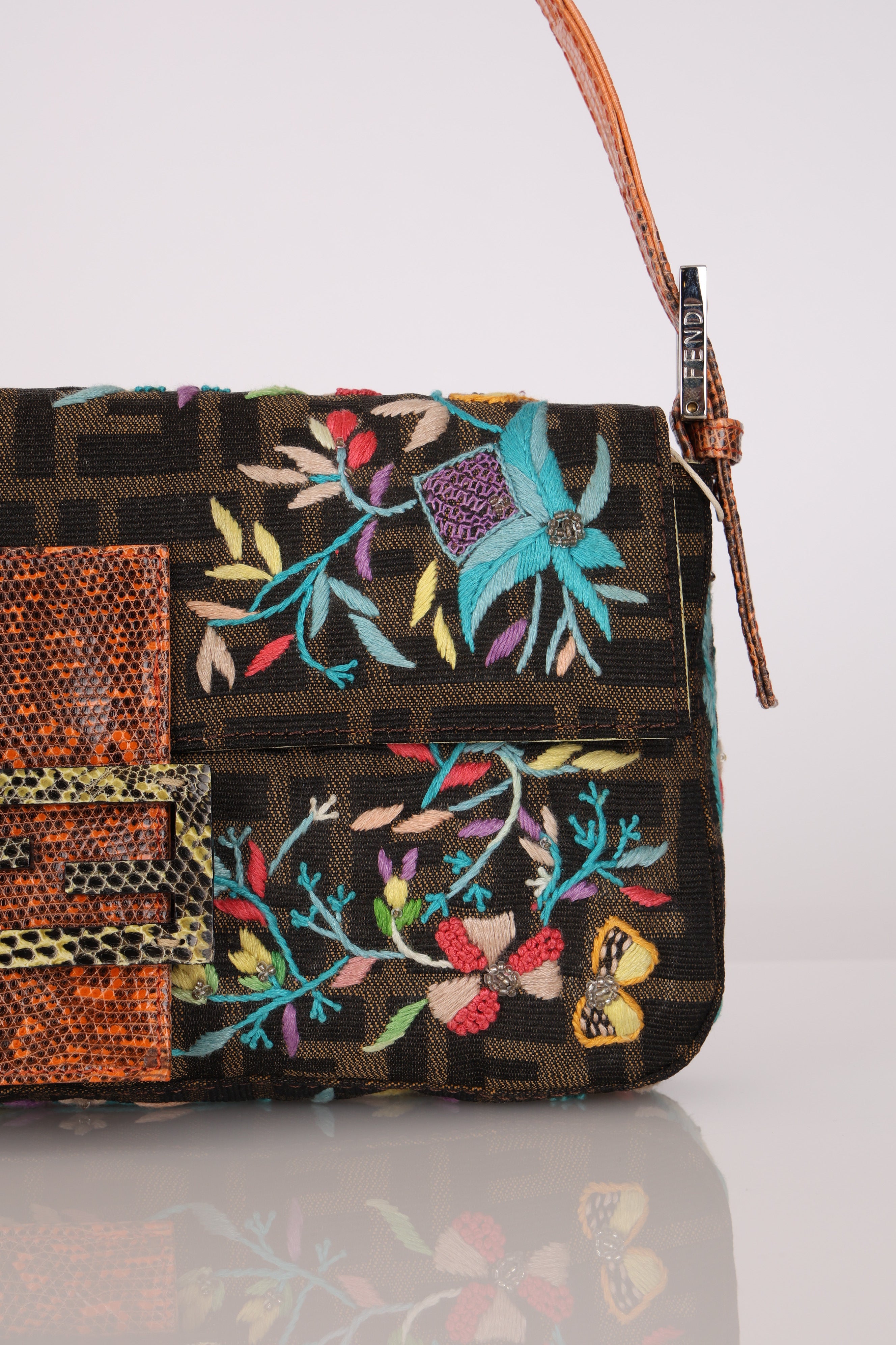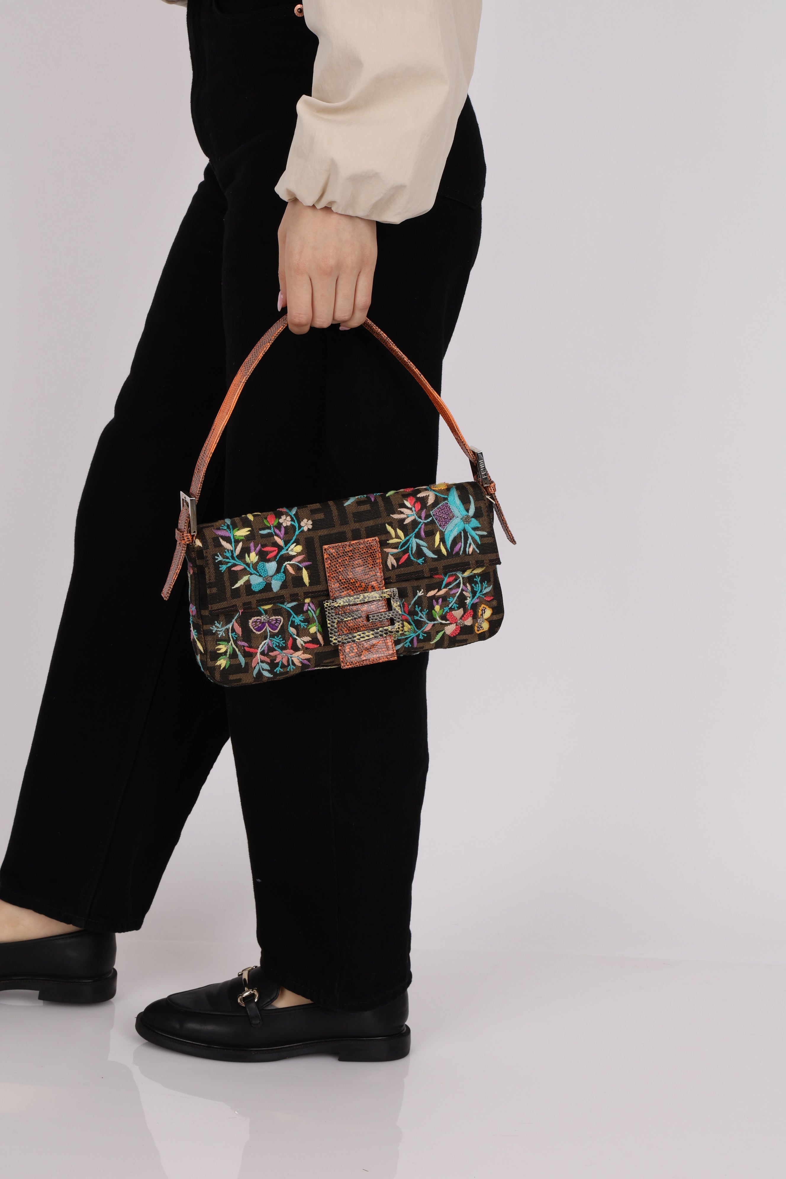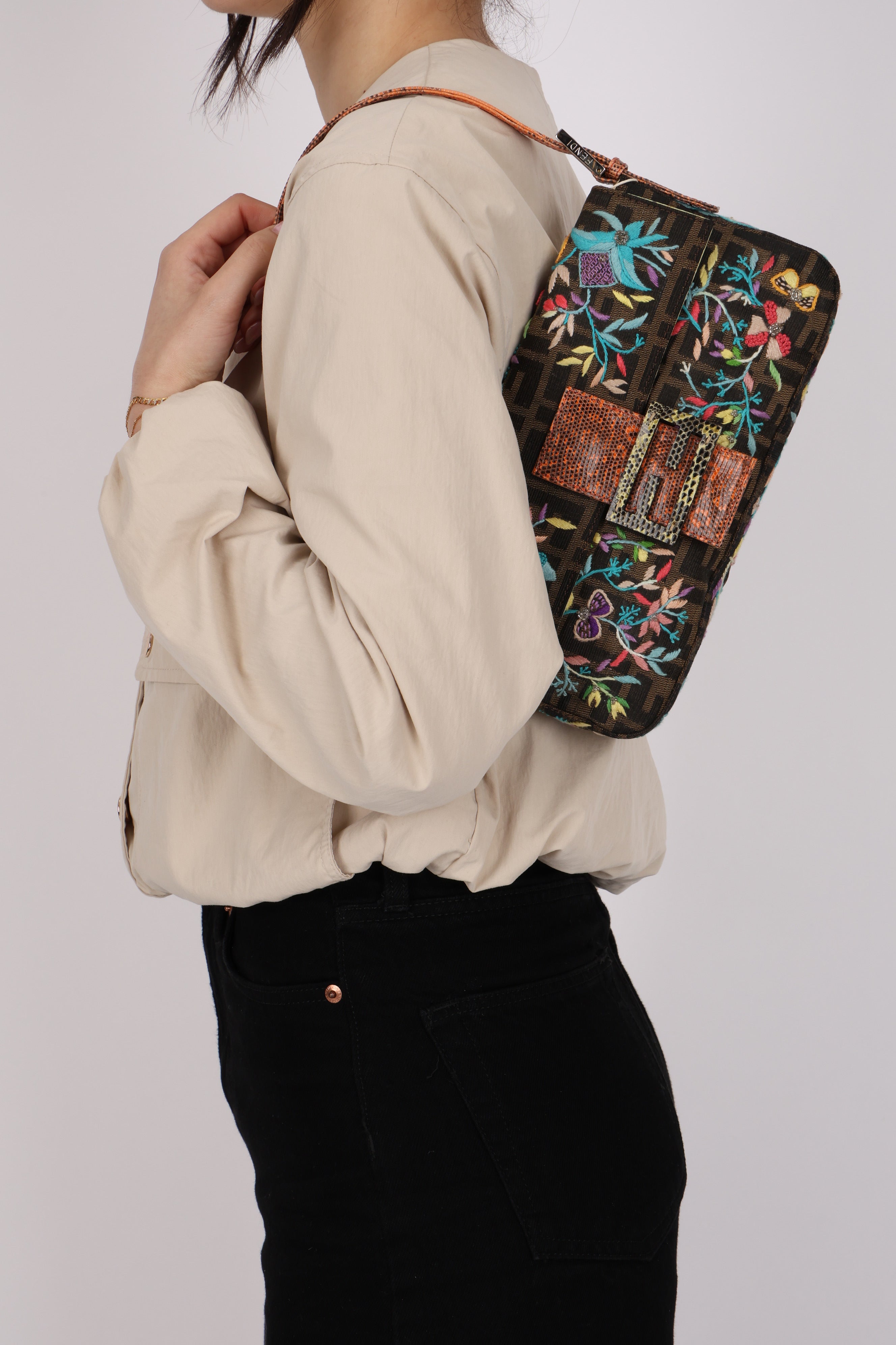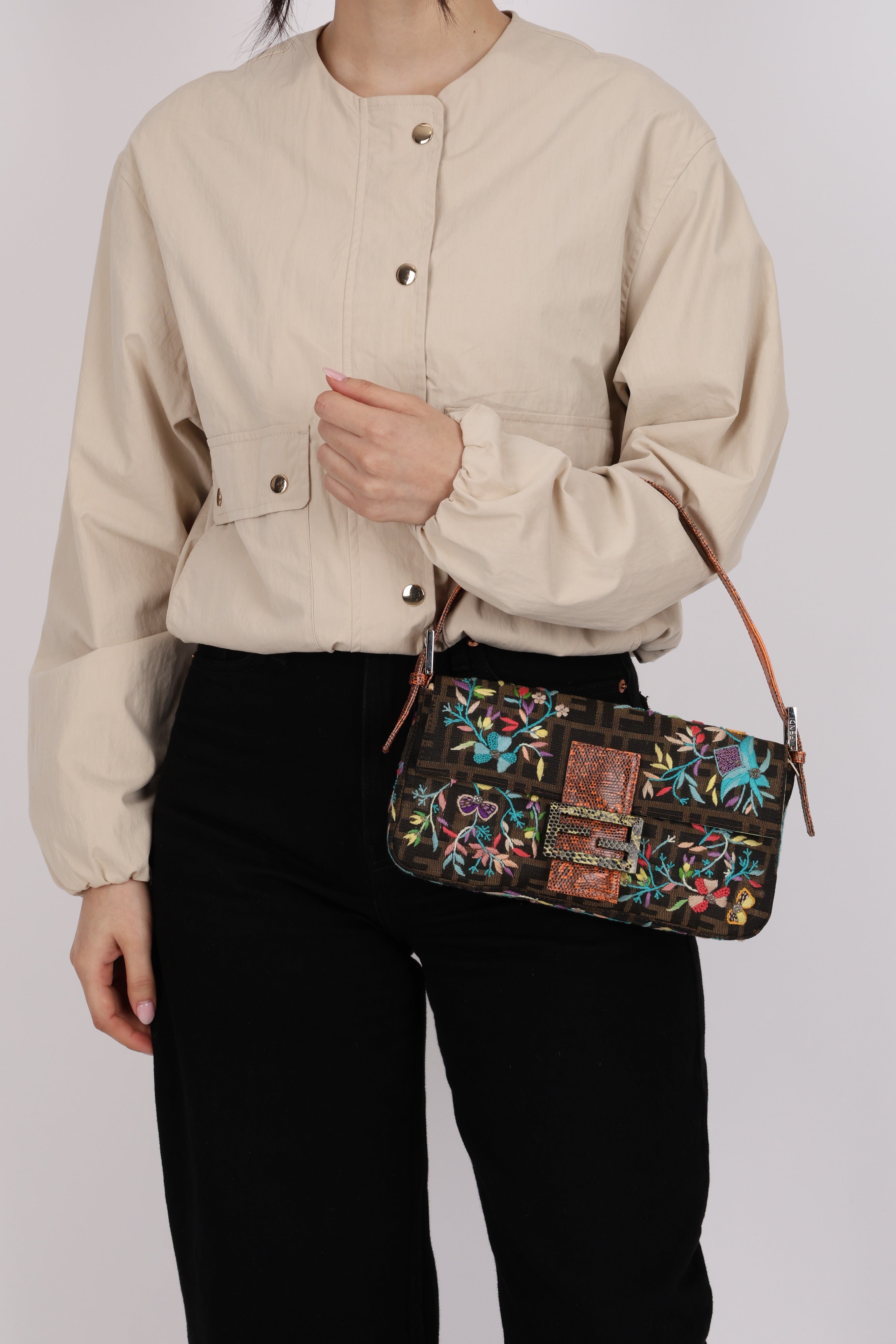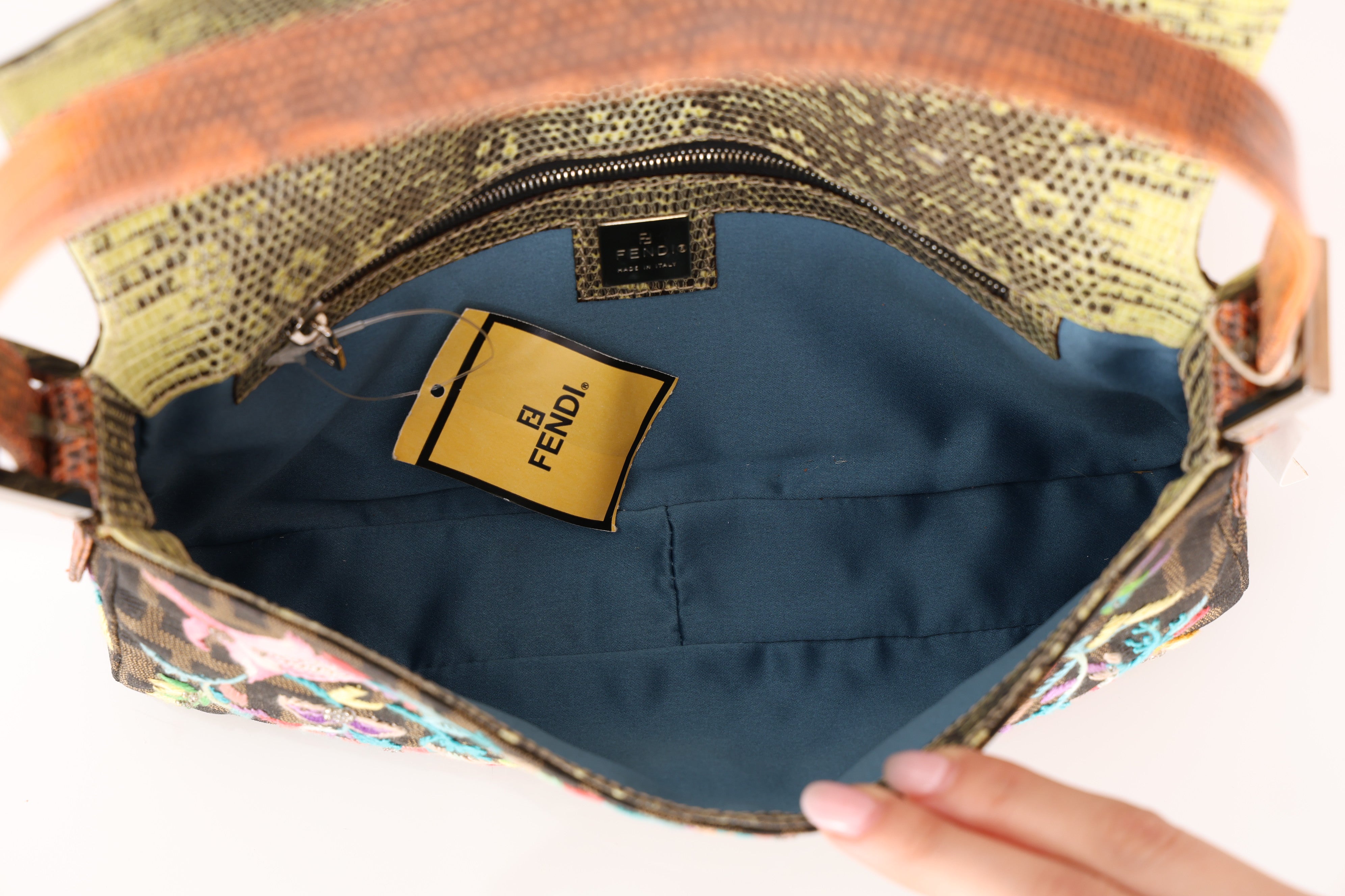 Ultra-Rare Fendi Zucca Lizard Embroidered & Beaded Baguette