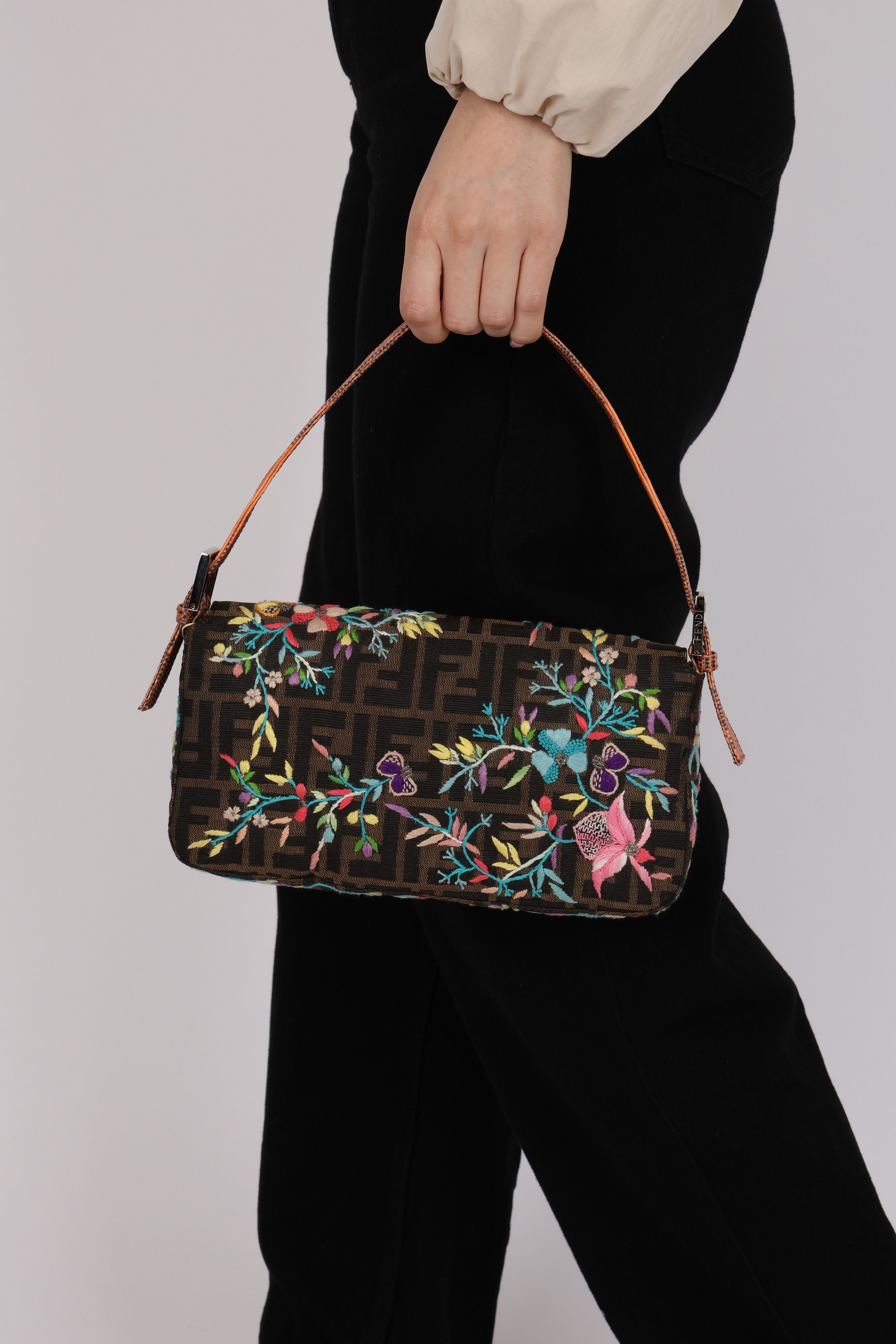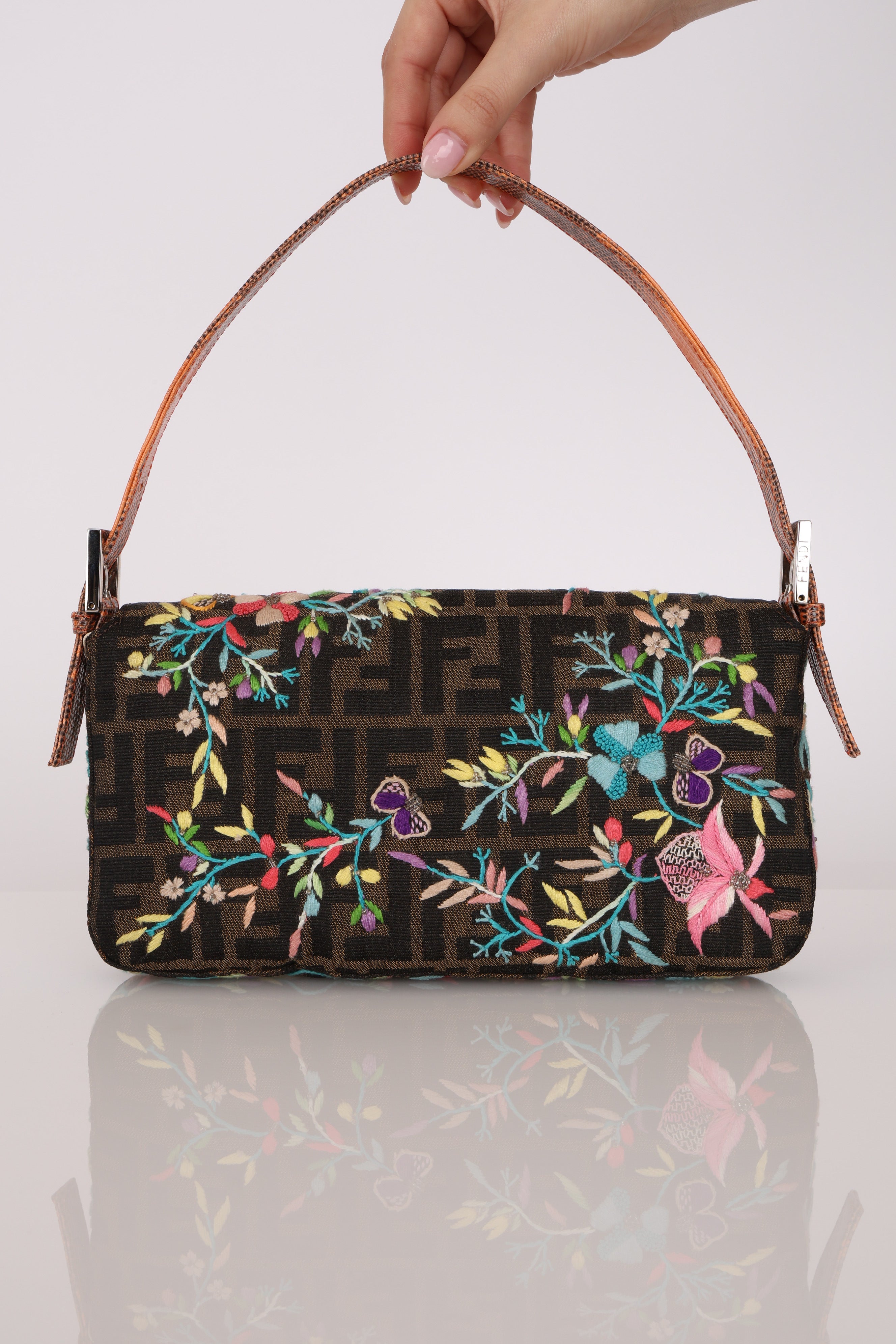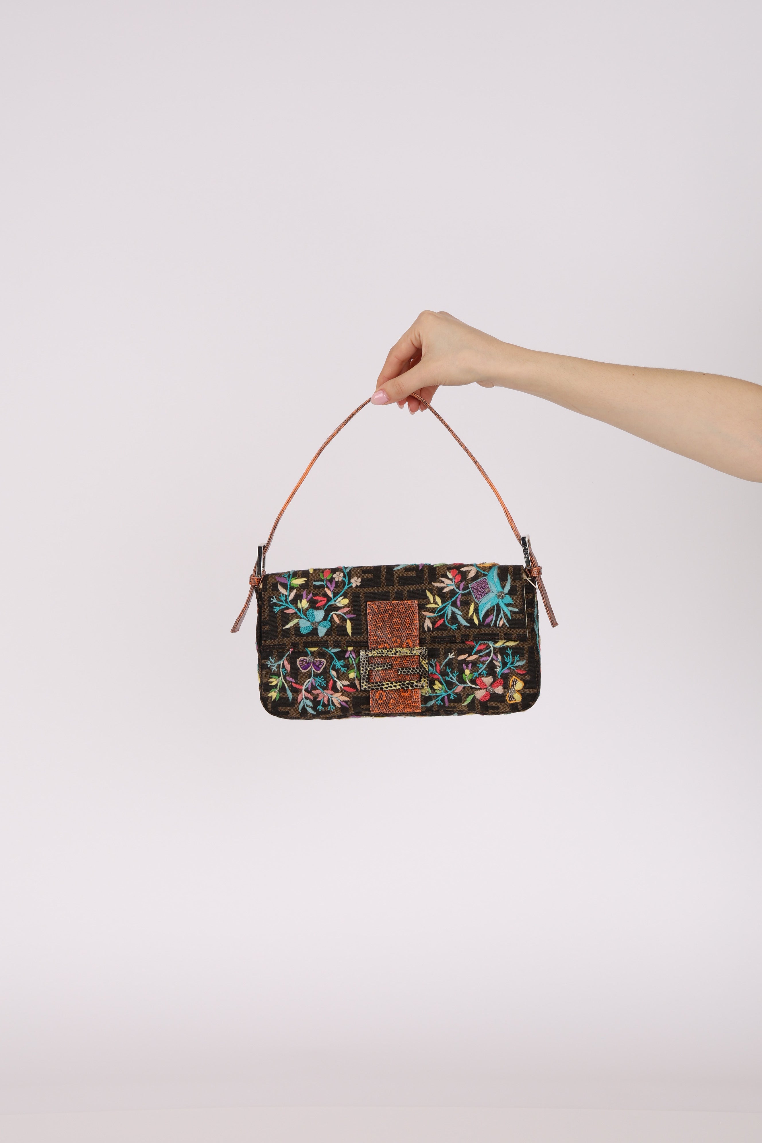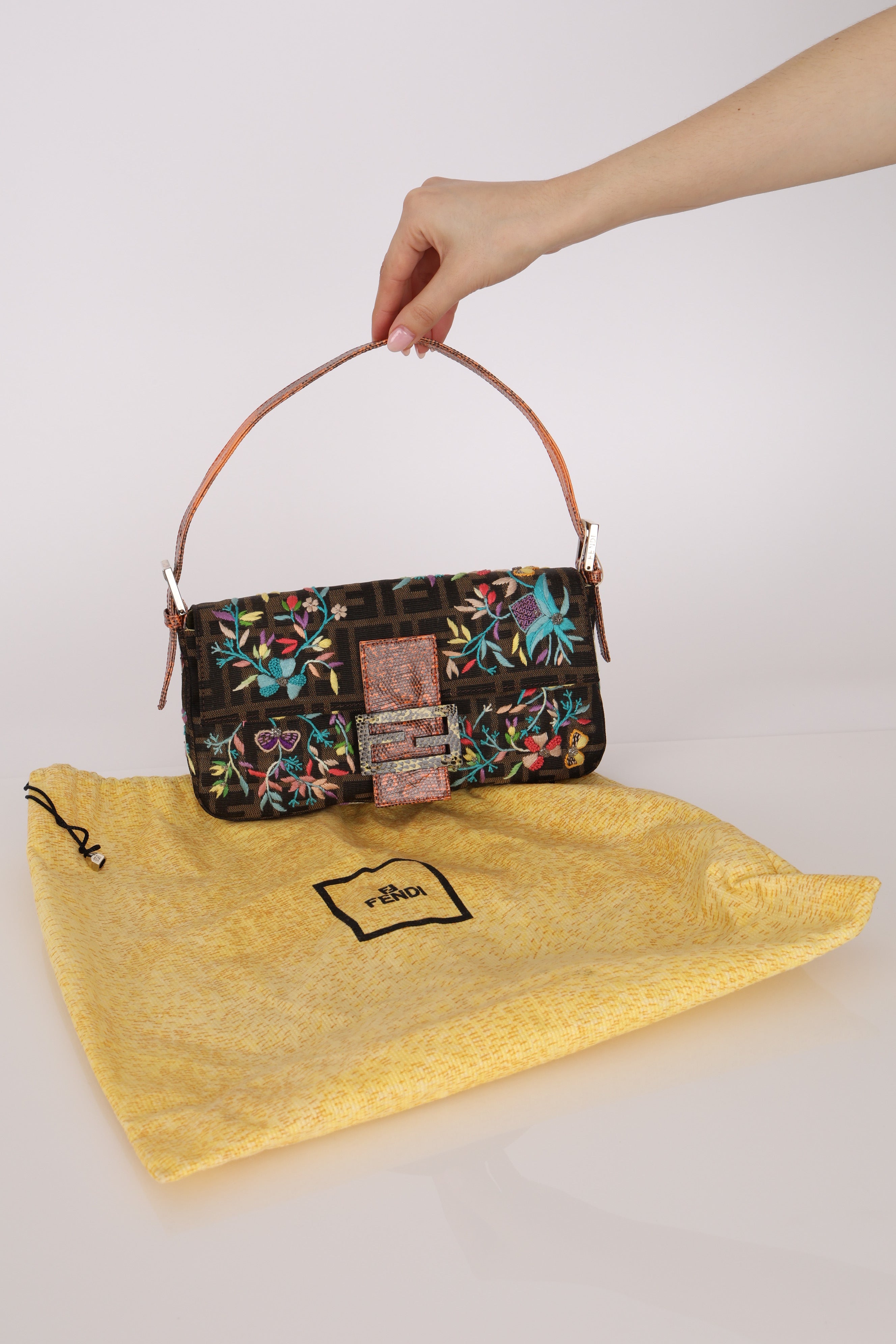 Ultra-Rare Fendi Zucca Lizard Embroidered & Beaded Baguette