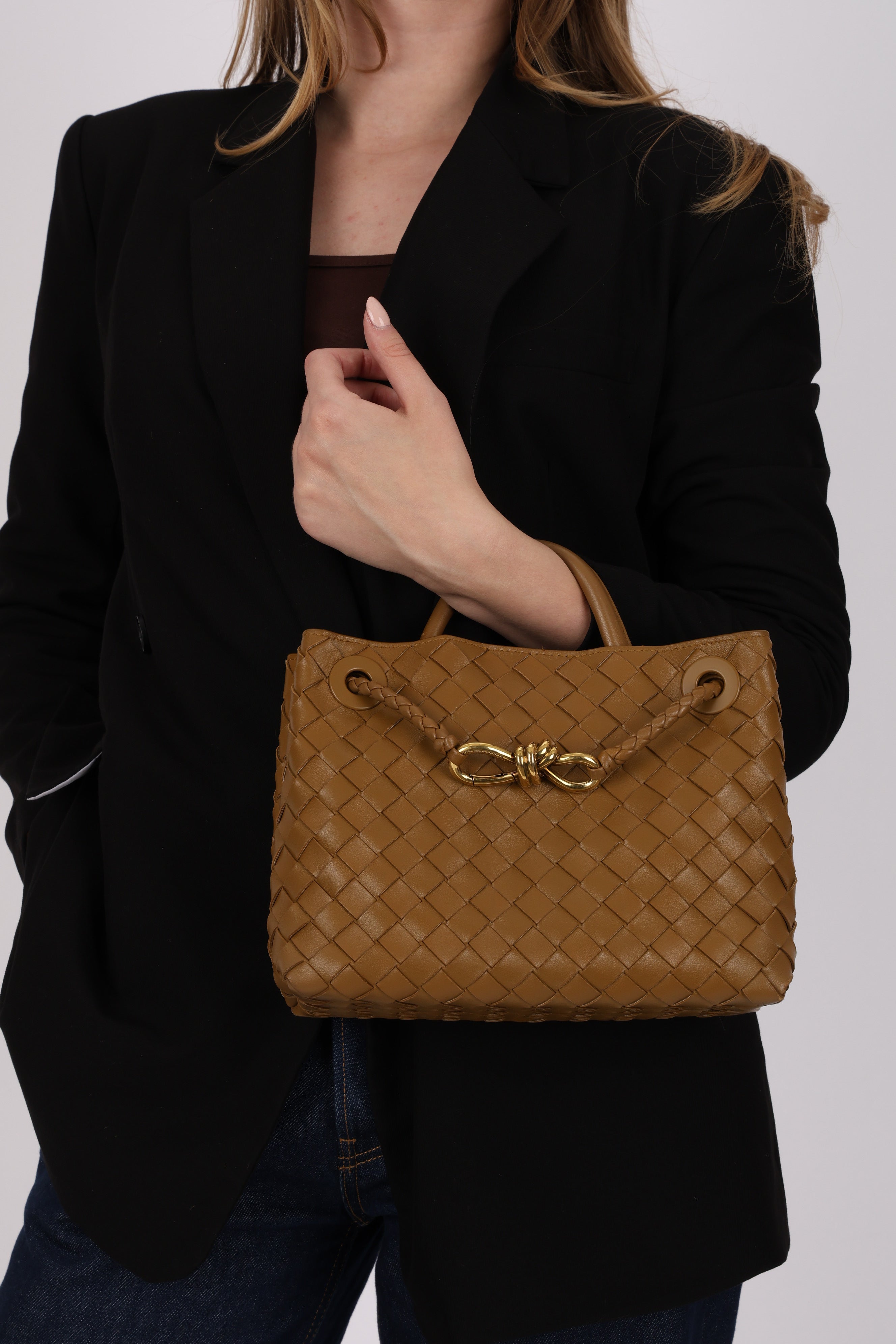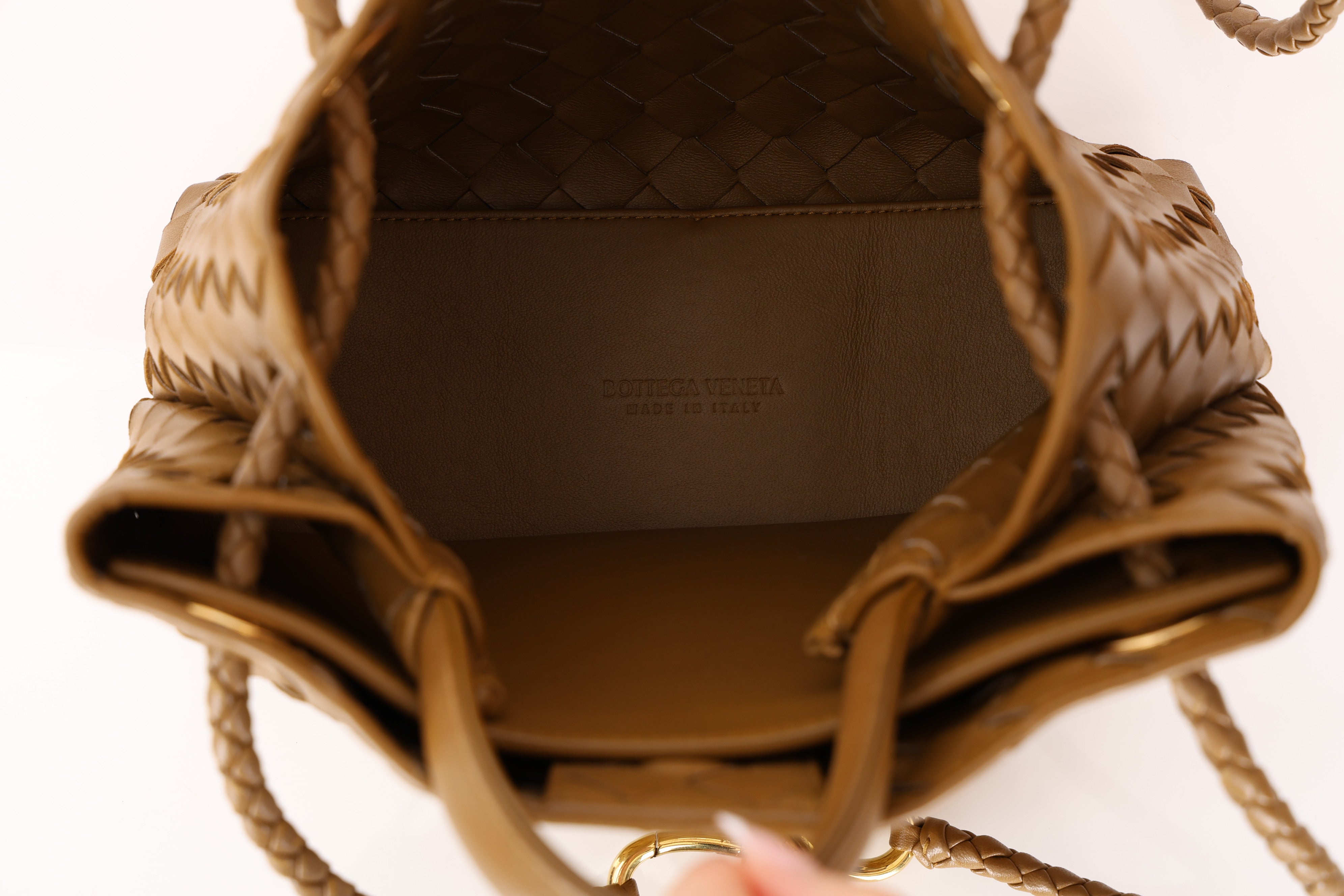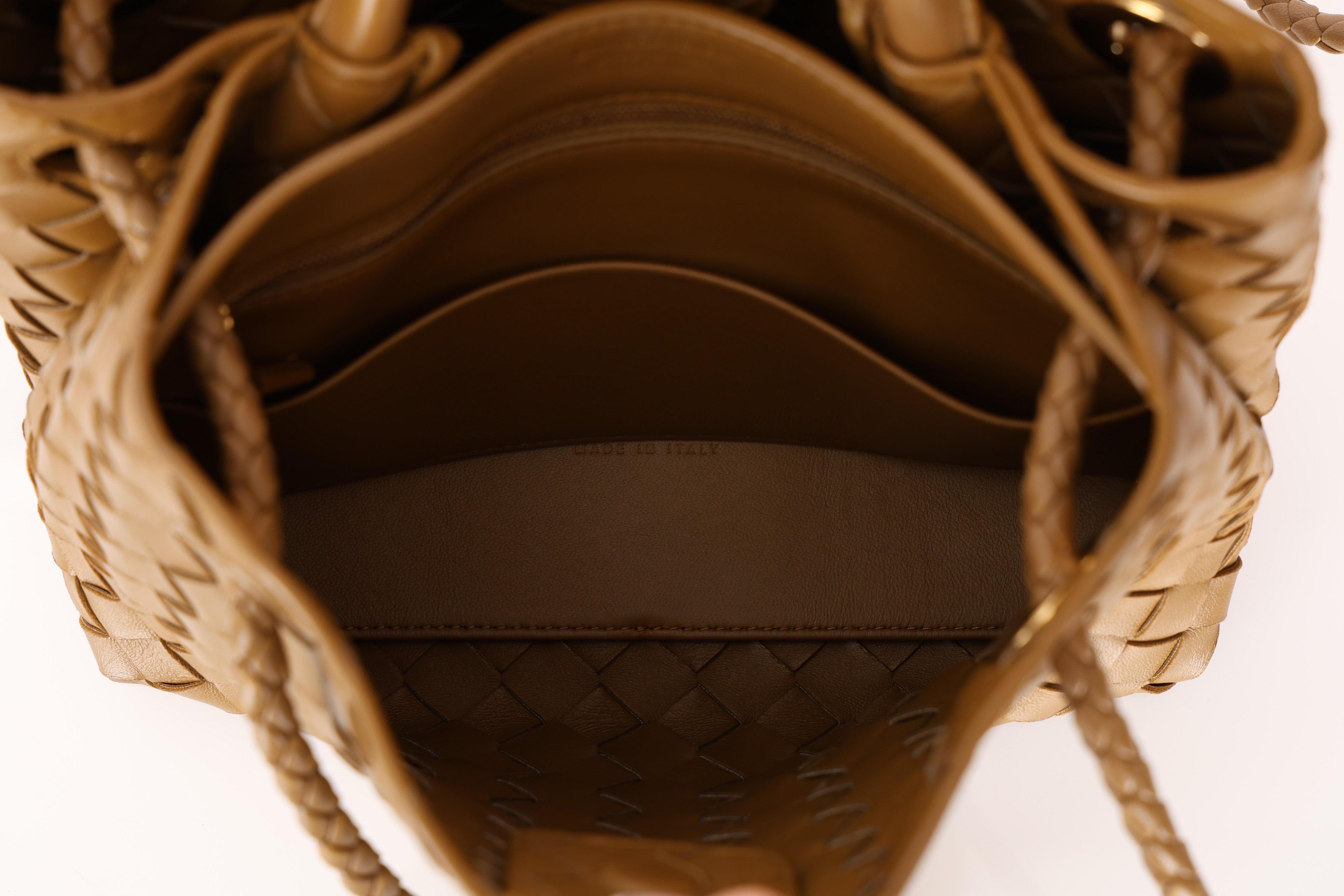 Bottega Veneta Amber Intrecciato Small Andiamo Bag