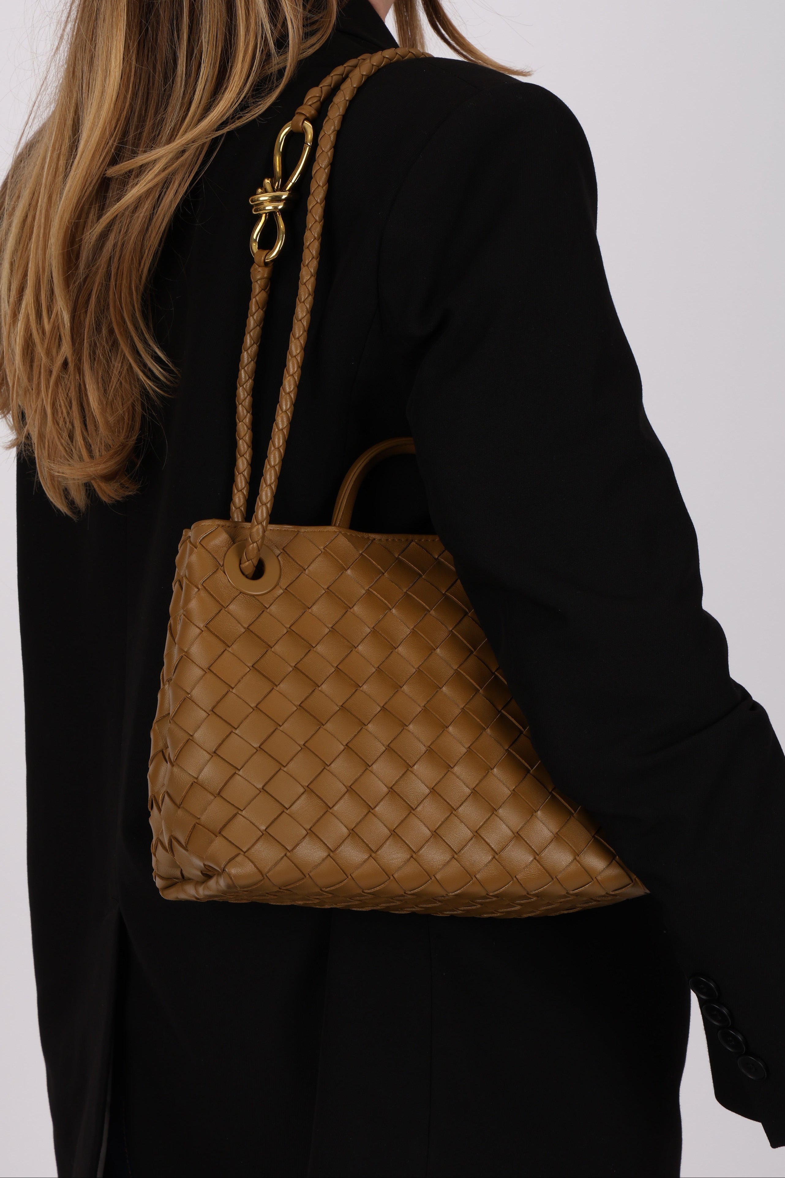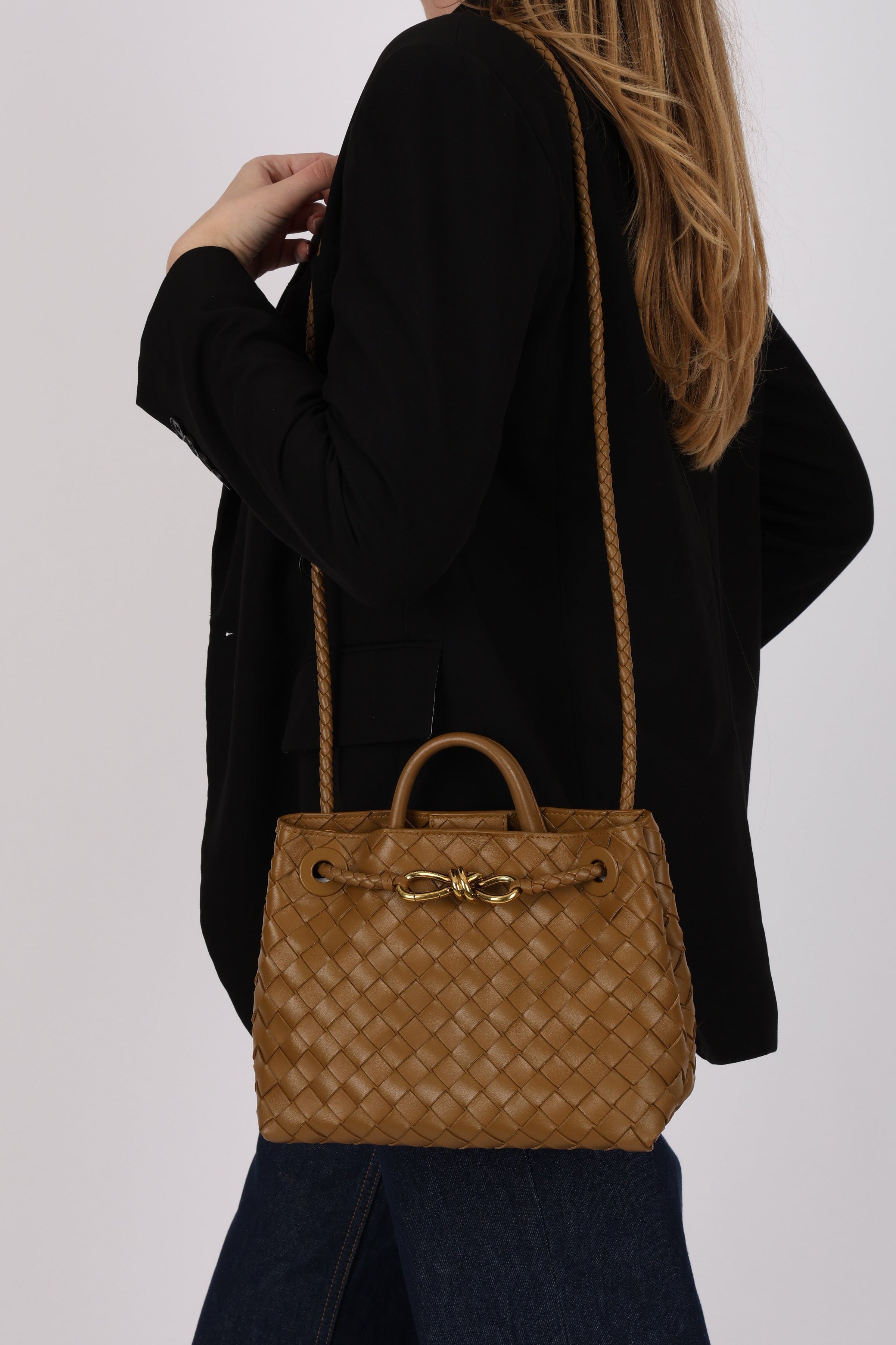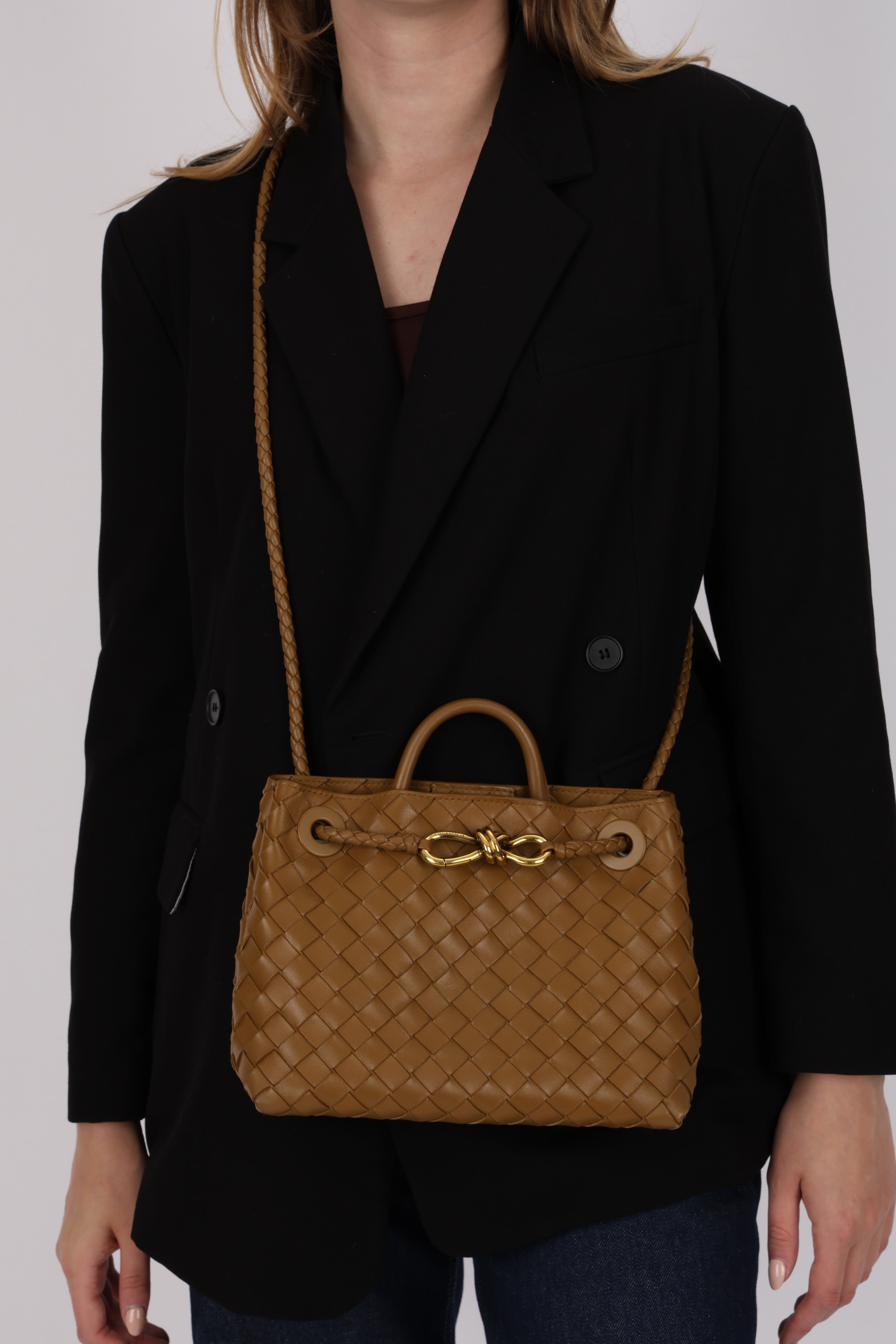 Bottega Veneta Amber Intrecciato Small Andiamo Bag