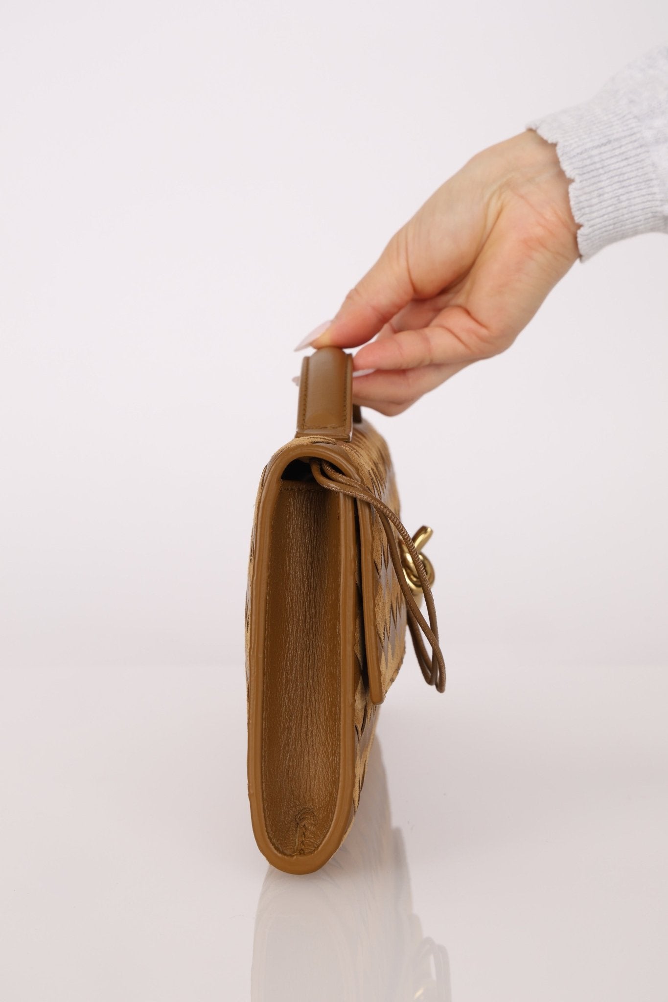 Twin with Nica! Released quietly online only in 2024, this suede and lambskin Andiamo Top Handle has become an exclusive find. Such a versatile piece that can be worn casually, but also in more professional and formal settings. Whether it's brunch or a work event, this clutch is sure to fit the occasion!