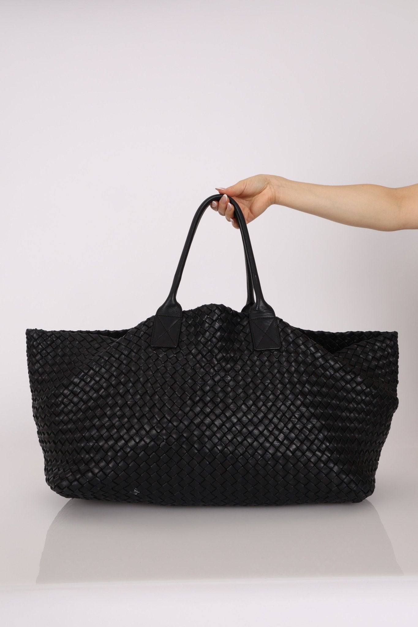 Limited Edition Bottega Veneta Black Intrecciato Large Cabat with Pouch - FashioNica