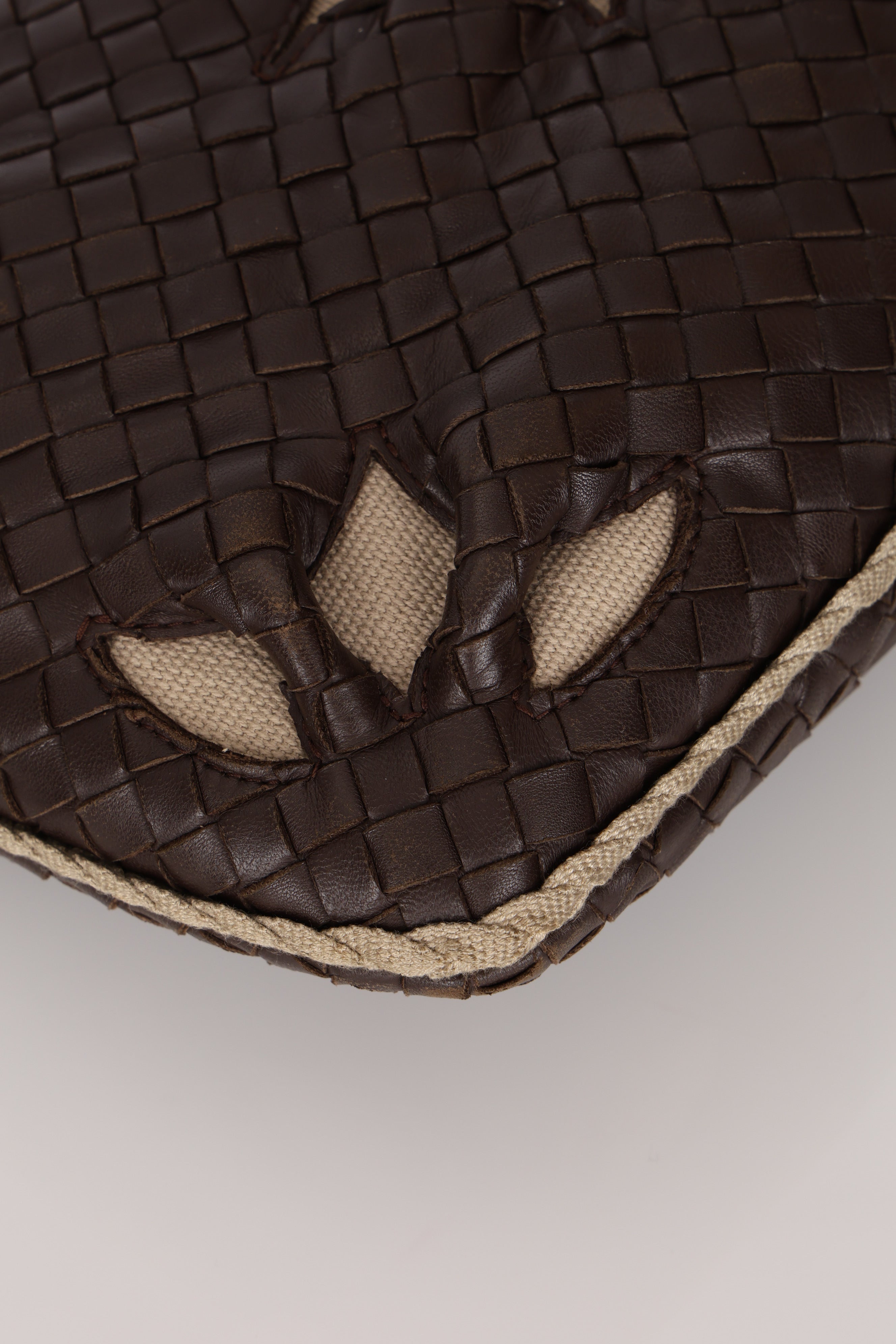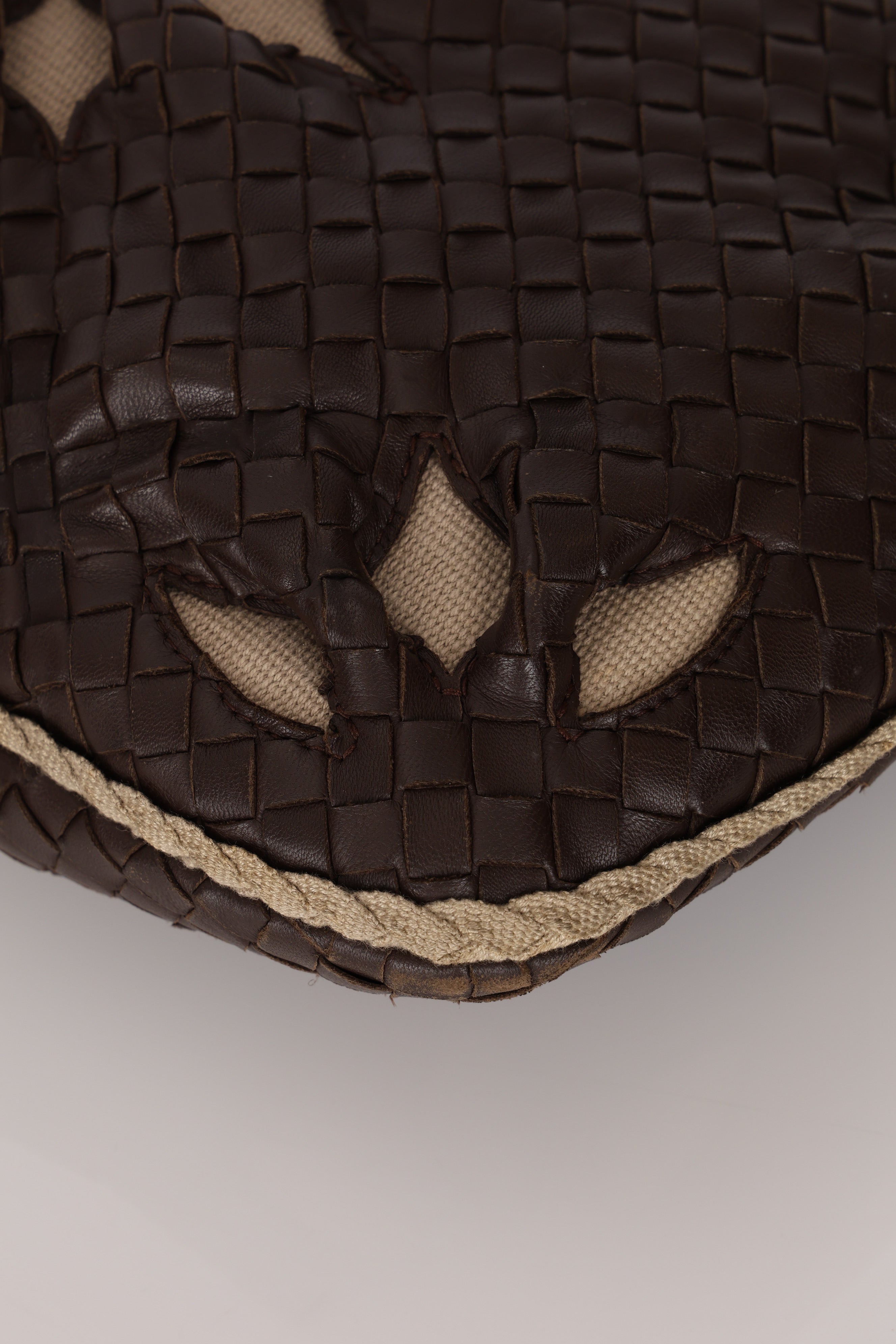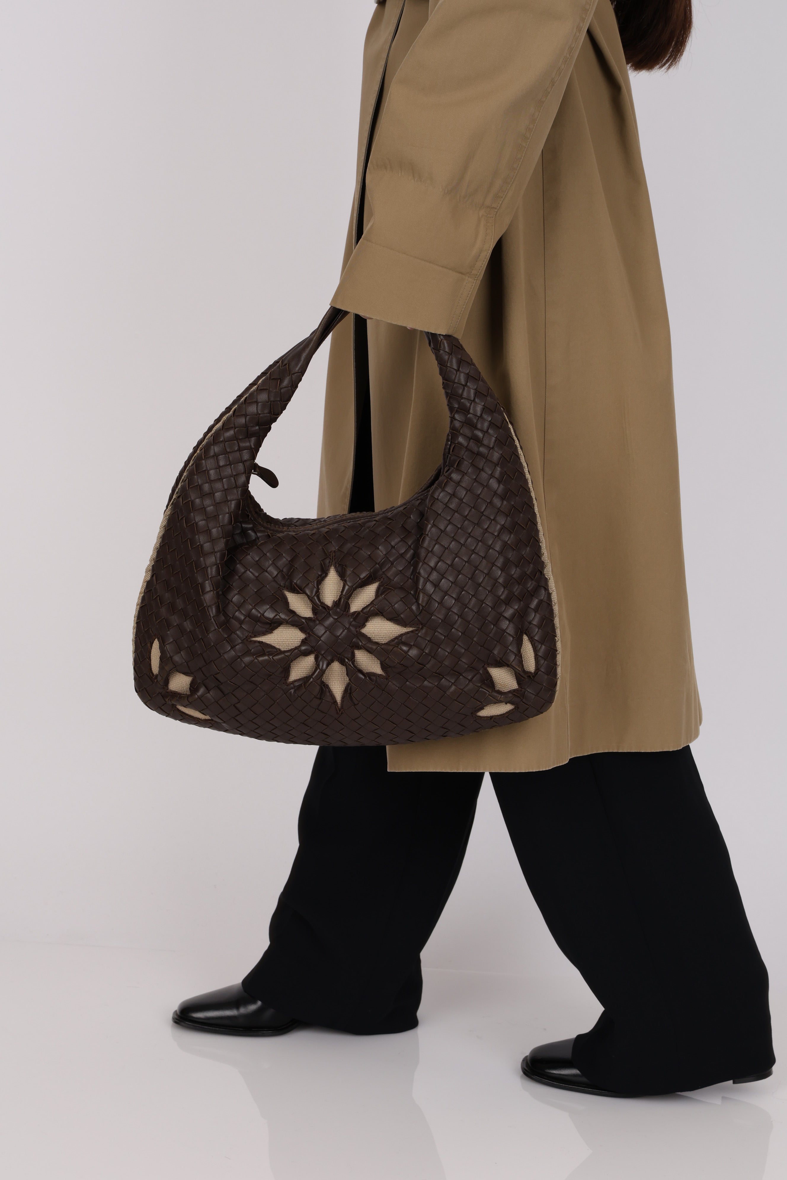 Interwoven into the body of this Bottega Veneta Hobo is a sculptural floral motif, formed through intricate twists of the house’s signature intrecciato leather. The dimensional weave subtly reveals a contrasting canvas beneath, creating more depth and artistic intrigue.
