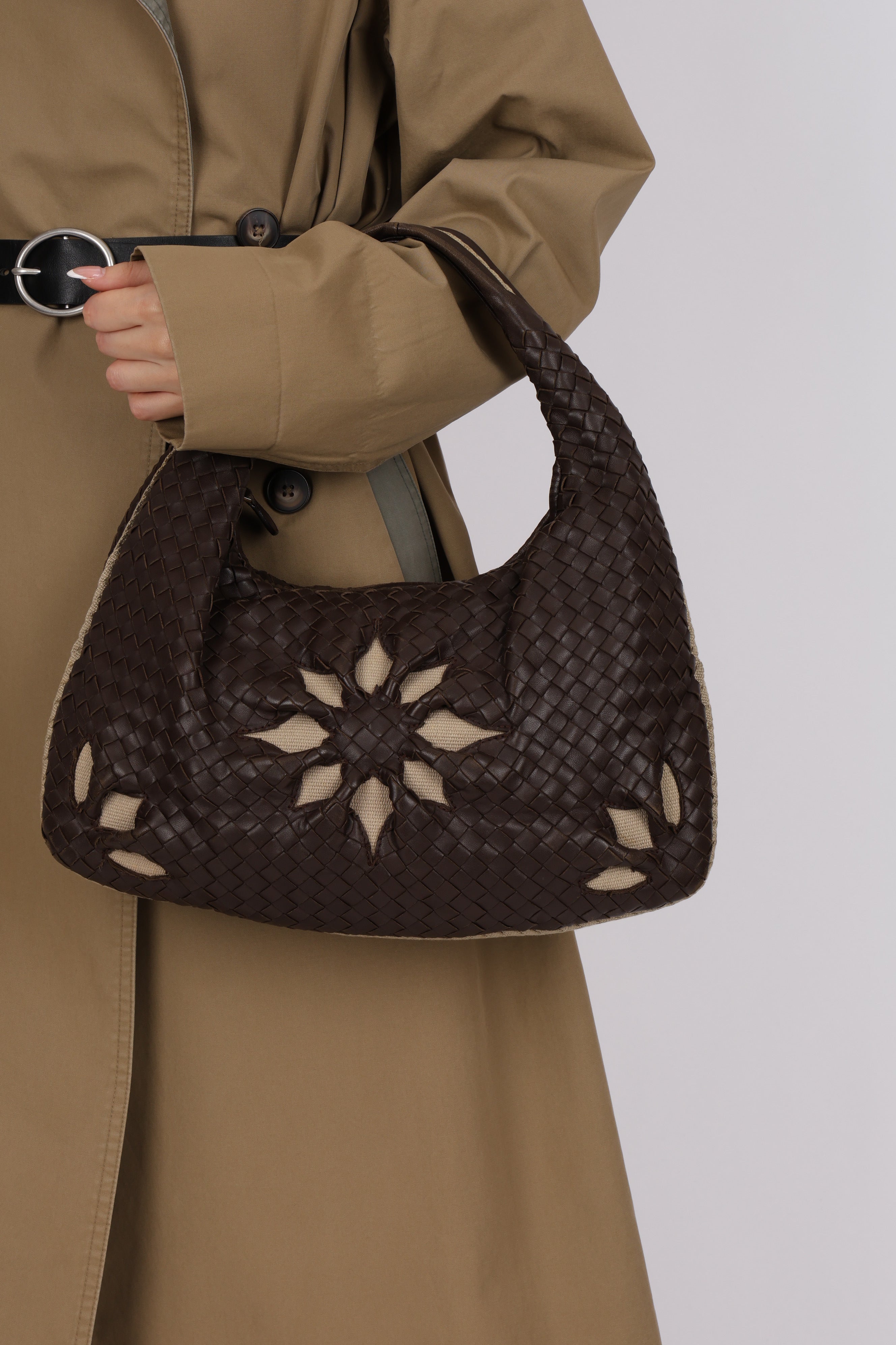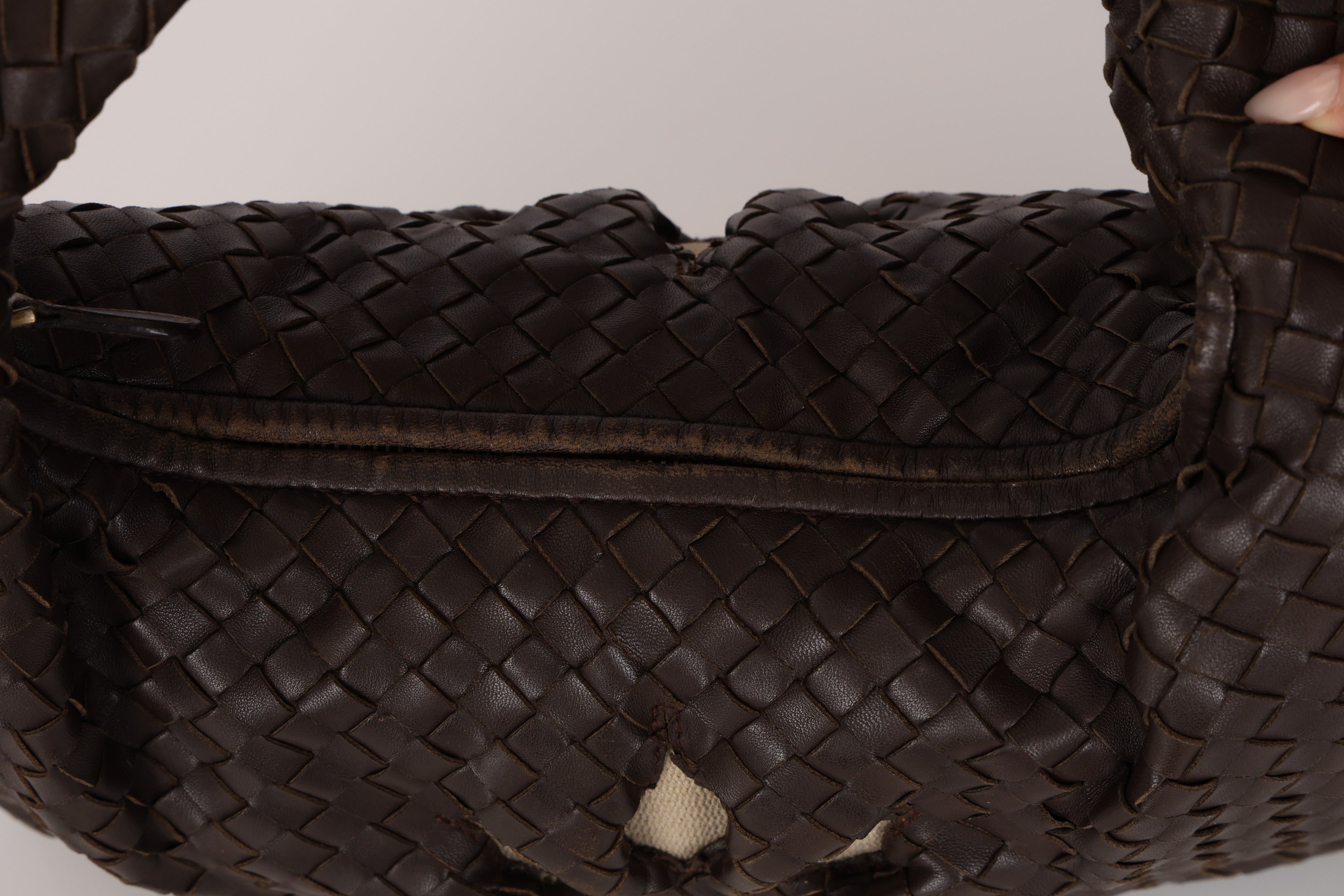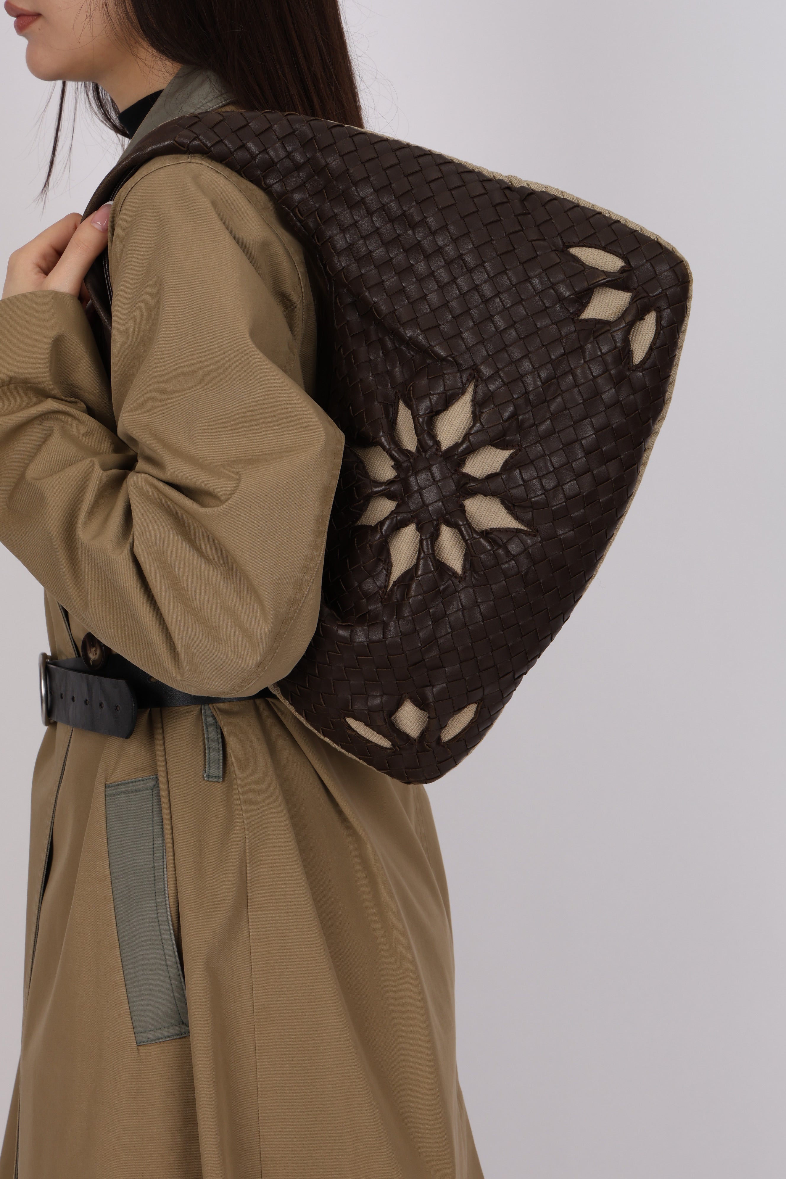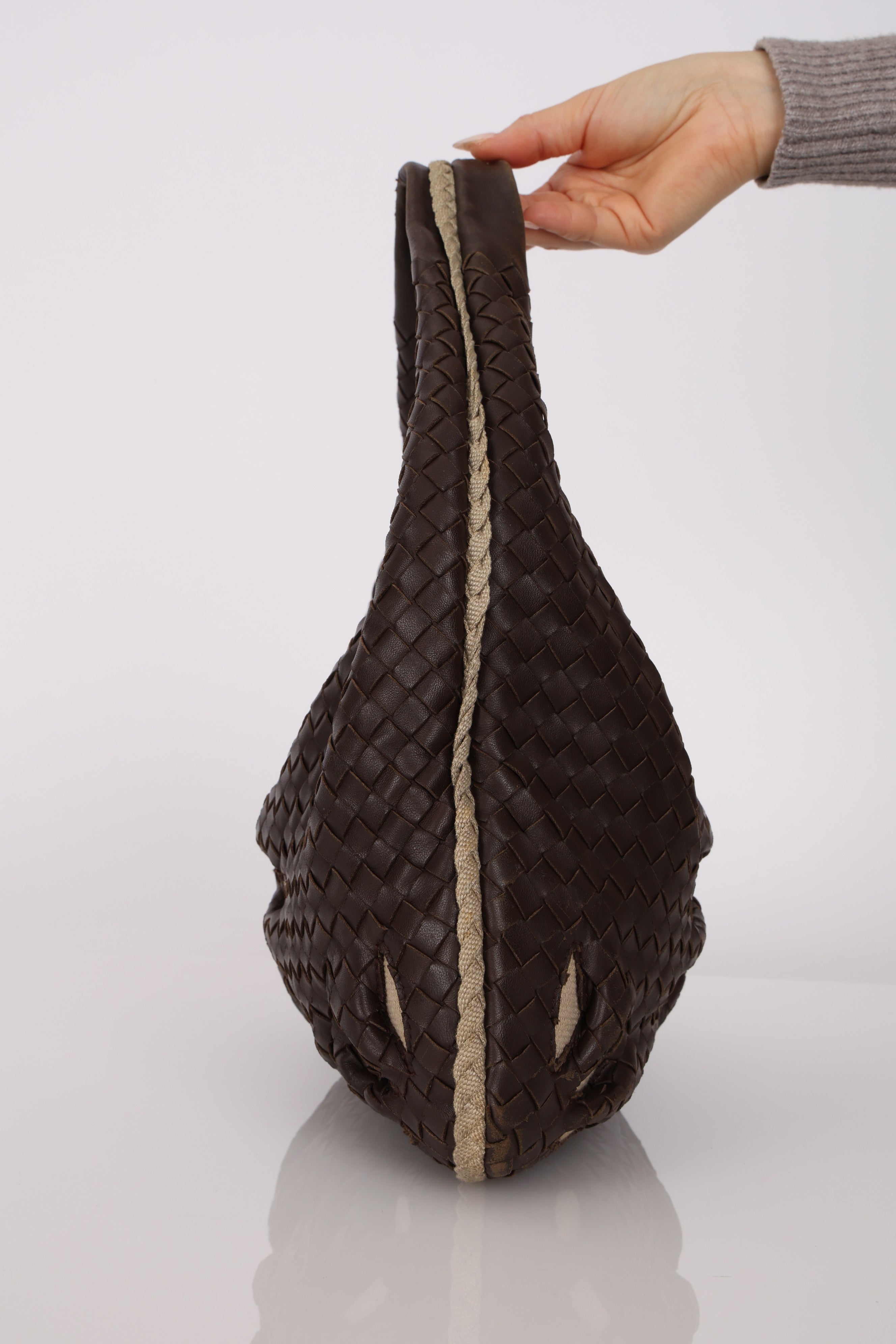 Interwoven into the body of this Bottega Veneta Hobo is a sculptural floral motif, formed through intricate twists of the house’s signature intrecciato leather. The dimensional weave subtly reveals a contrasting canvas beneath, creating more depth and artistic intrigue.