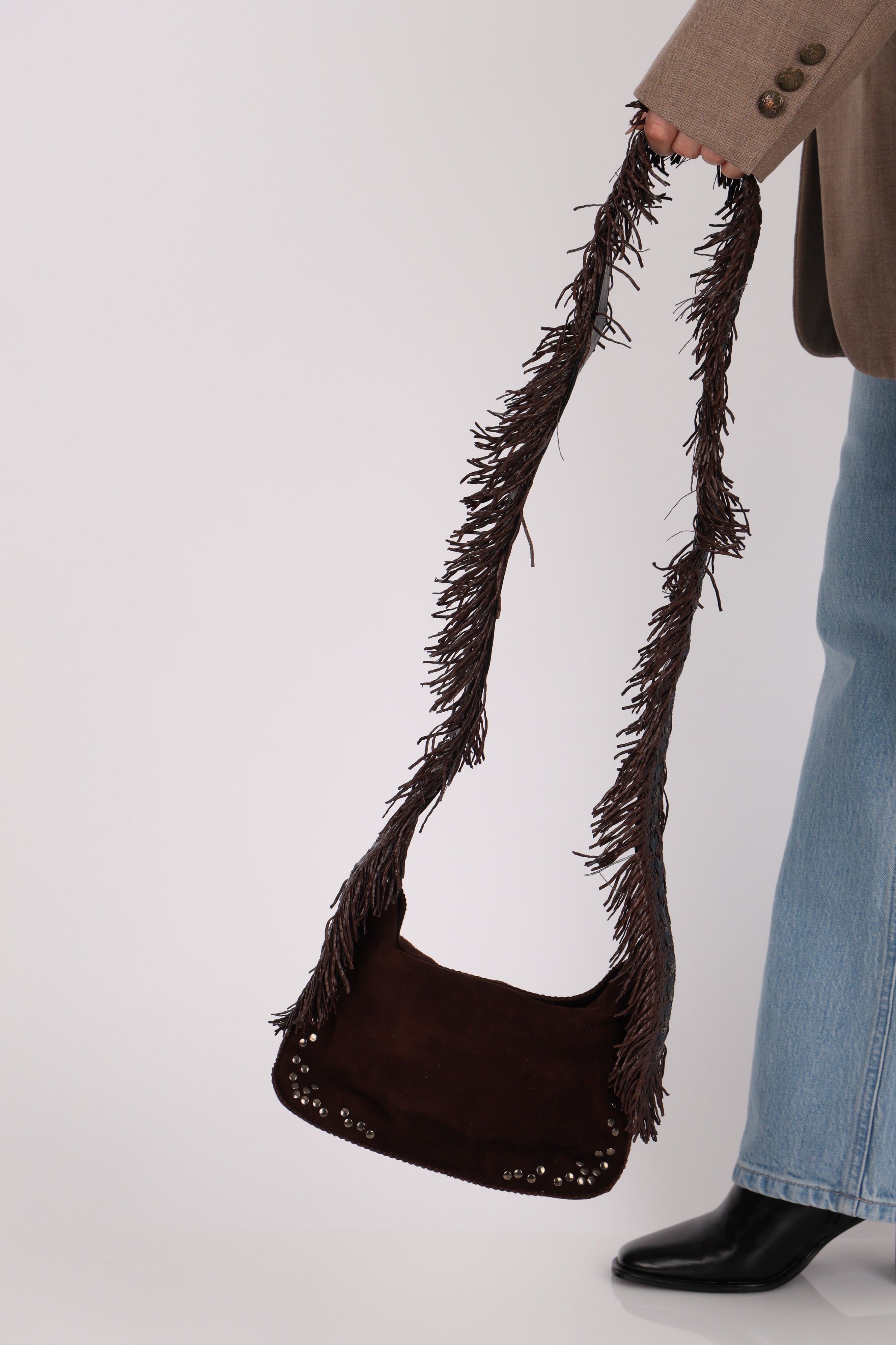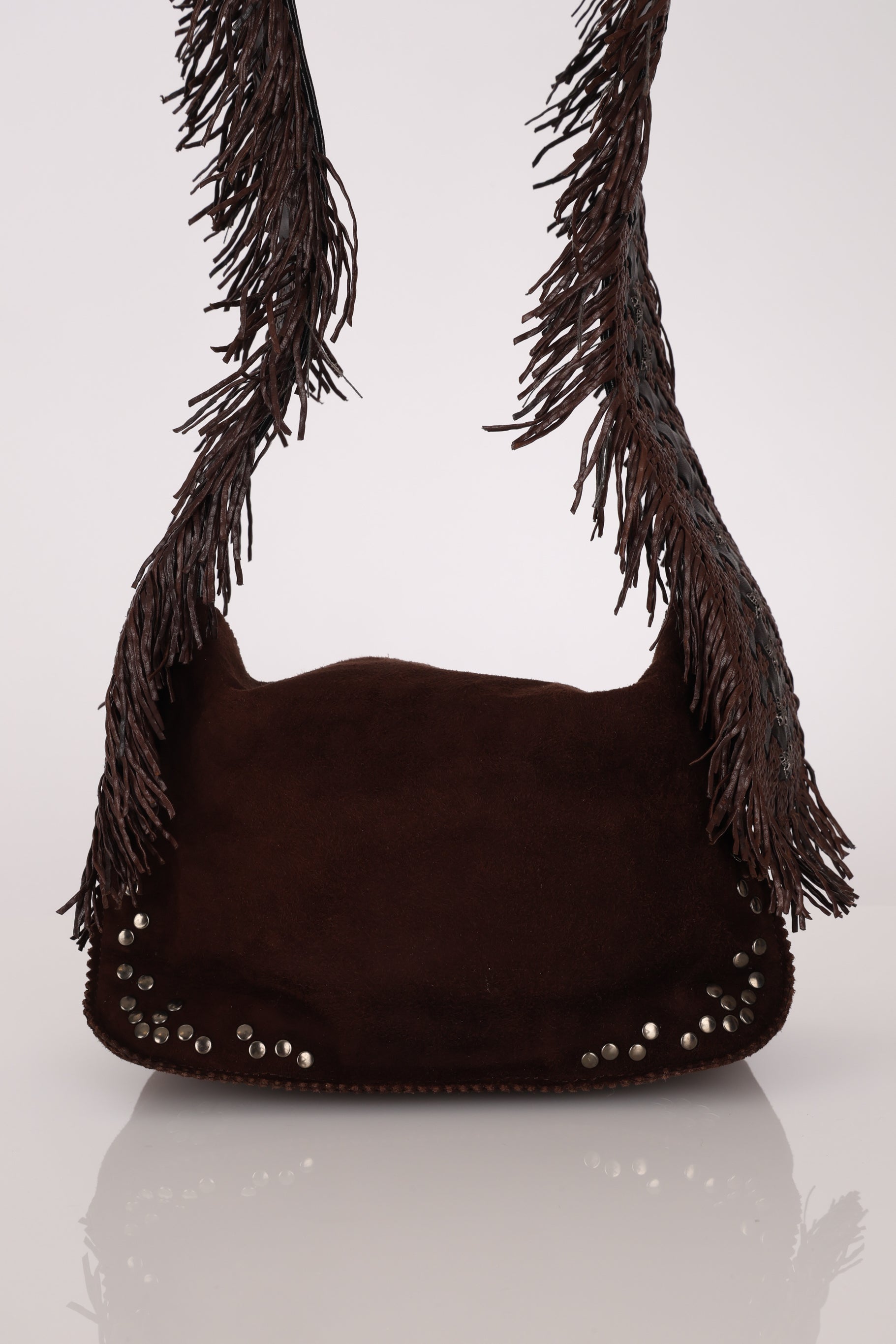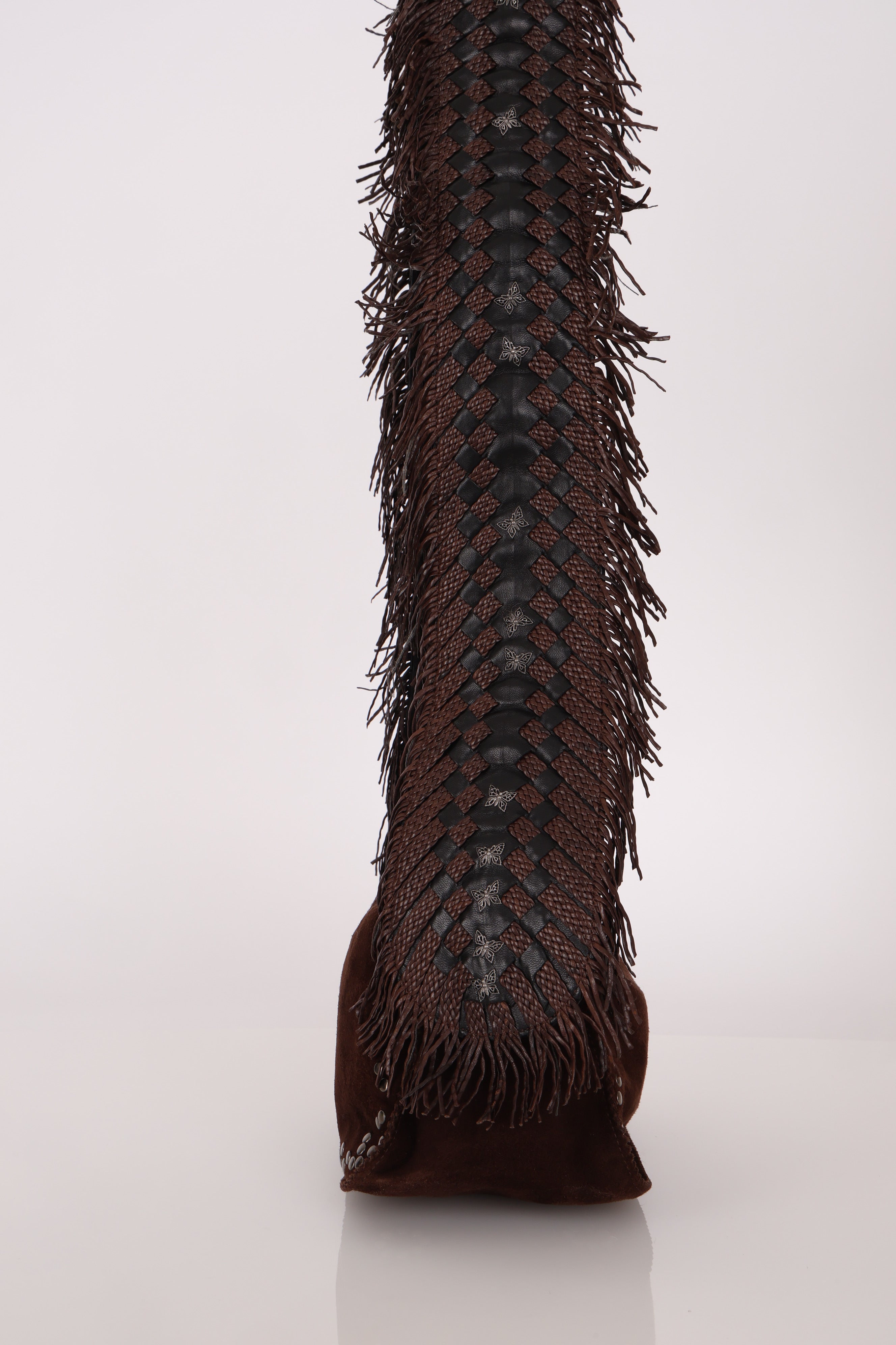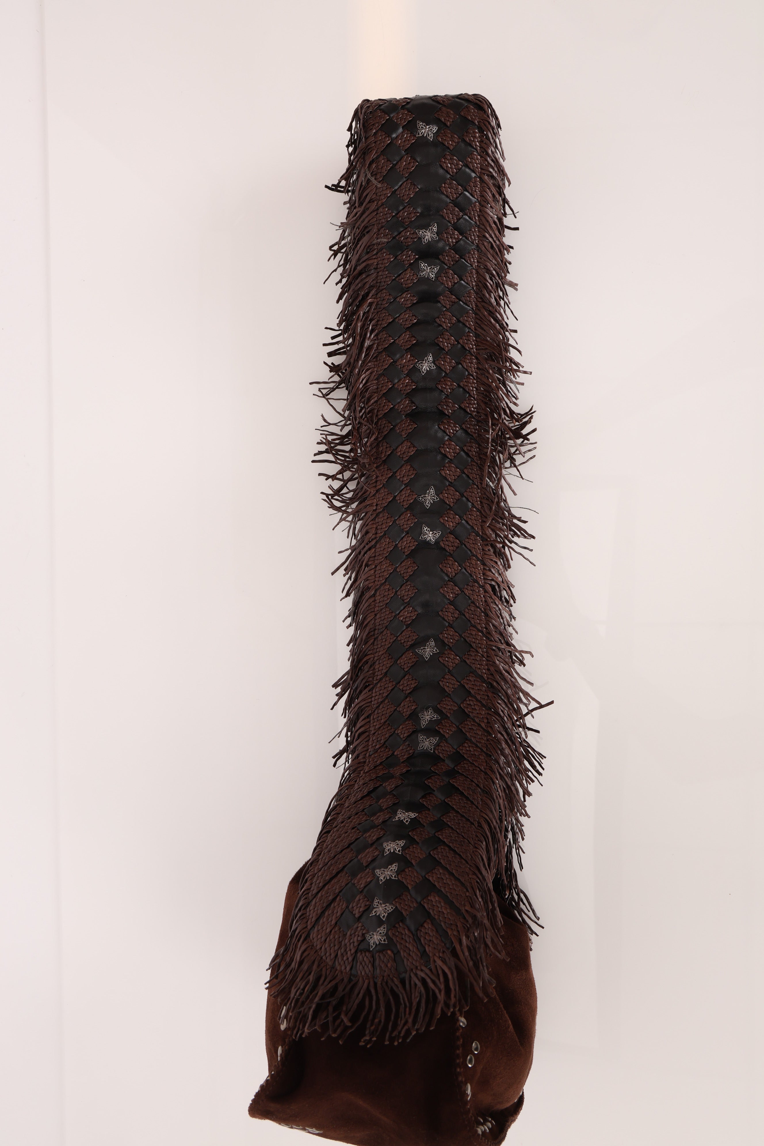 Limited Edition Bottega Veneta 2003 Intrecciato Suede Fringe Boho Hobo