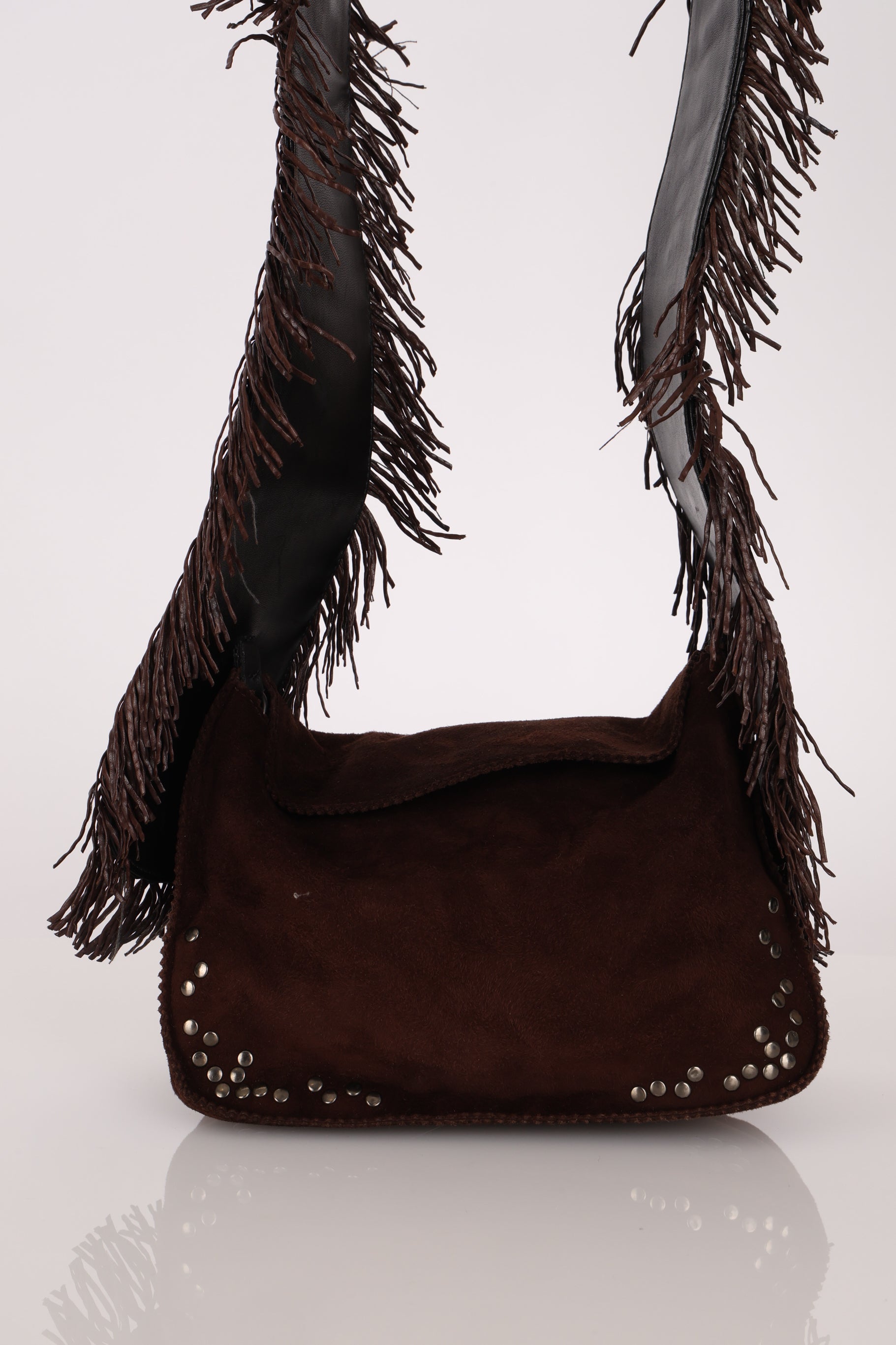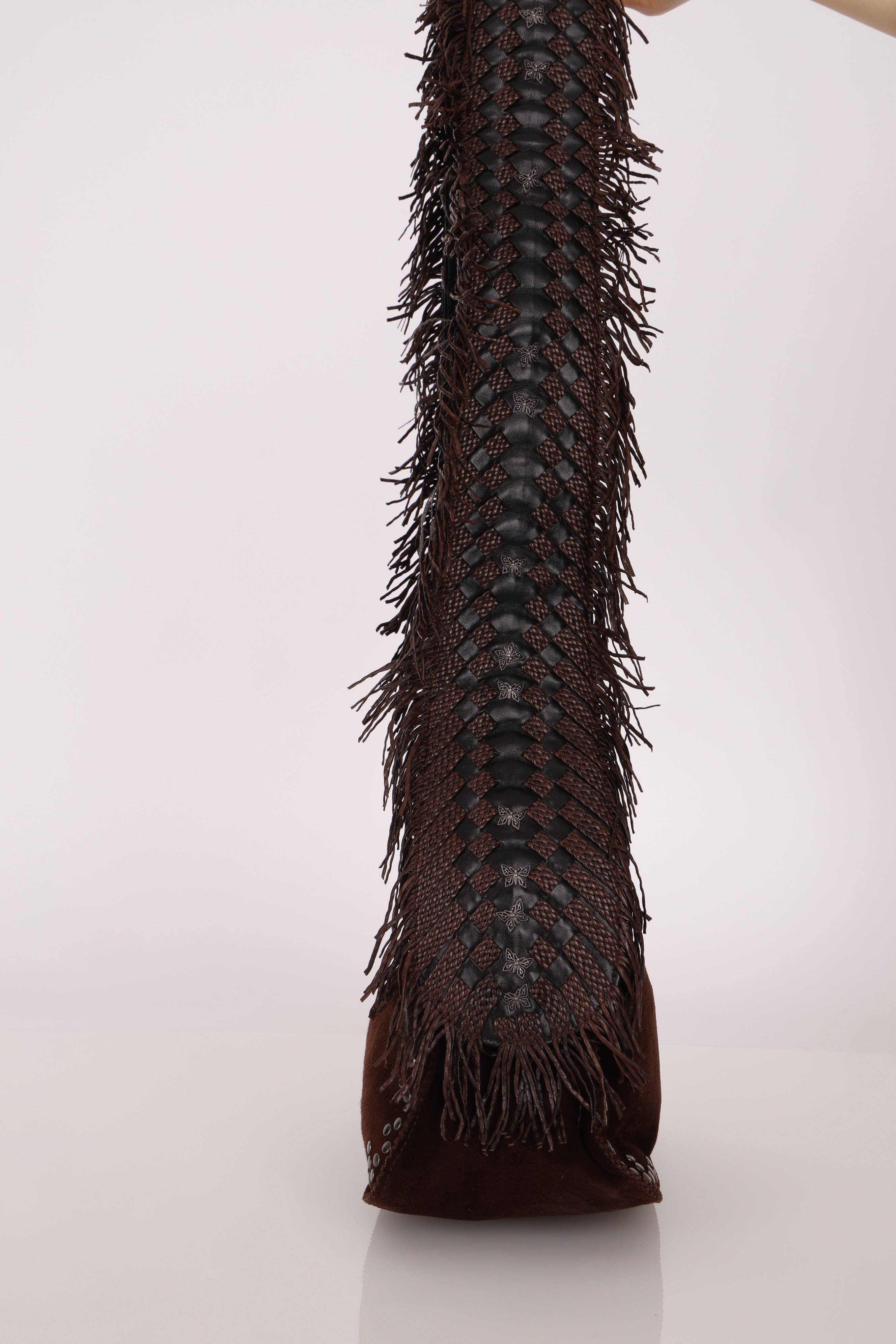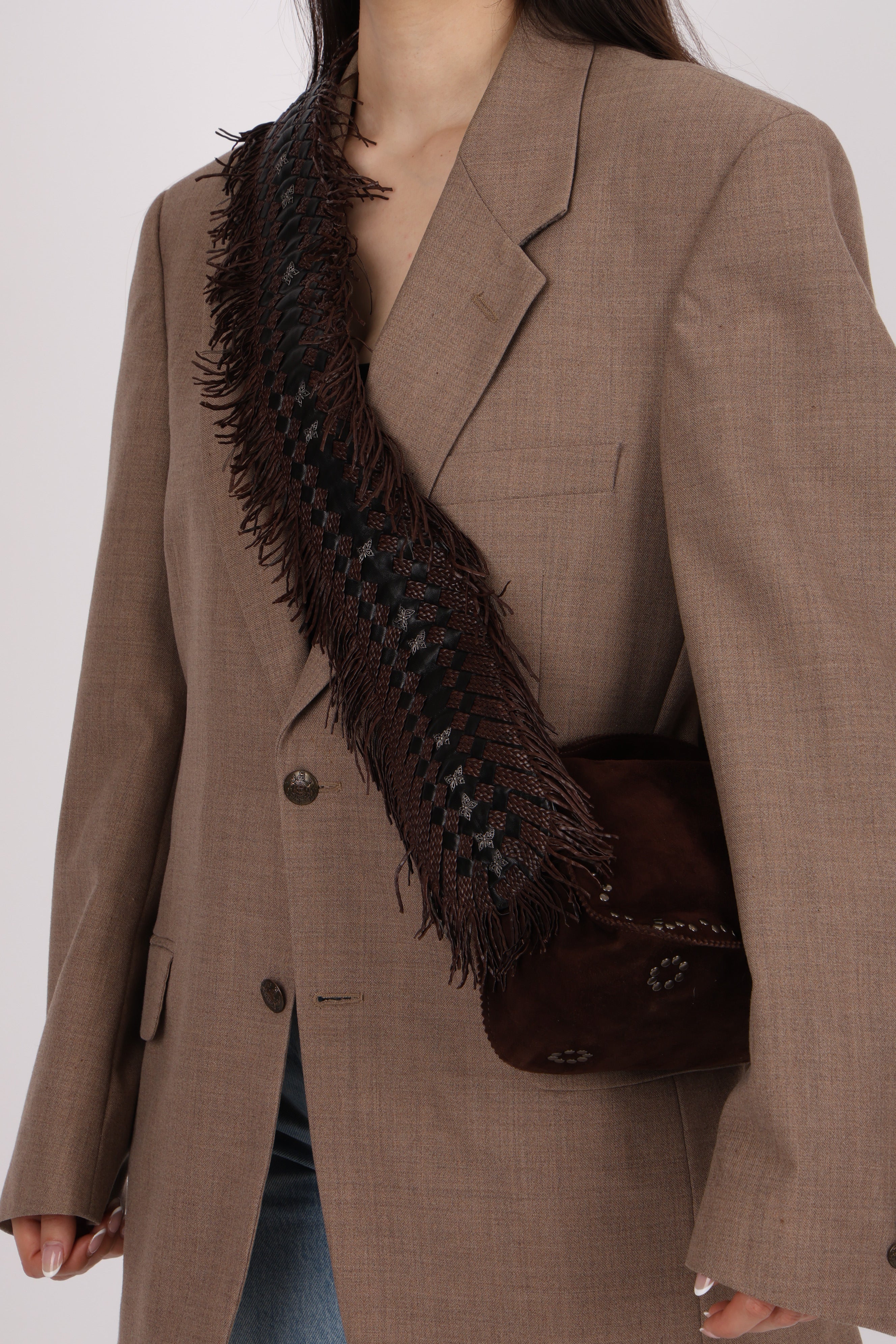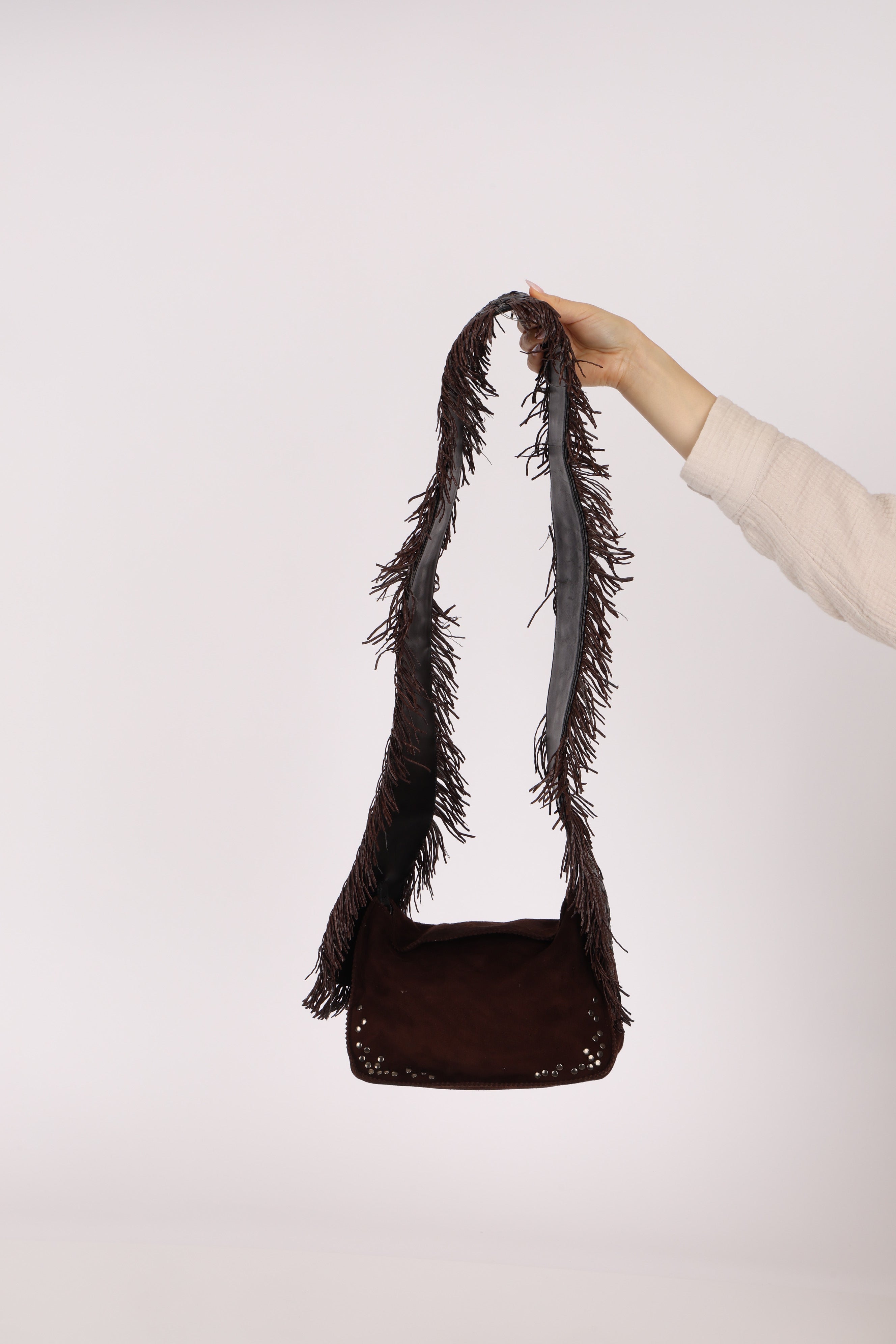 Limited Edition Bottega Veneta 2003 Intrecciato Suede Fringe Boho Hobo