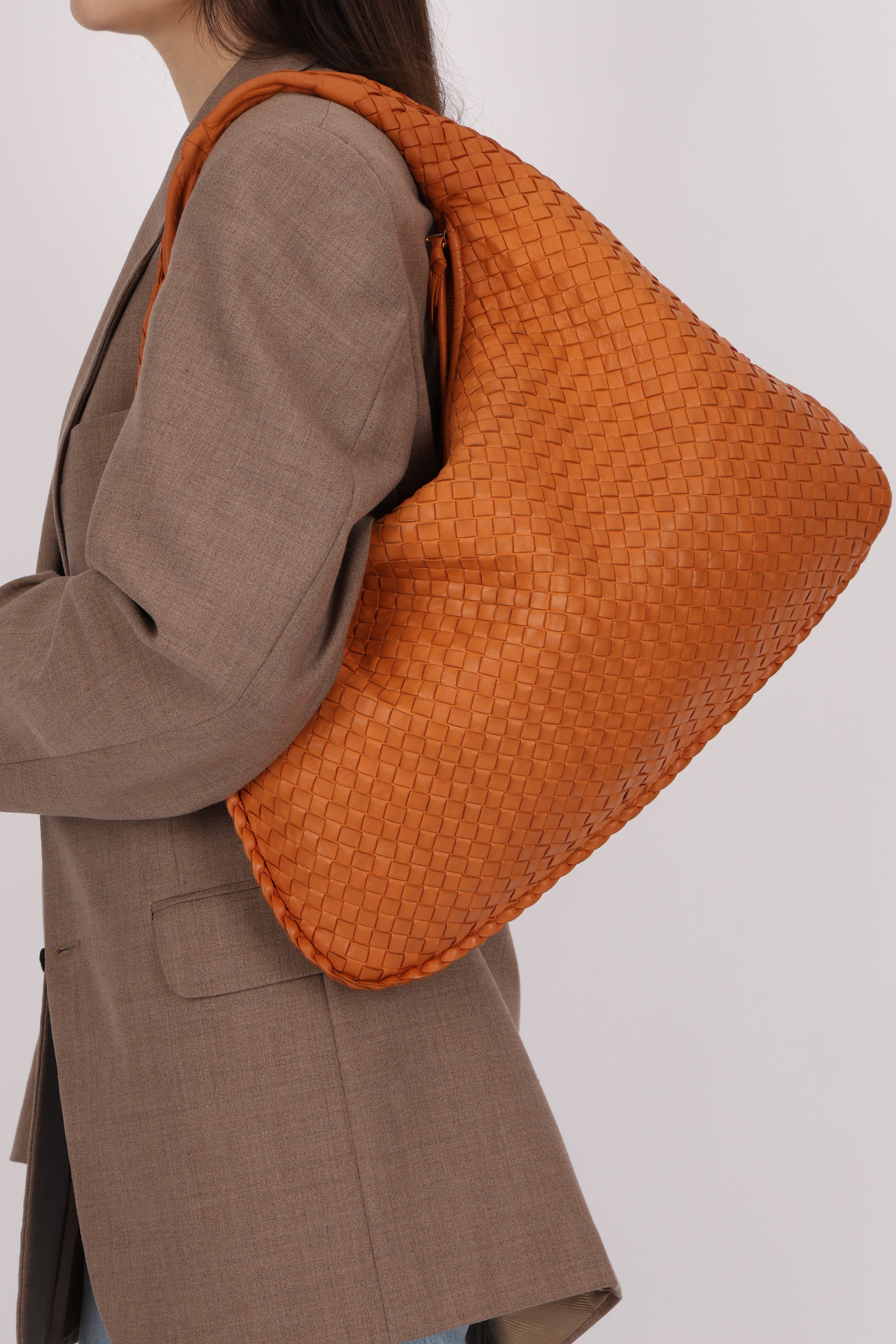 Bottega Veneta Orange Medium Intrecciato Hobo Bag