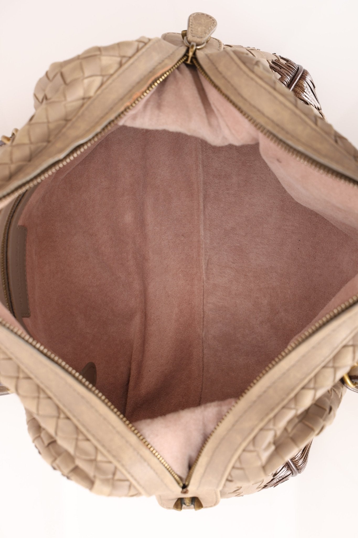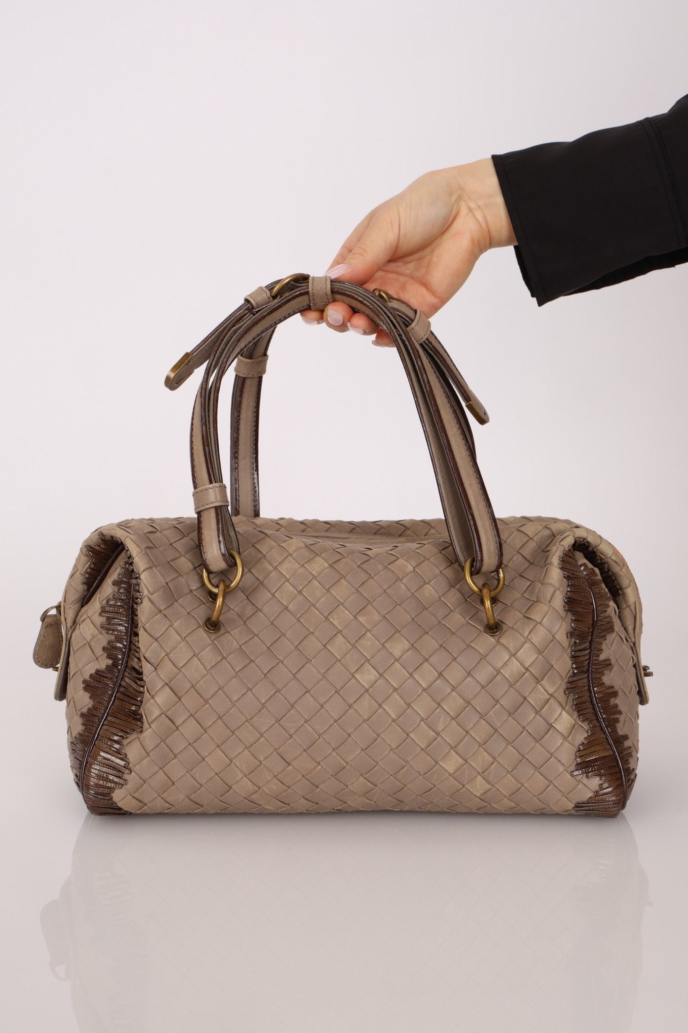 Bottega Veneta Taupe Intrecciato Mini Boston Bag
