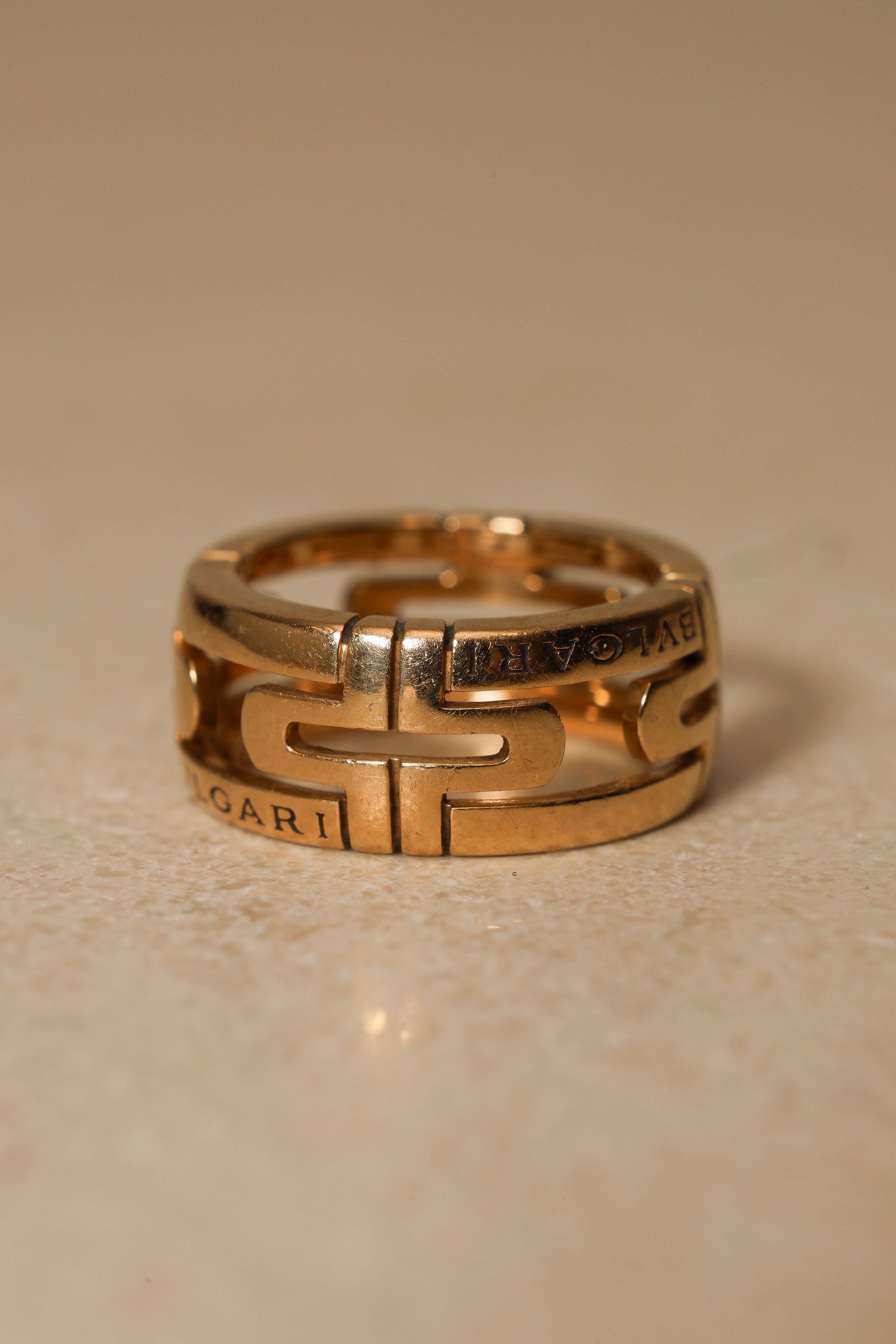 Bvlgari 18K Yellow Gold Parentesi Cutout Ring, Size US 3.25