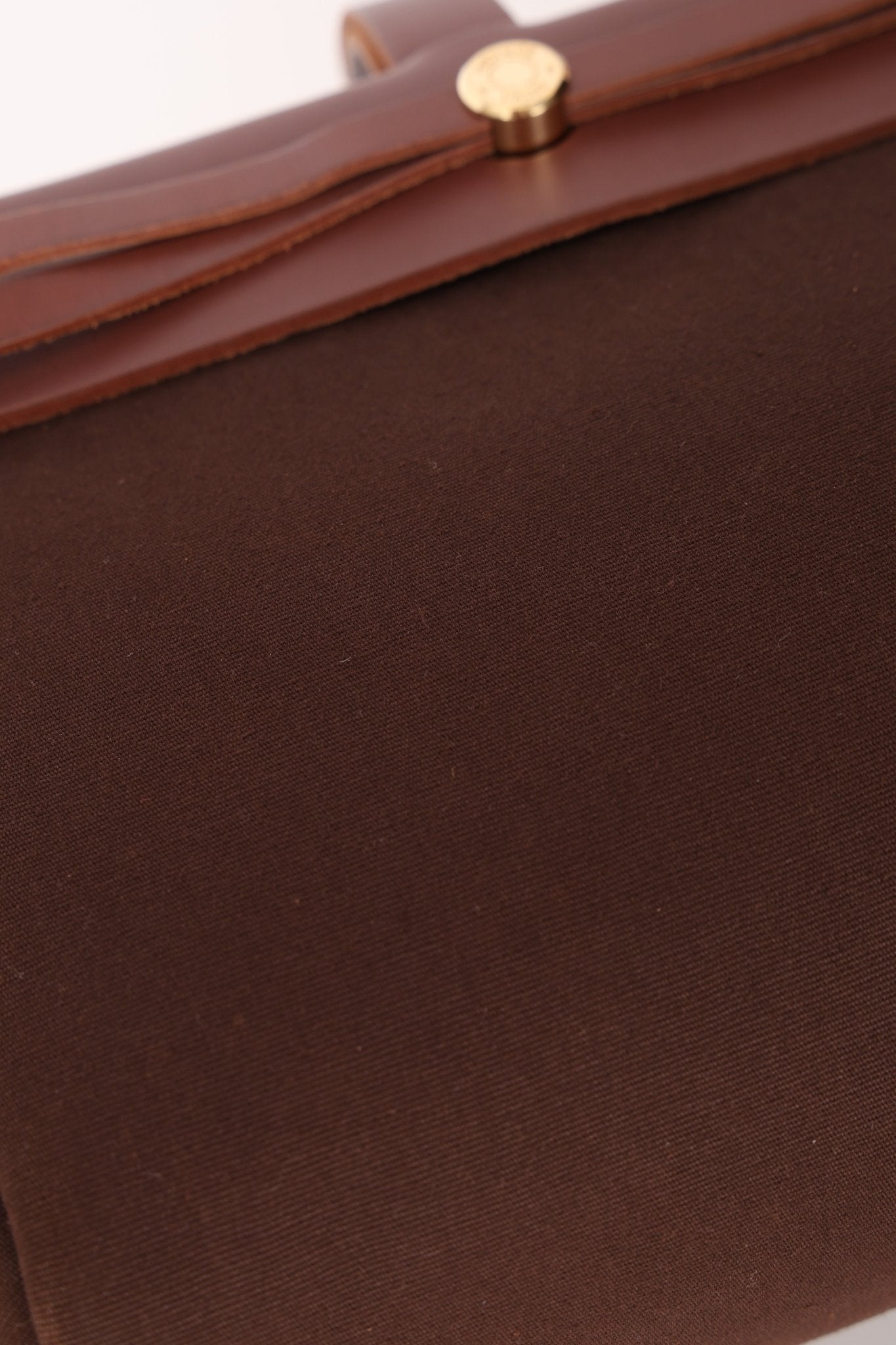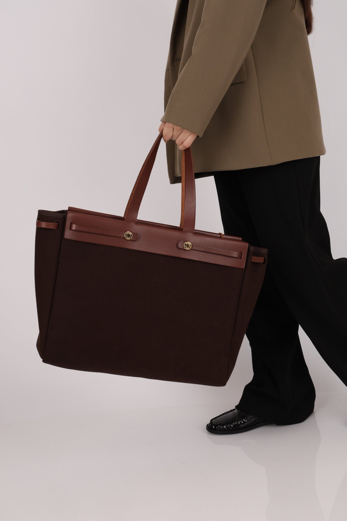 Hermès 2002 Rouge Sellier Vache Hunter and Ebene Toile Cabas Herbag 38 GHW - FashioNica