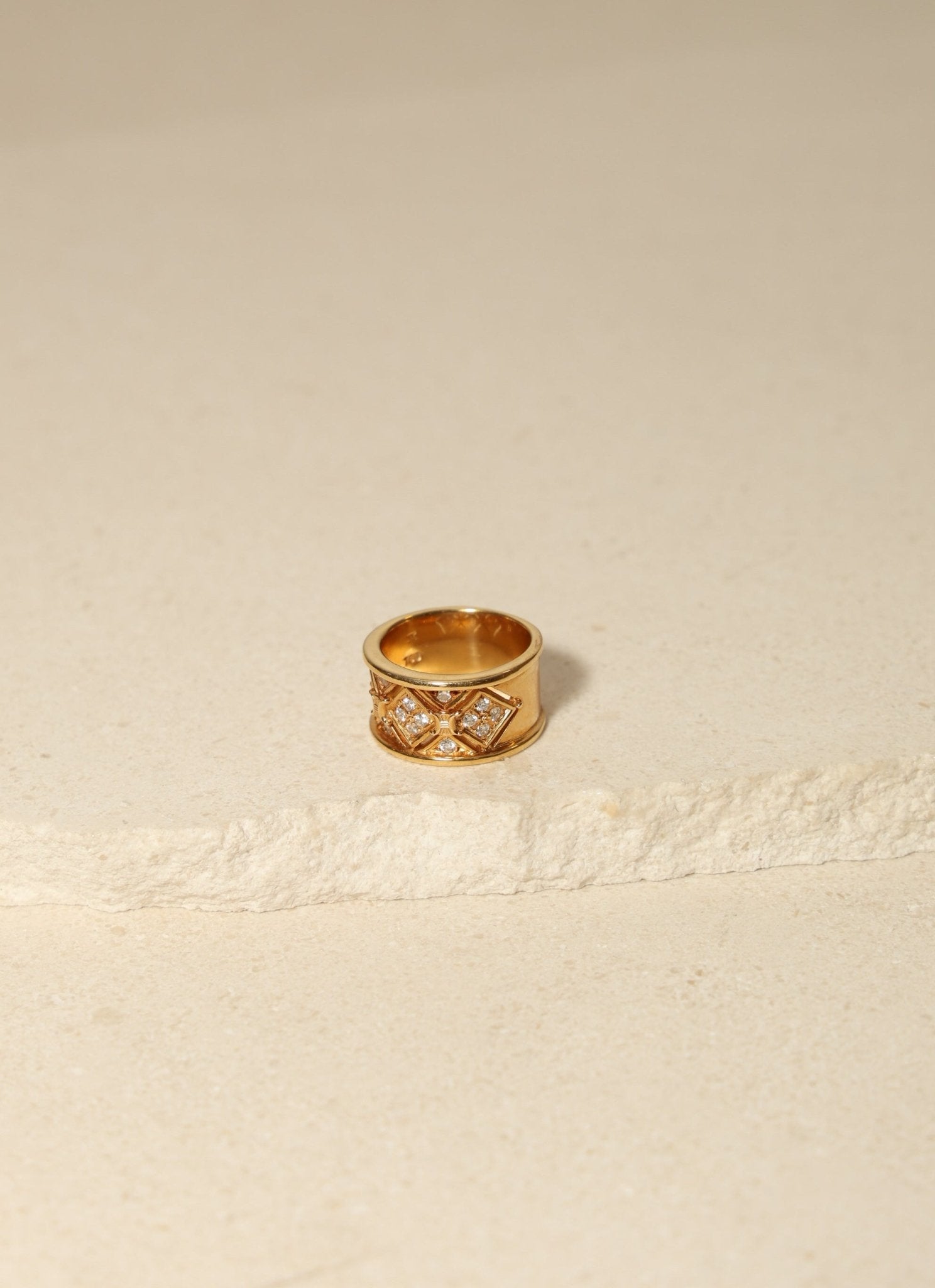 Rare Celine 18K Yellow Gold Diamond Triomphe Ring - FashioNica