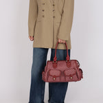 Light scratches and discoloration on hardware. Normal wear throughout exterior.