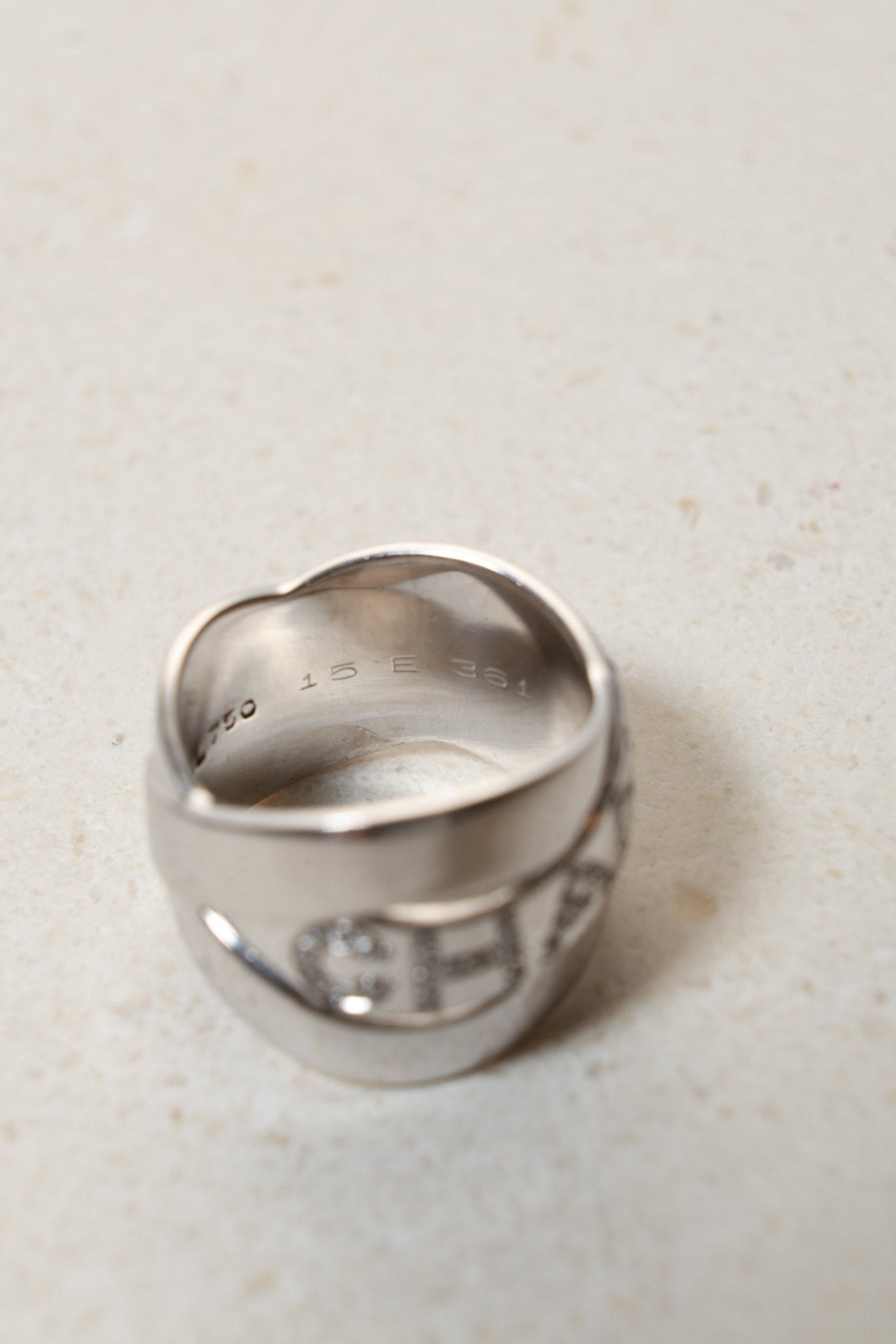 Chanel 18K Bolduc White Gold Diamond Wavy Logo Ring - FashioNica