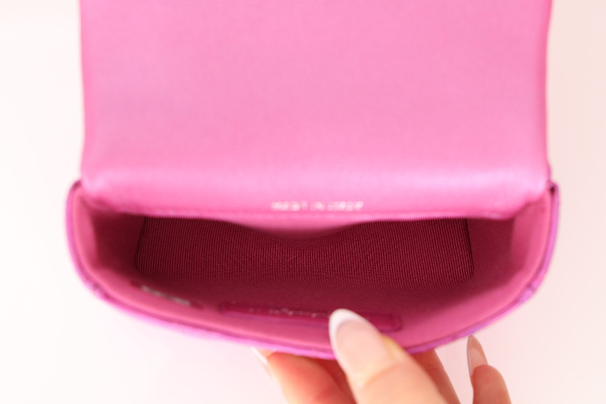 Chanel 24C Iridescent Patent Quilted Carabiner Chain Card Holder - FashioNica
