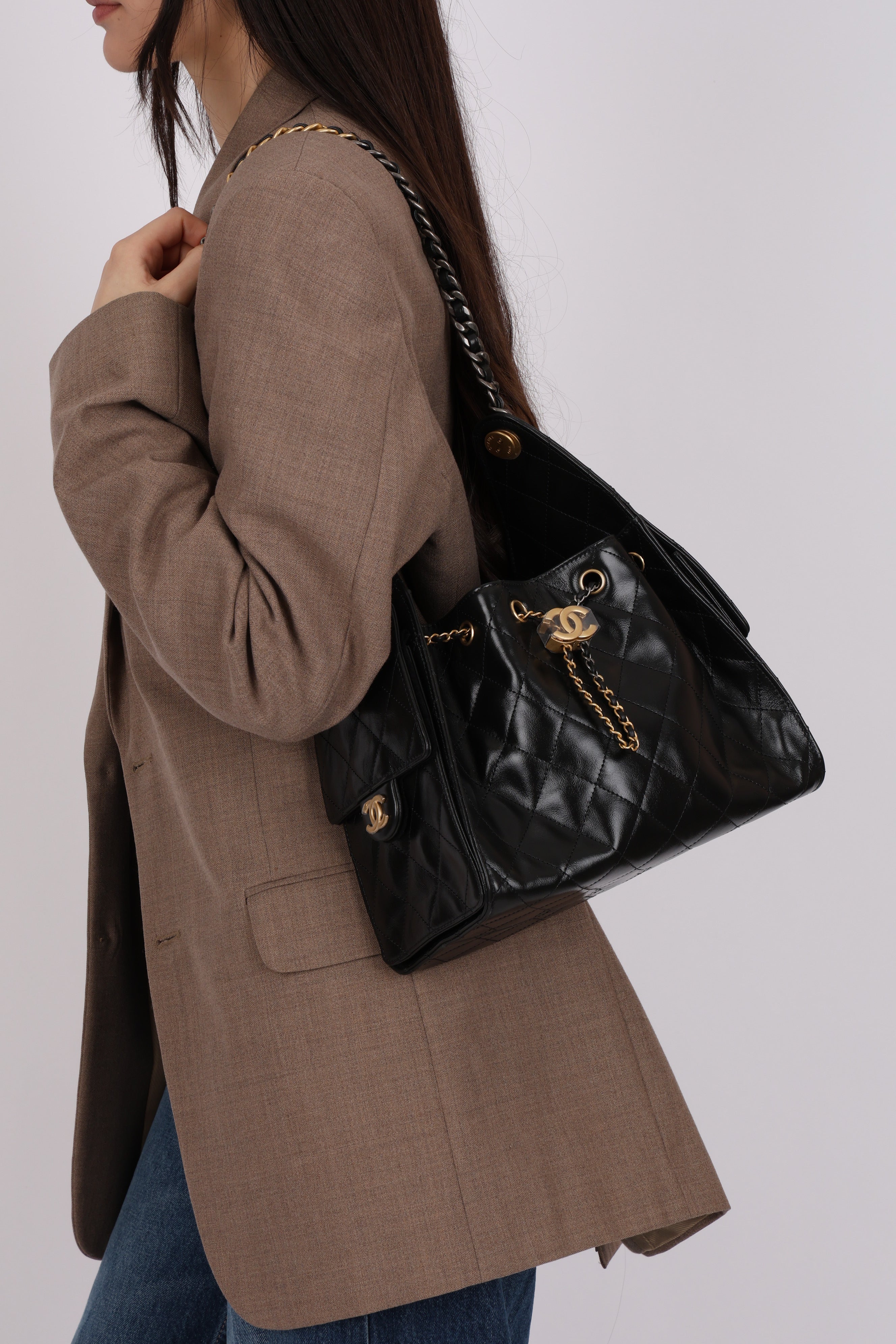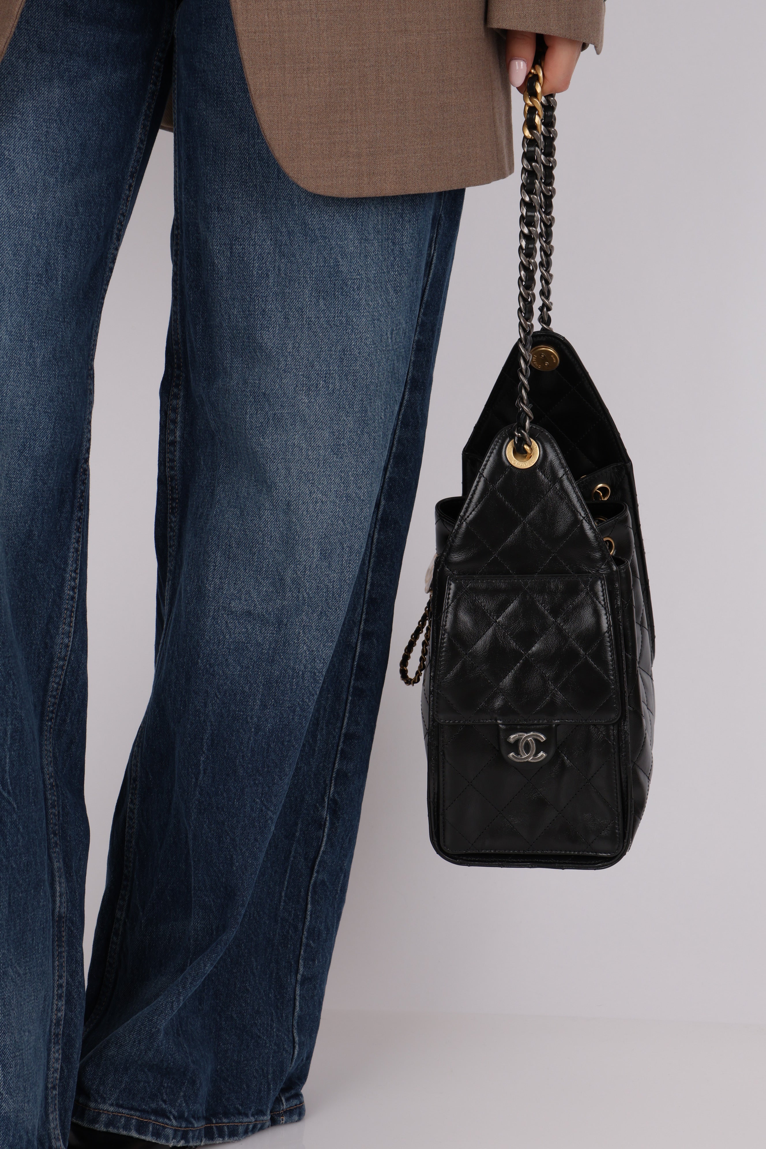 Twin with Nica! Turn heads with a bag currently waitlisted in stores. This version just came out a couple weeks ago- this marks the second rerelease of the Chanel 25, introducing a fresh twist but for the first time ever, Chanel introduced their most popular bag with mixed hardware (brushed gold & ruthenium). Its unique details make it both rare to find on the market and extremely special. Now sold out and highly in demand, the waitlist continues to grow—don’t miss your chance to make this coveted piece yours!