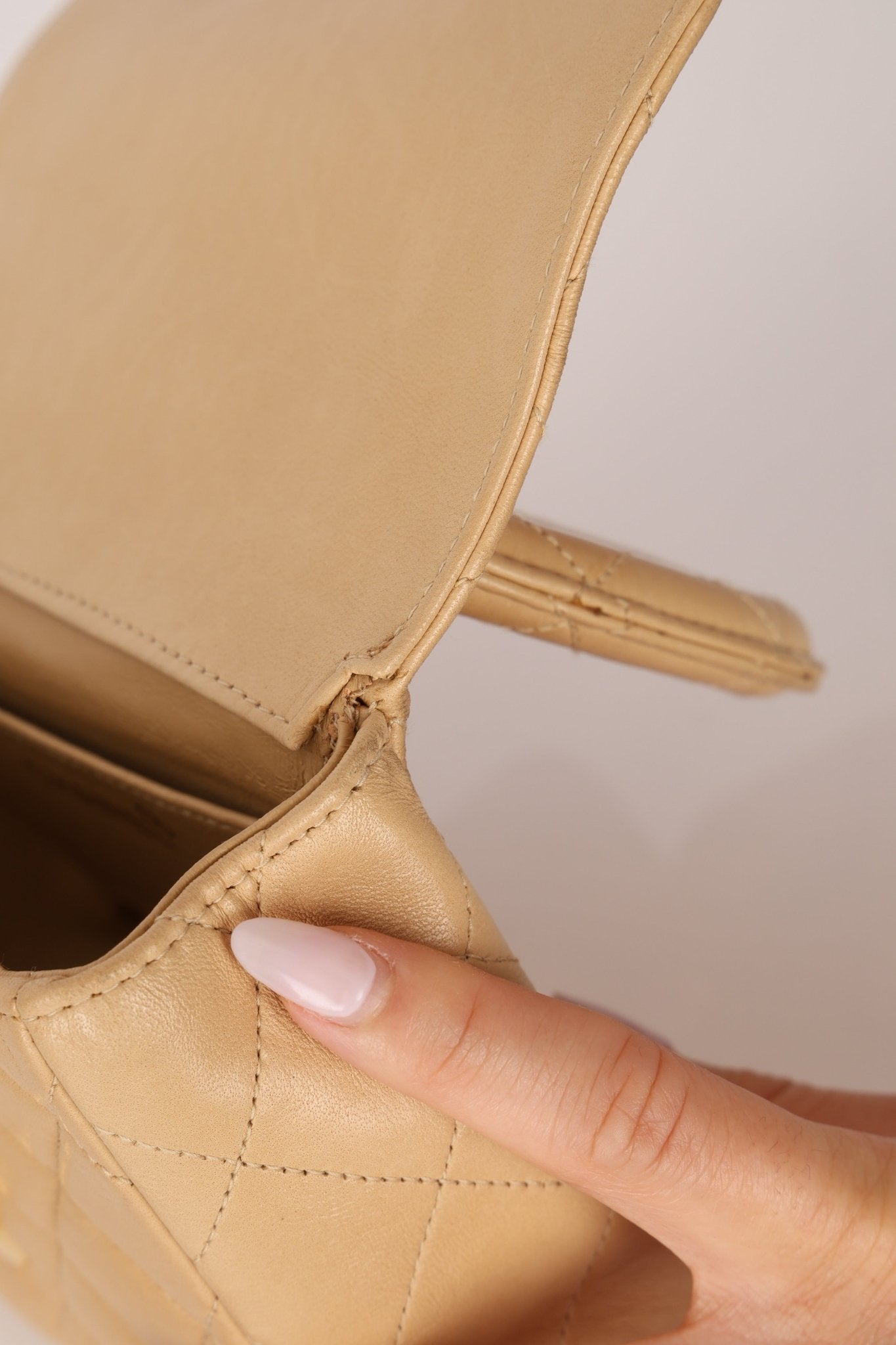 Rare Chanel 1991 Beige Mini Kelly Top Handle - FashioNica