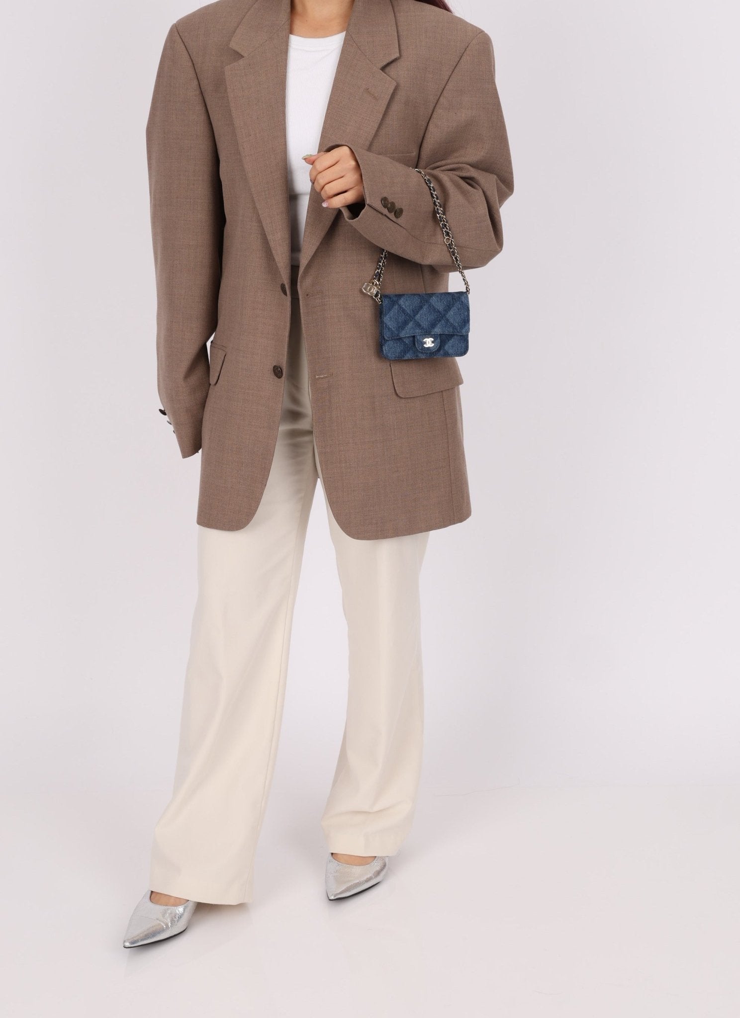 Chanel 2022 Denim Shadow Quilted Cardholder Chain Belt Bag