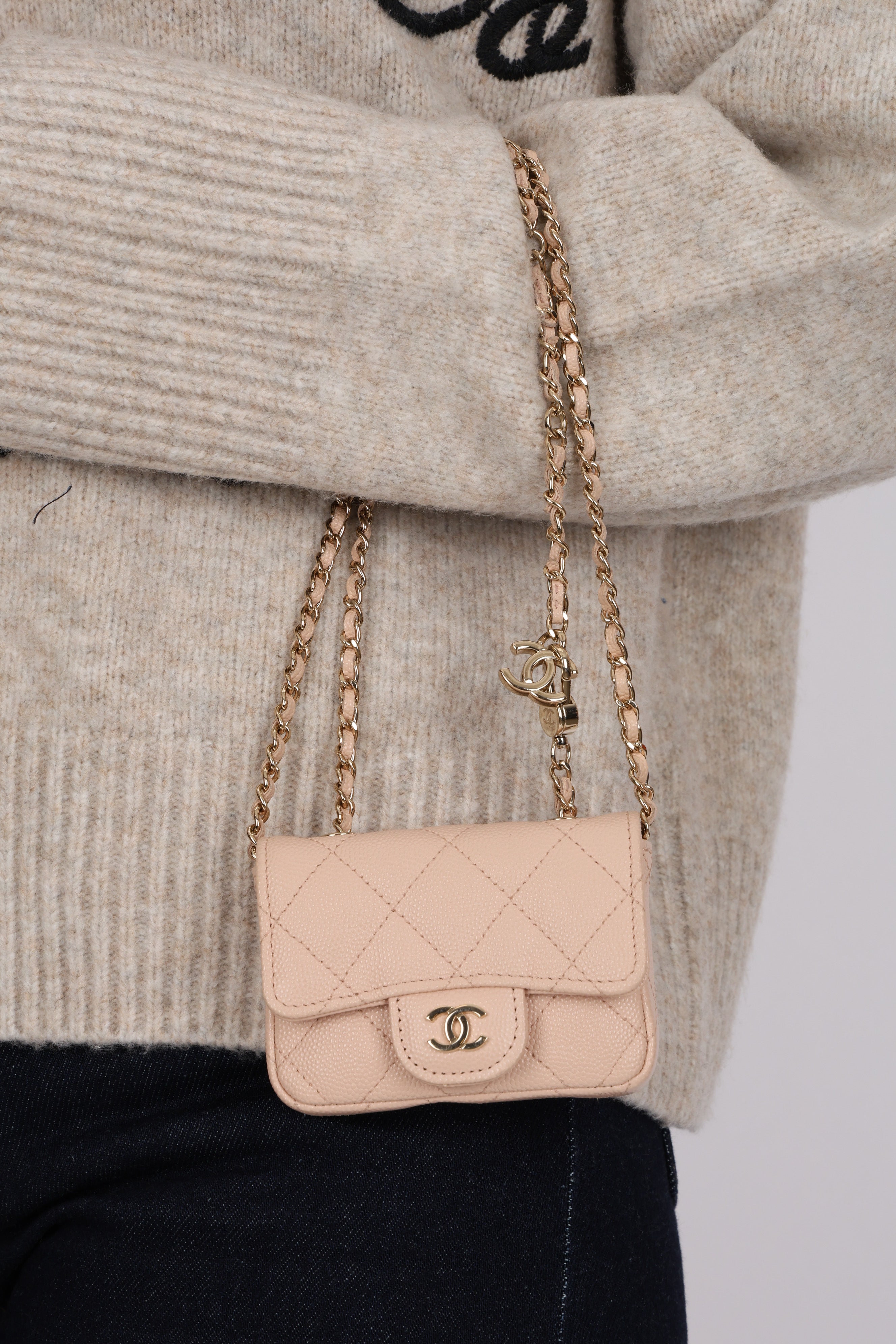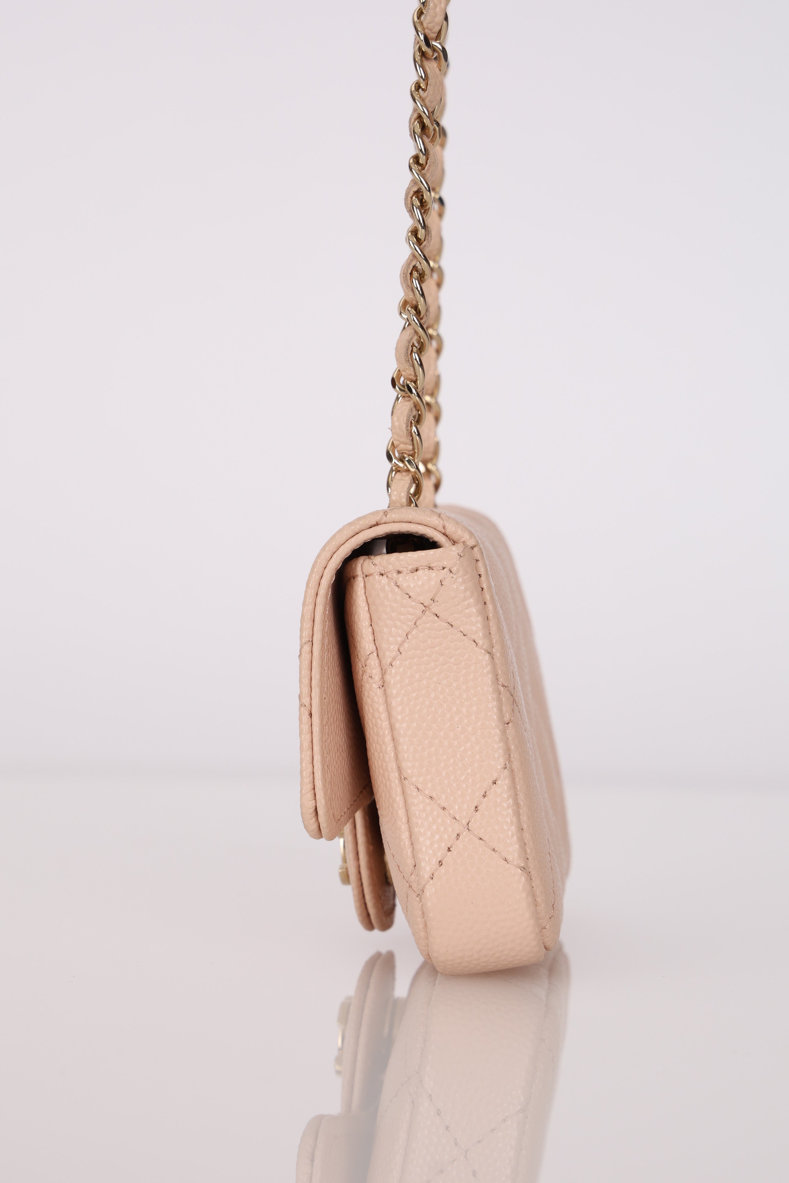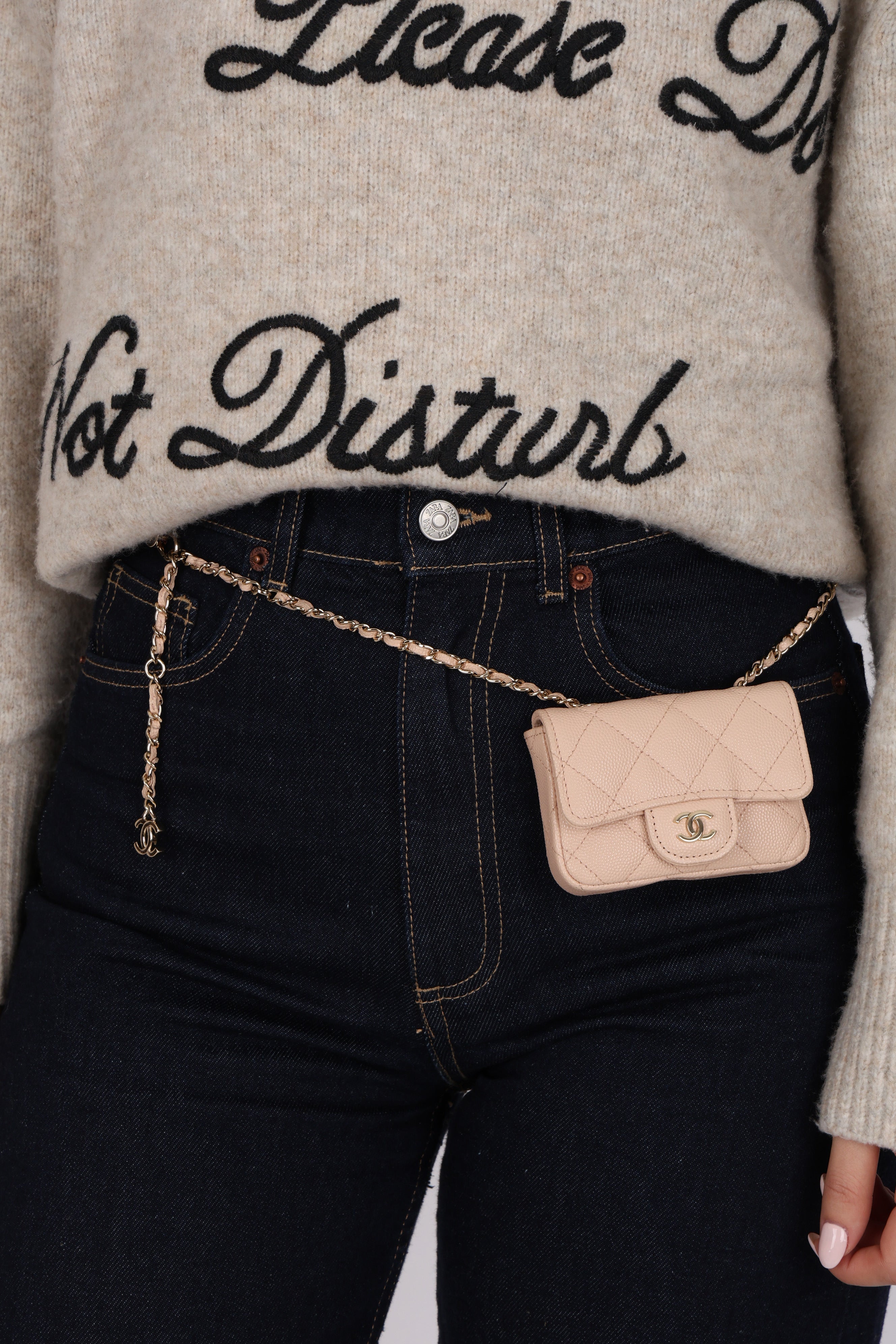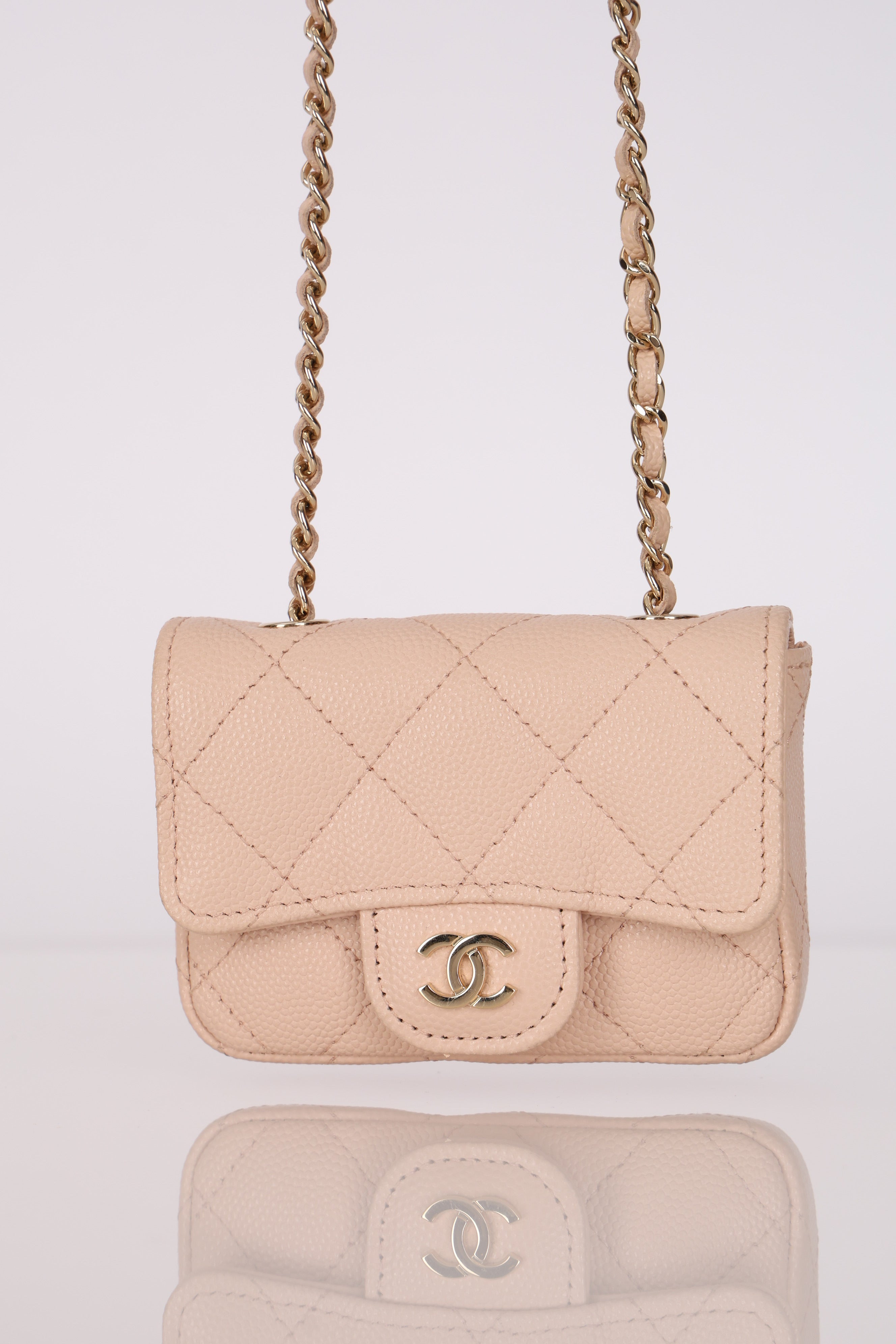 Chanel 2020 Nude Caviar Flap Belt Bag GHW