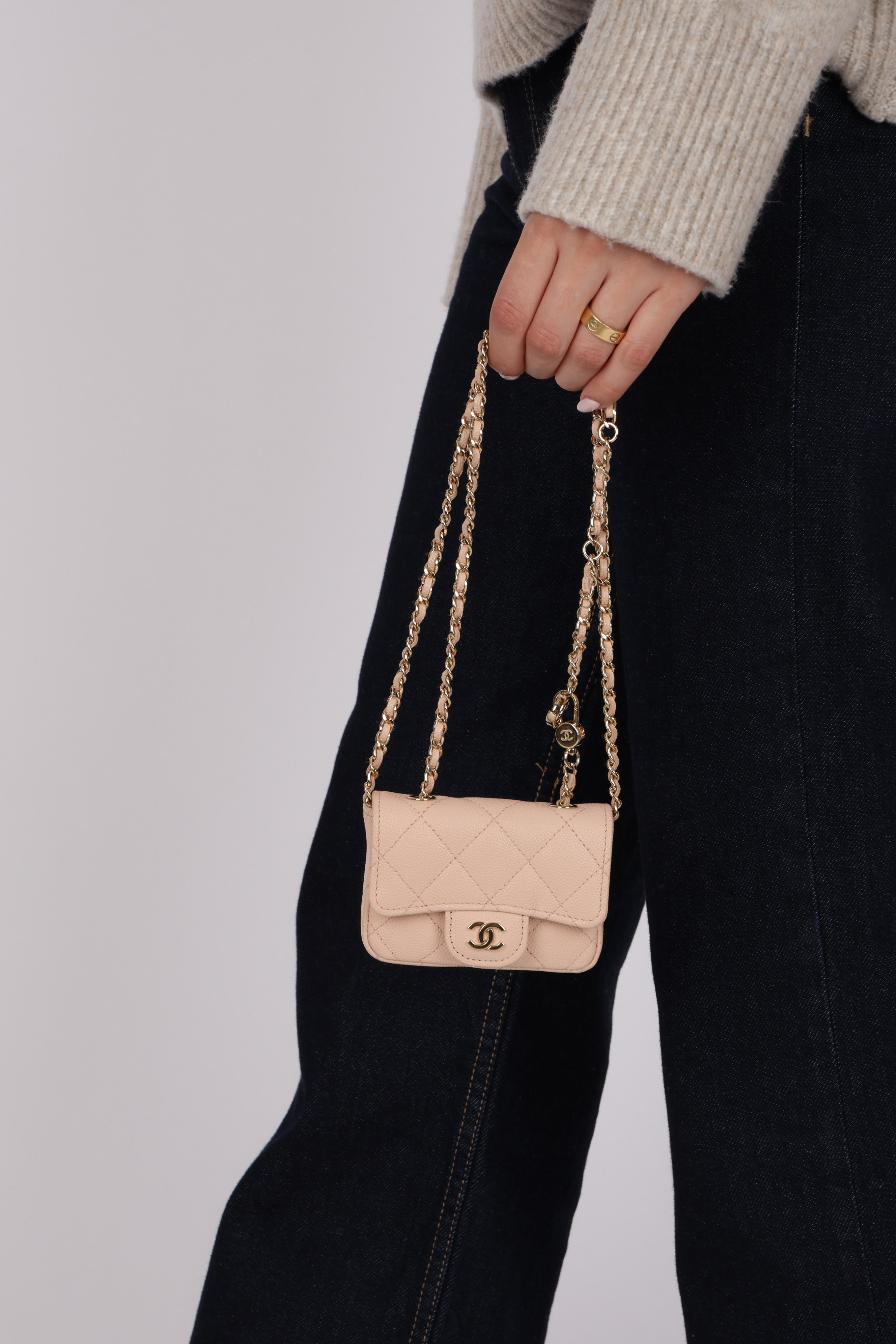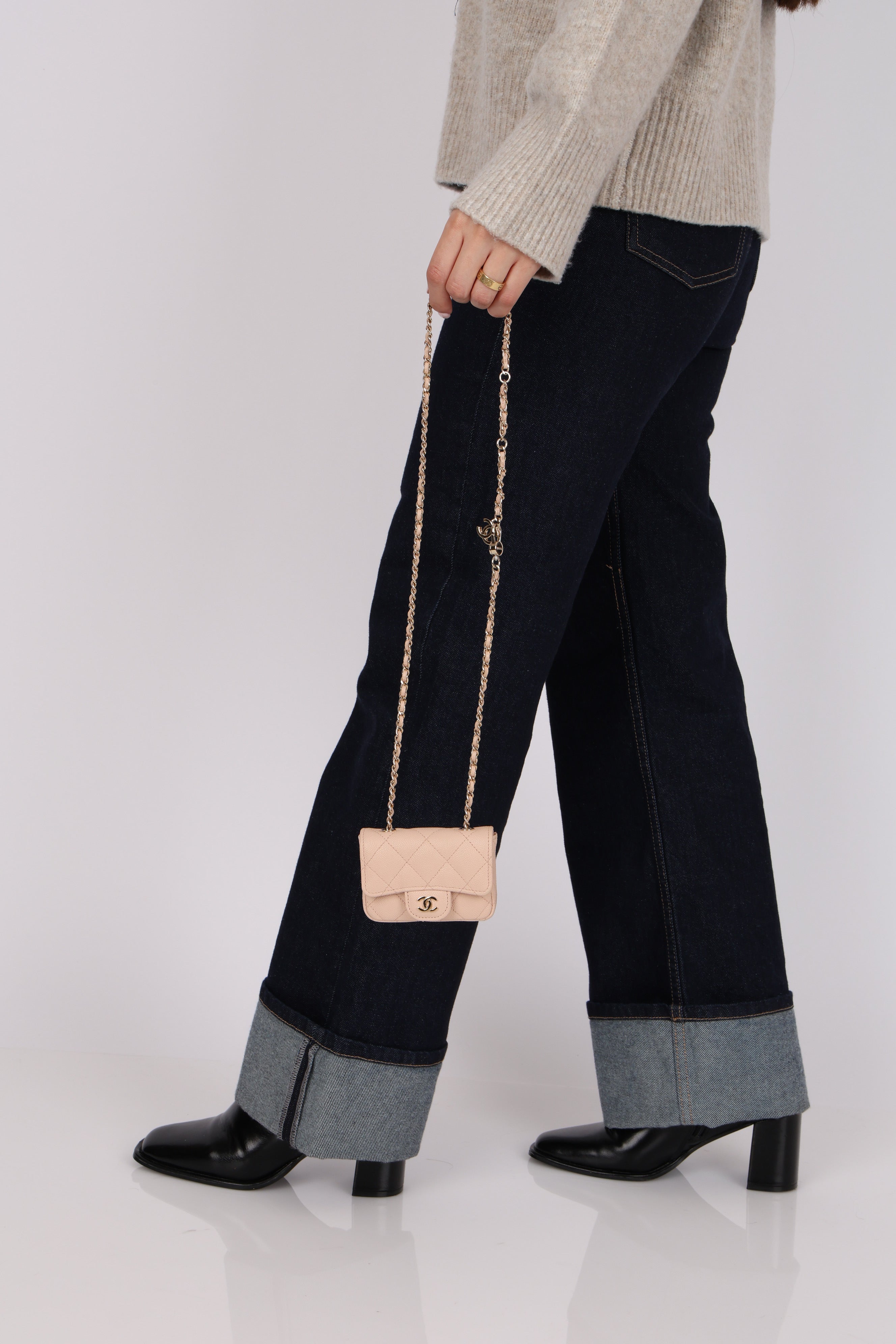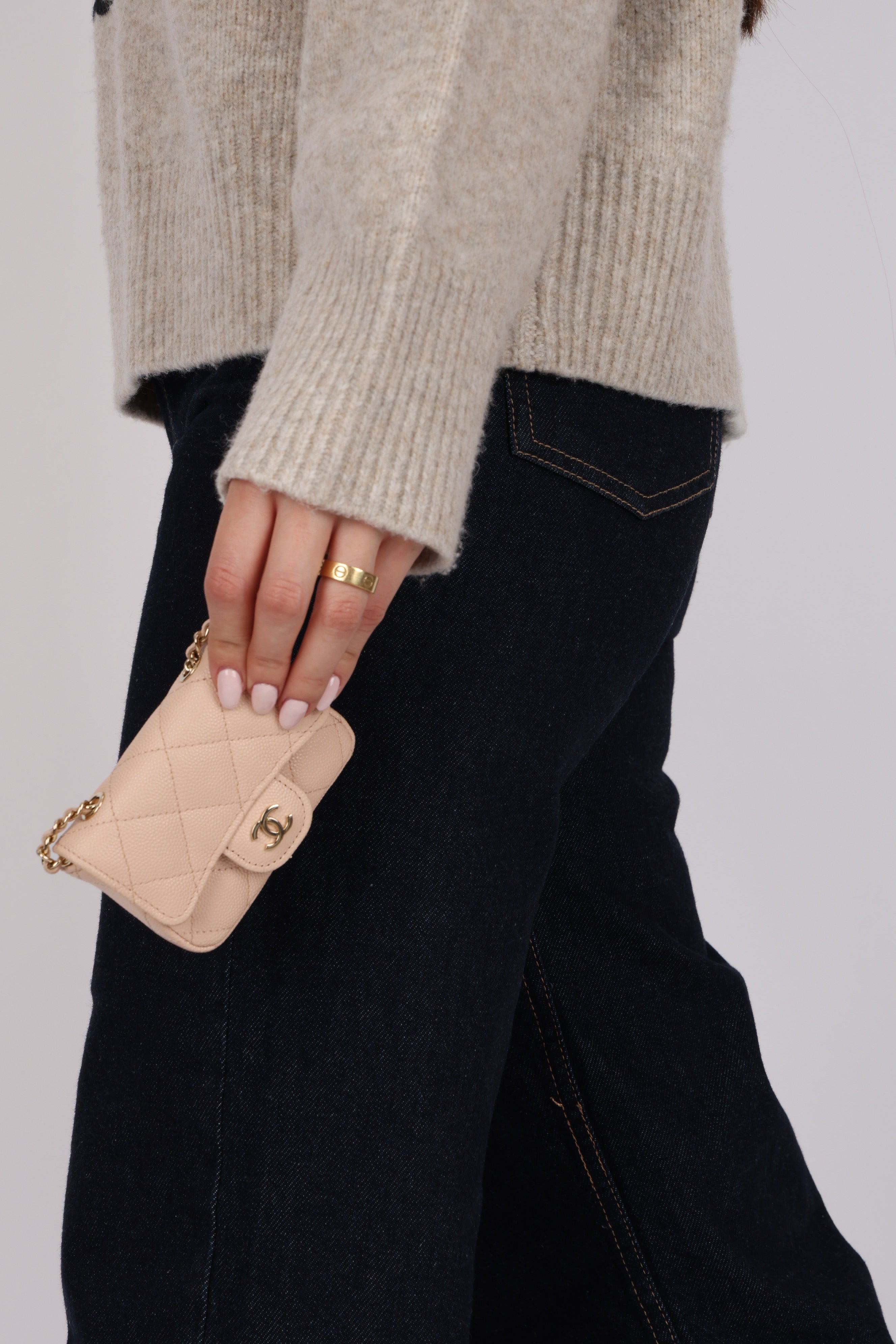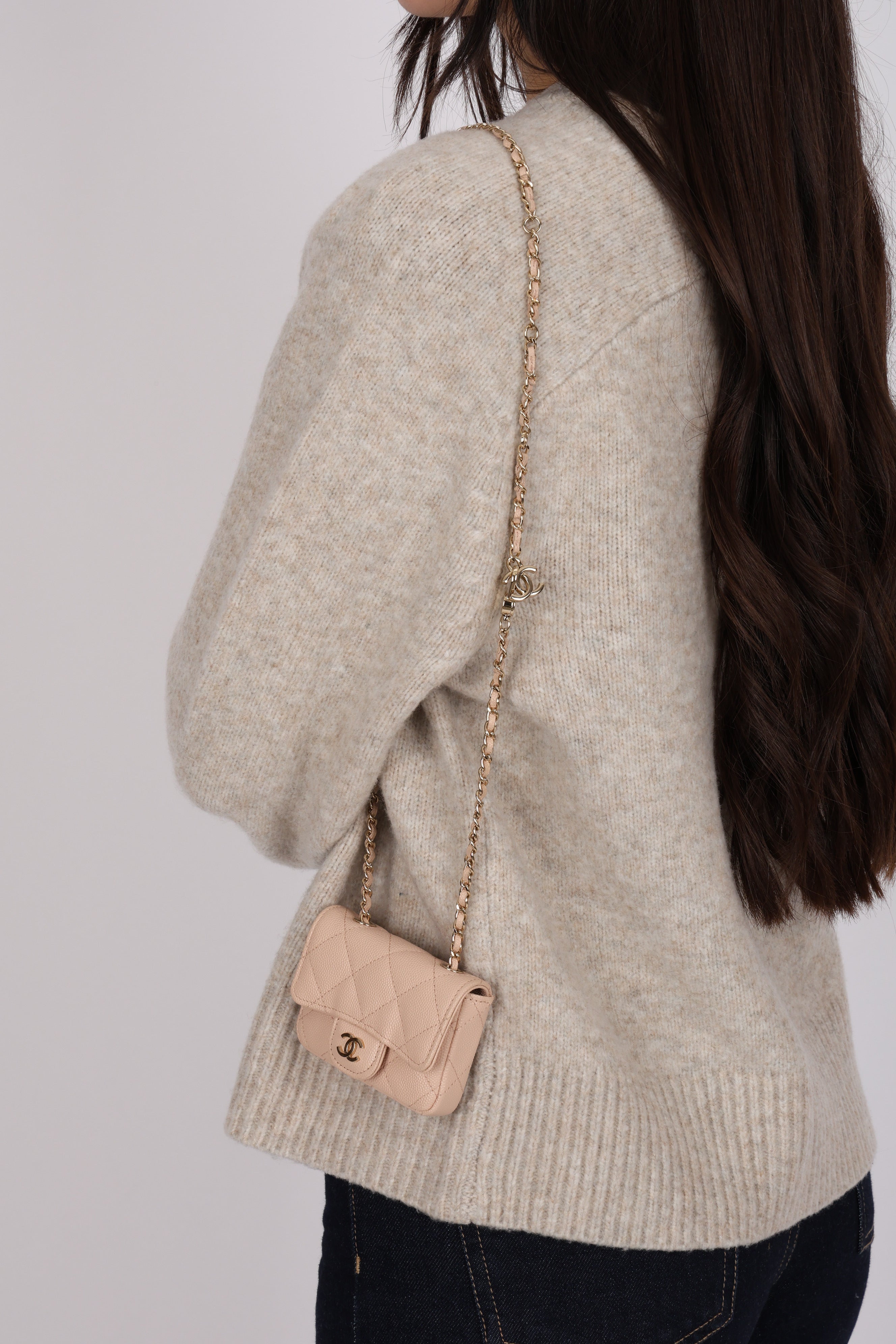 Chanel 2020 Nude Caviar Flap Belt Bag GHW