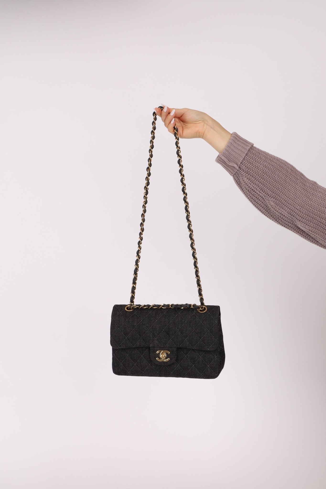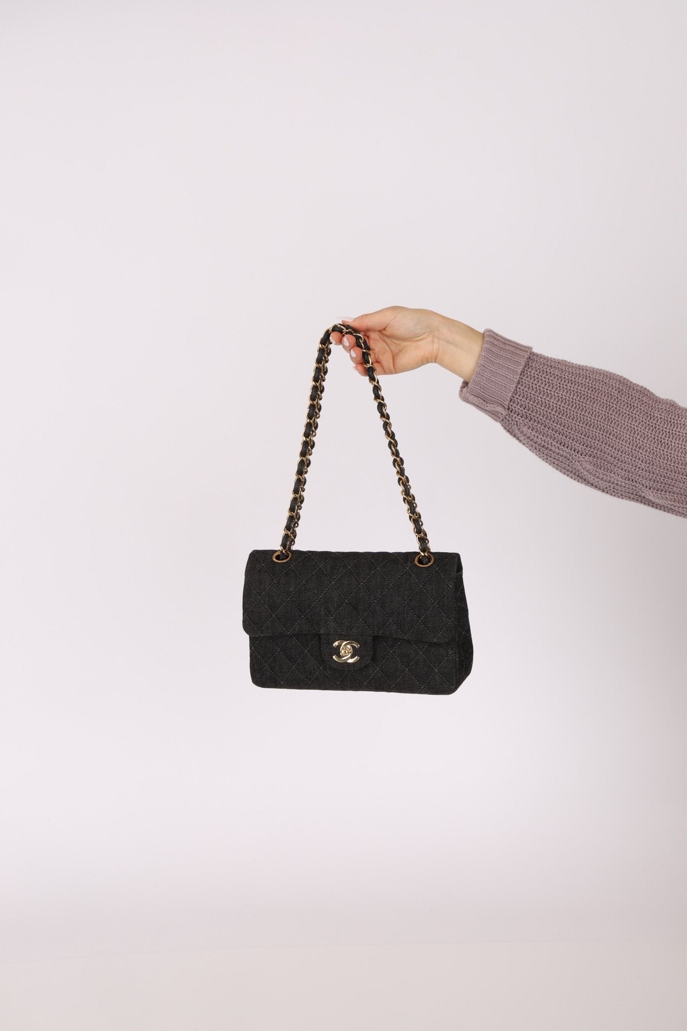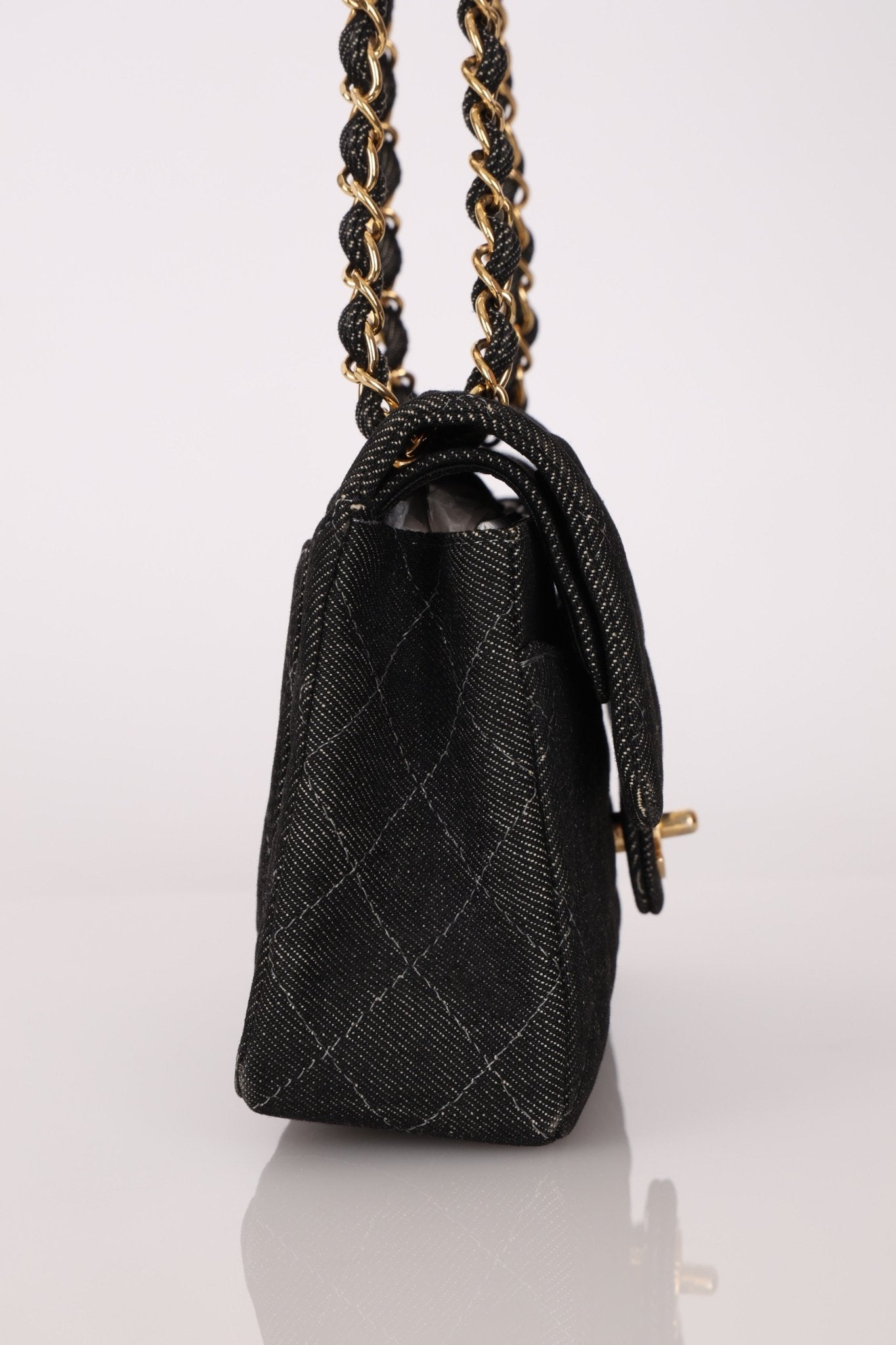 Ultra - Rare Chanel 1997 Black Denim Small Double Flap 24k GP - FashioNica