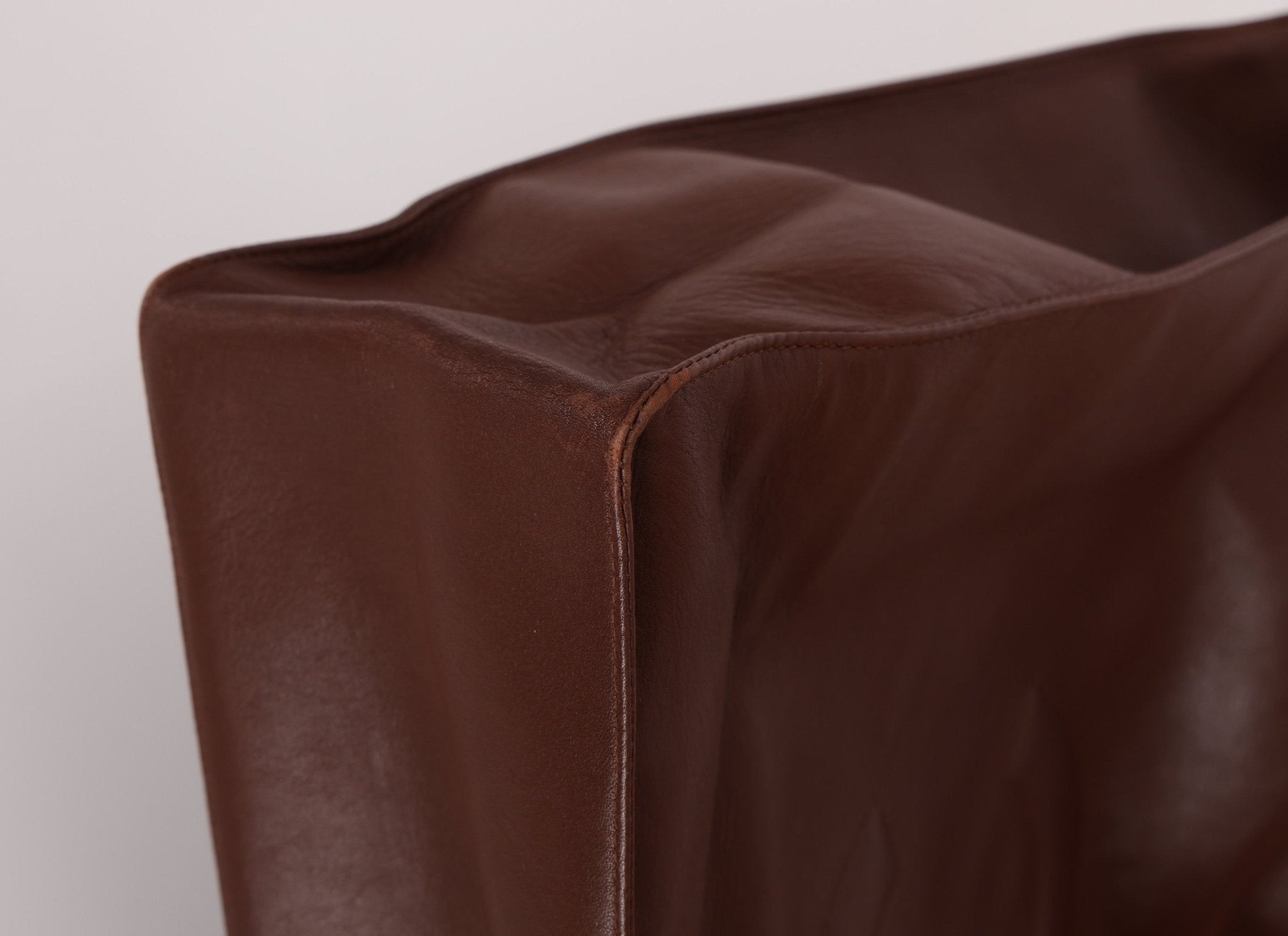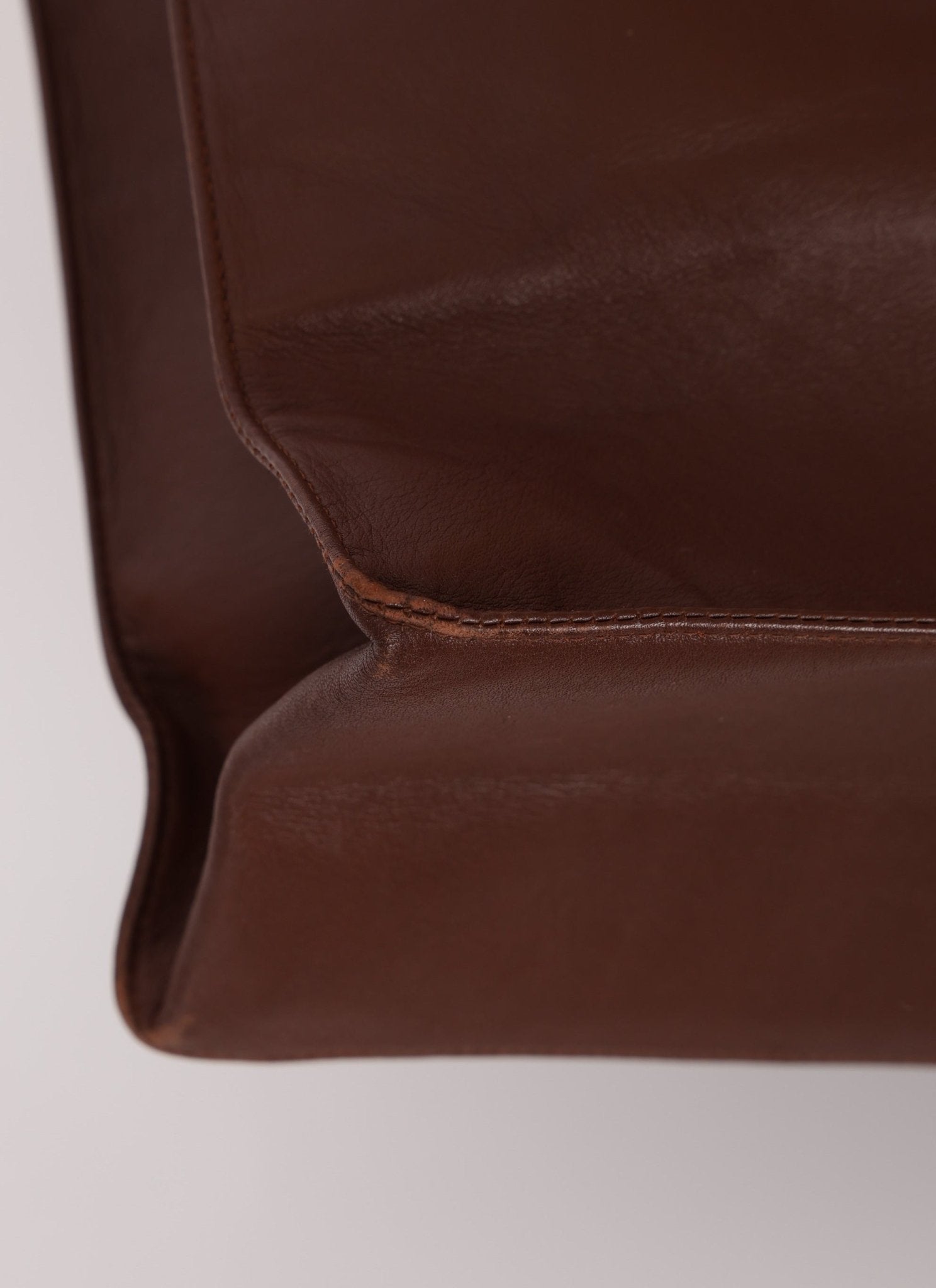 Hairline scratches on hardware. Normal wear throughout leather. Light corner drying. Very good vintage condition.