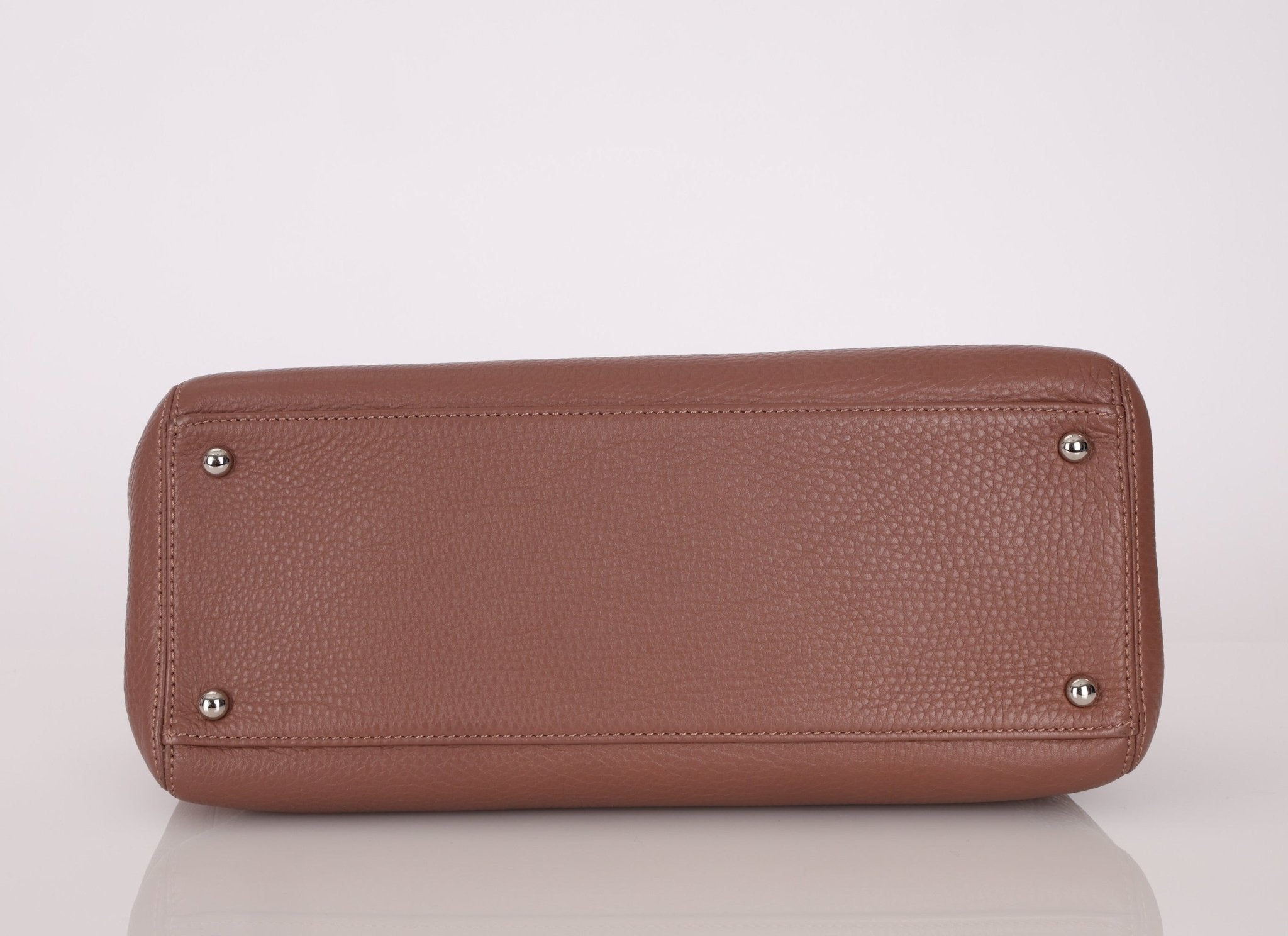 Hairline scratches on hardware. Beautiful structure and sits upright. Excellent vintage condition.