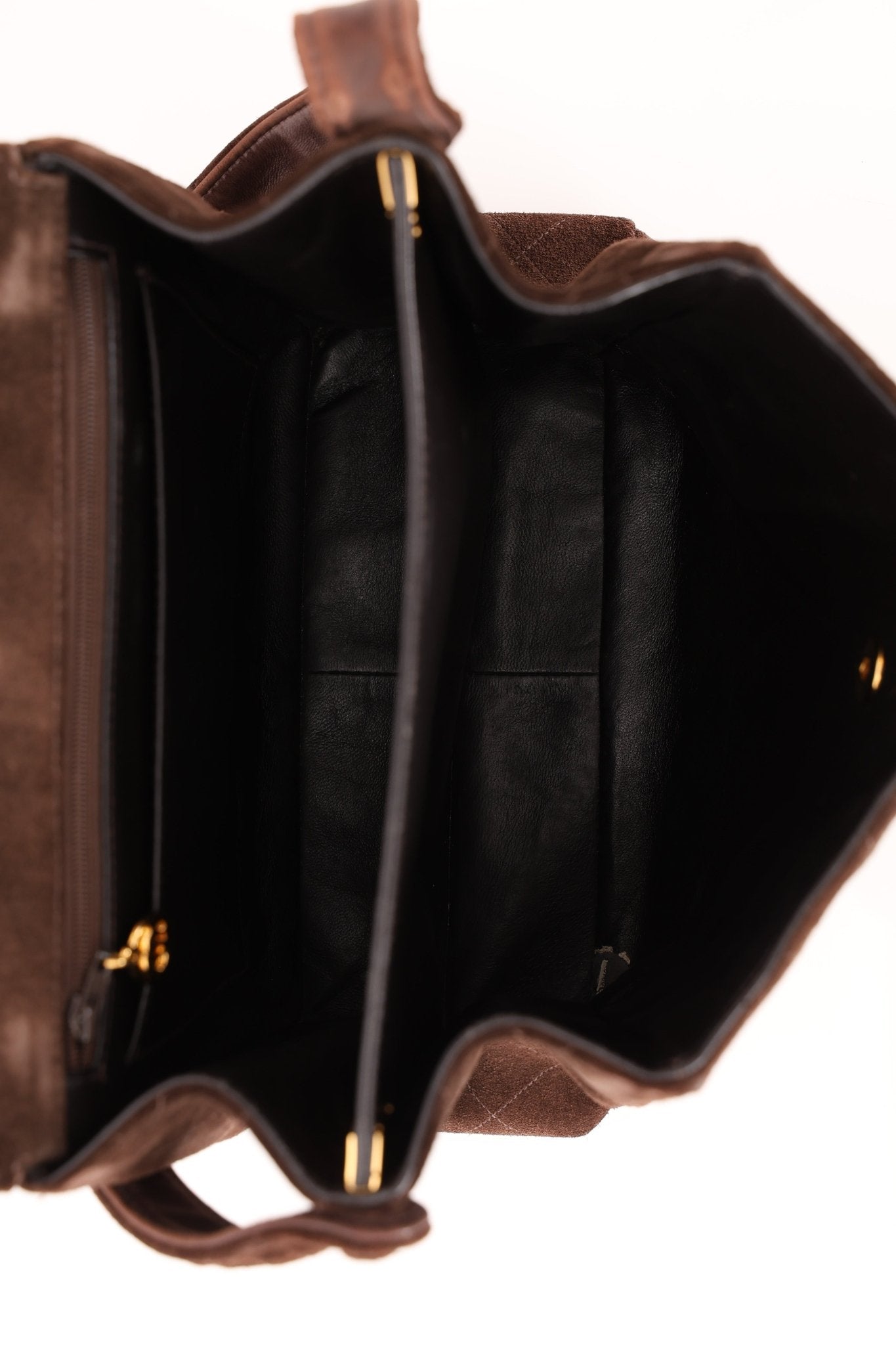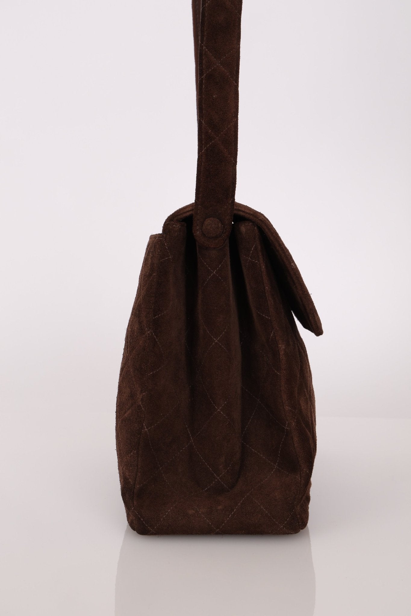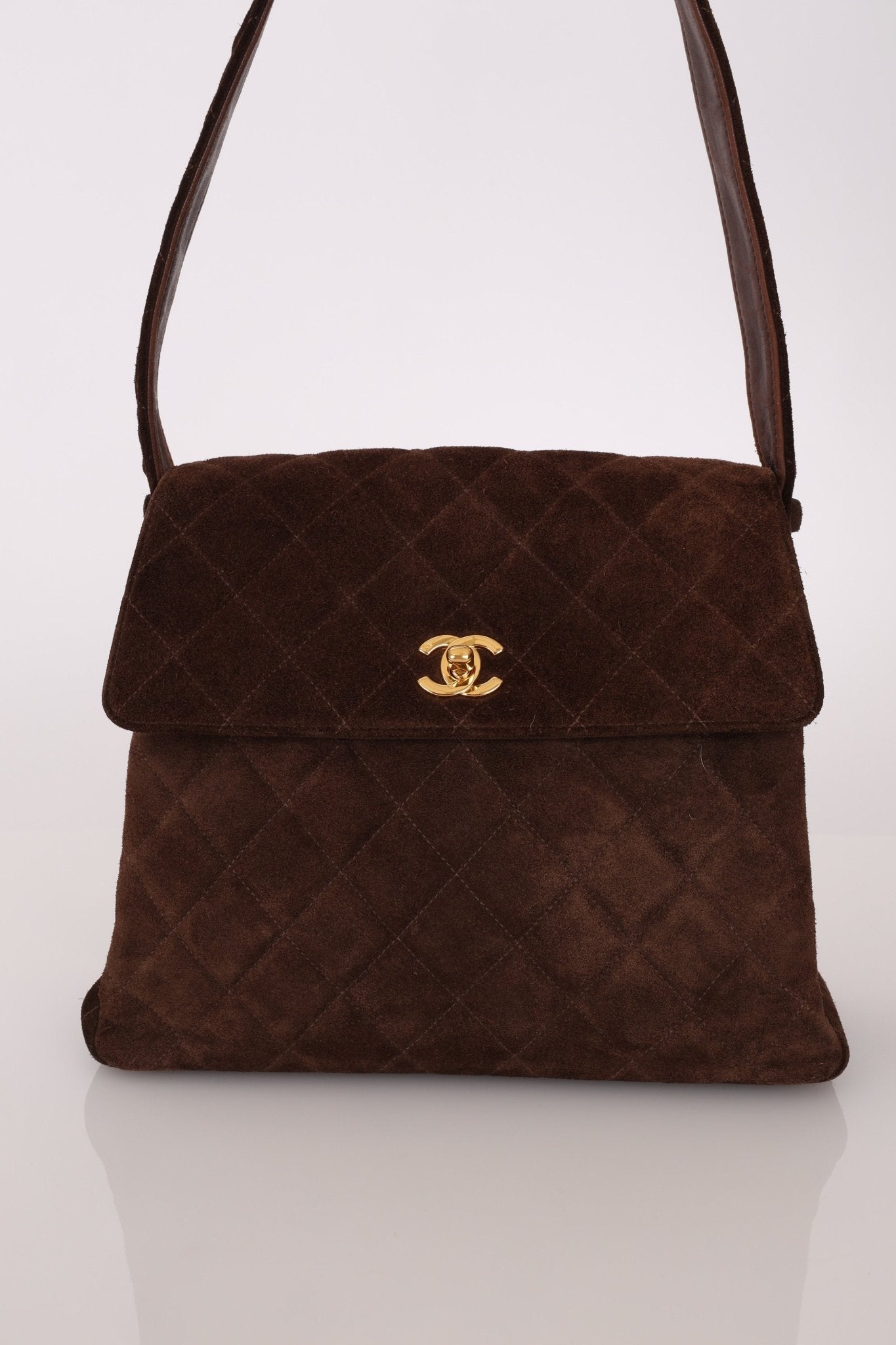 Chanel 1997 Brown Suede Turnlock Shoulder Bag 24k GP - FashioNica