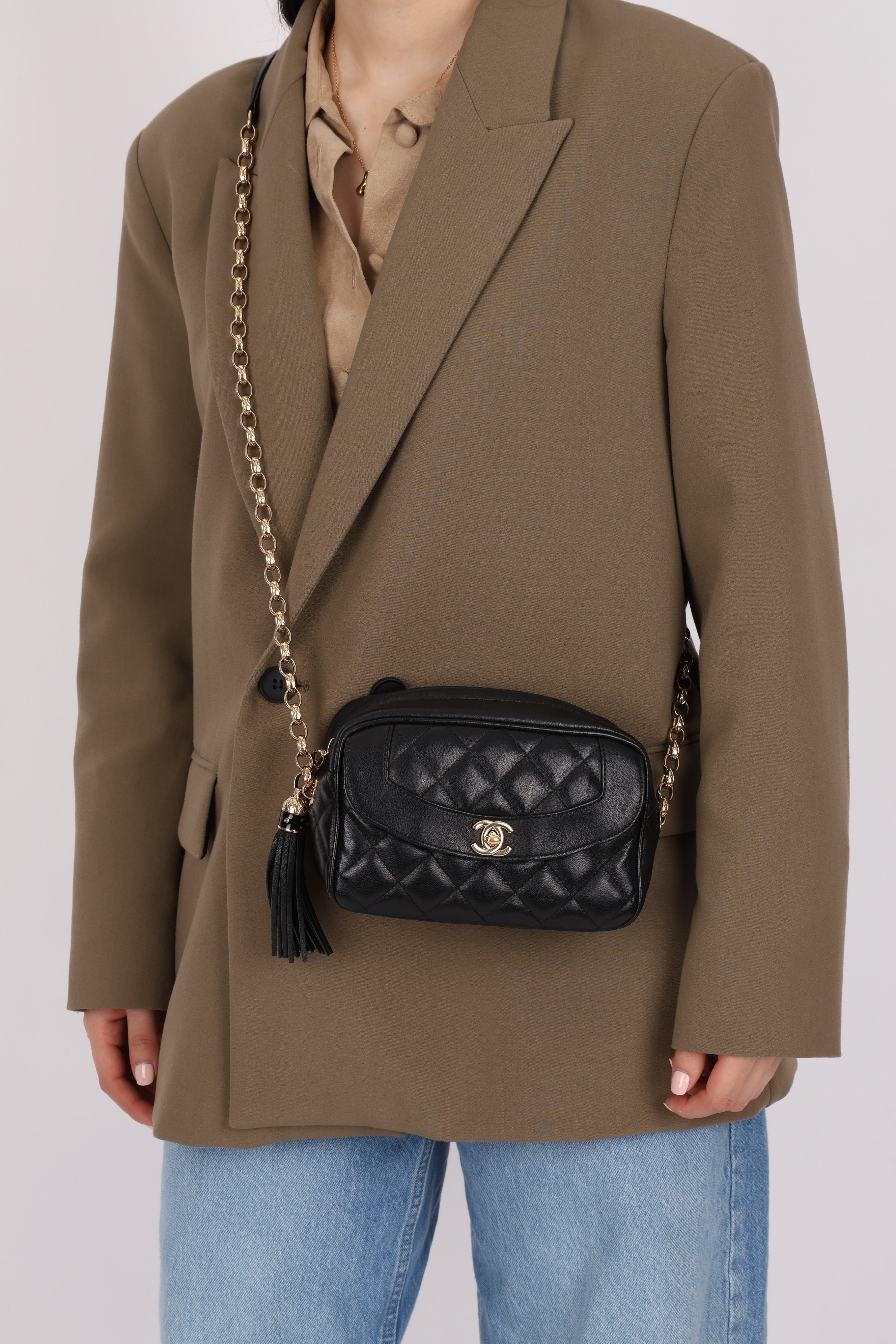 Any vintage or re-issue Chanel featuring the distinctive Bijoux chain is an instant rarity — a detail no longer in production and highly sought after by collectors. The re-issue Diana Camera Bag stands out as a timeless gem, blending iconic Chanel signatures.