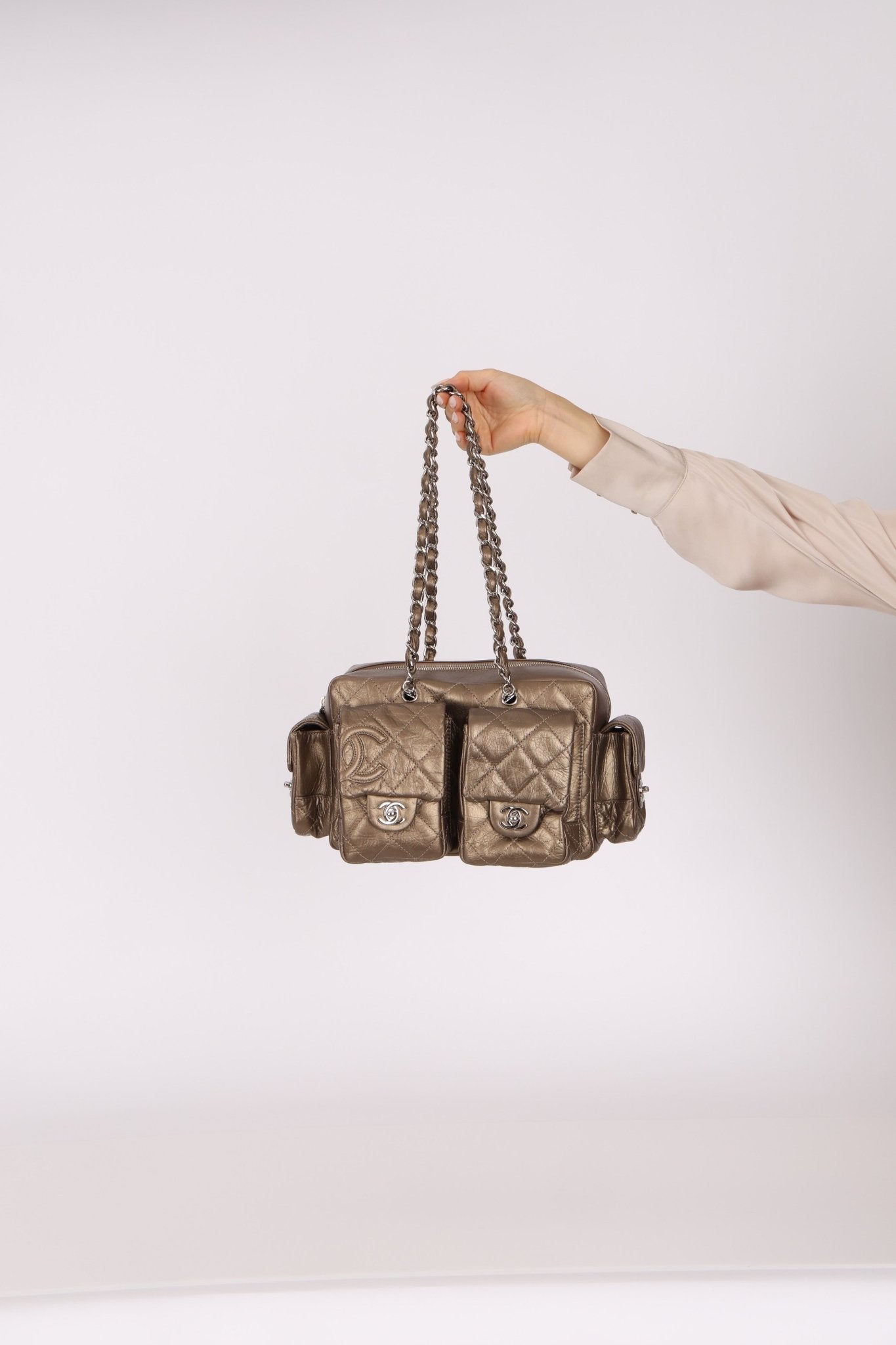 Chanel 2006 Distressed Calfskin Cambon Multipocket Reporter Bag